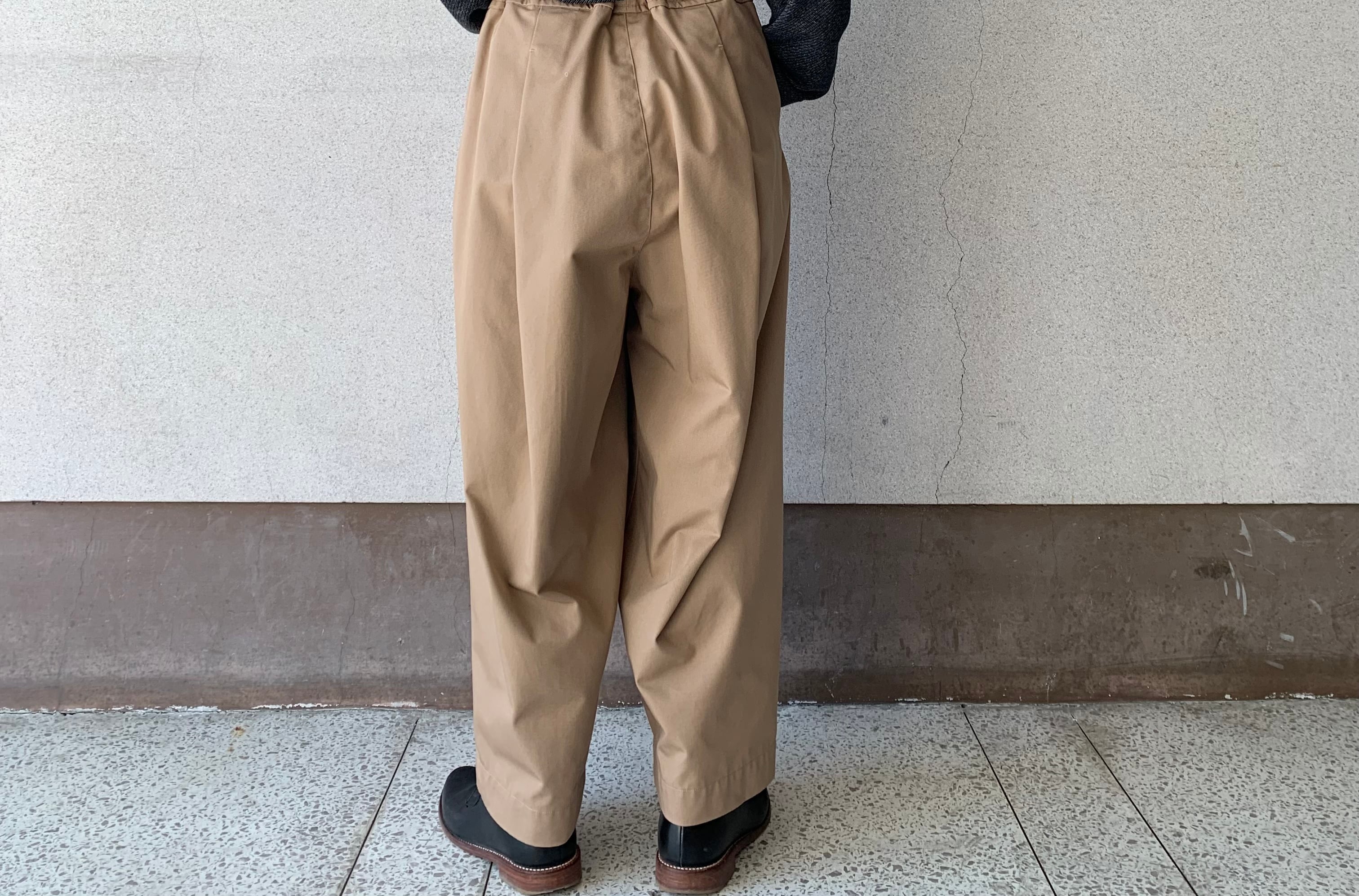 とてもベーシックなポリエステル・コットンの綾織のチノクロスのパンツ。