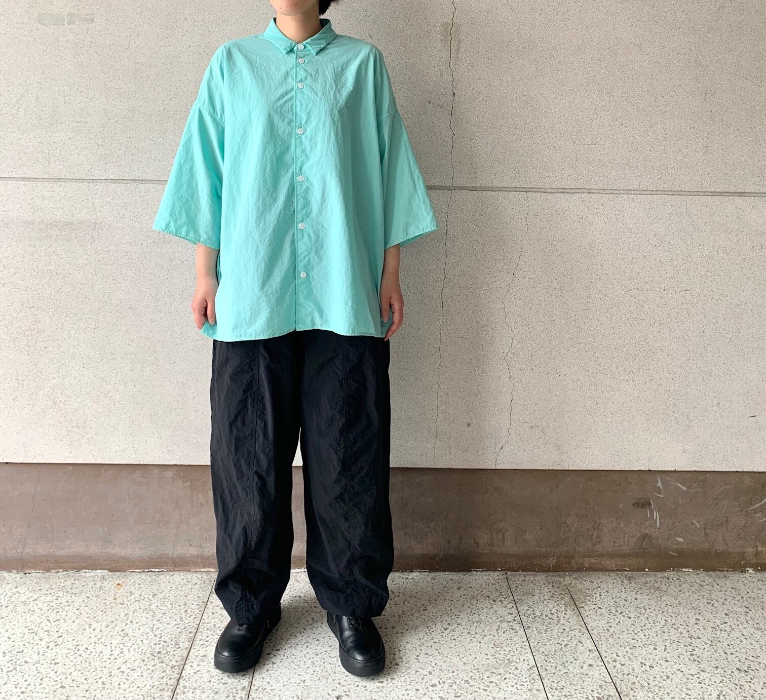 オーバーサイズの6分袖シャツ。
