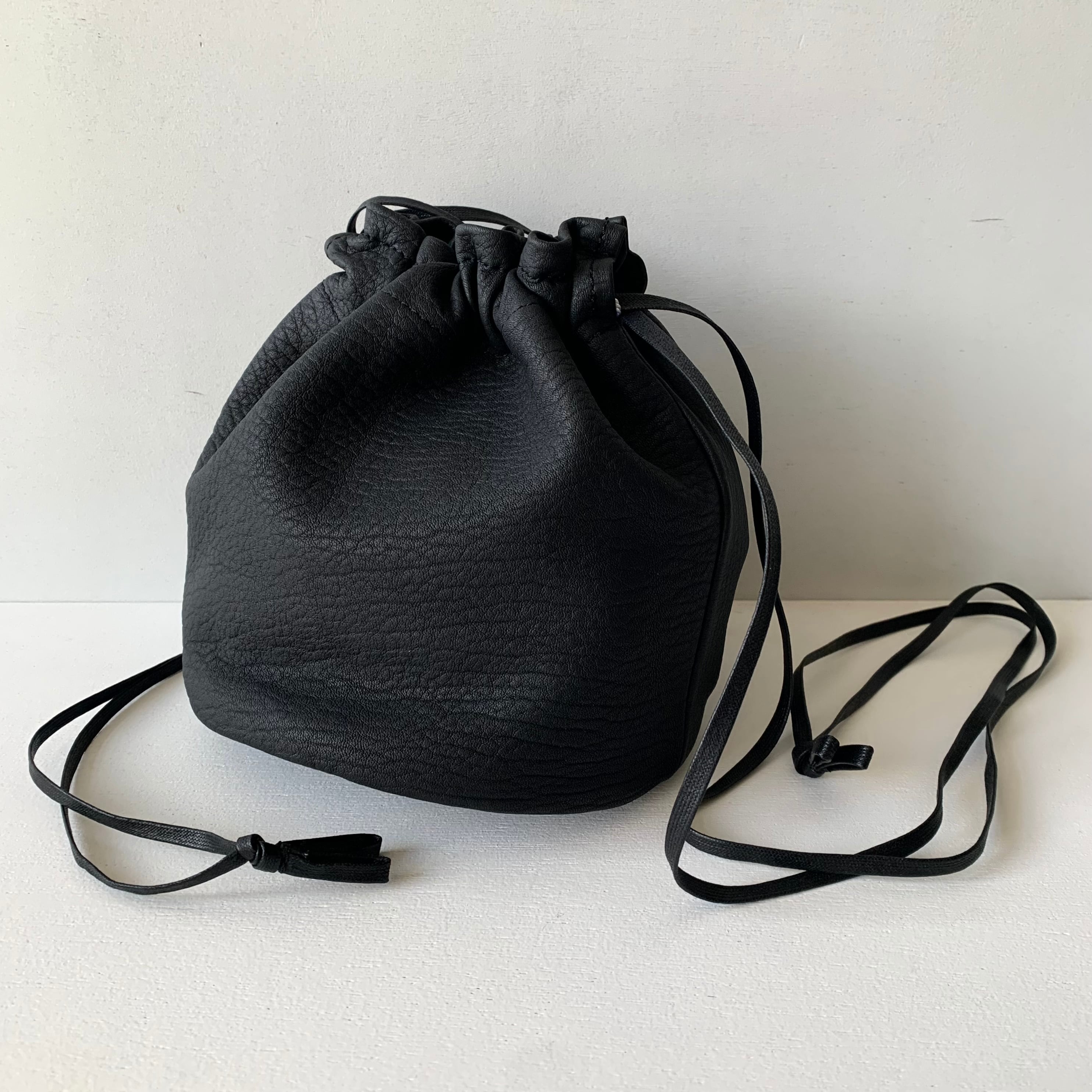 巾着としてはもちろん、紐を長くしてますので紐同士を結んでショルダーバッグとしてもお使いいただけます。