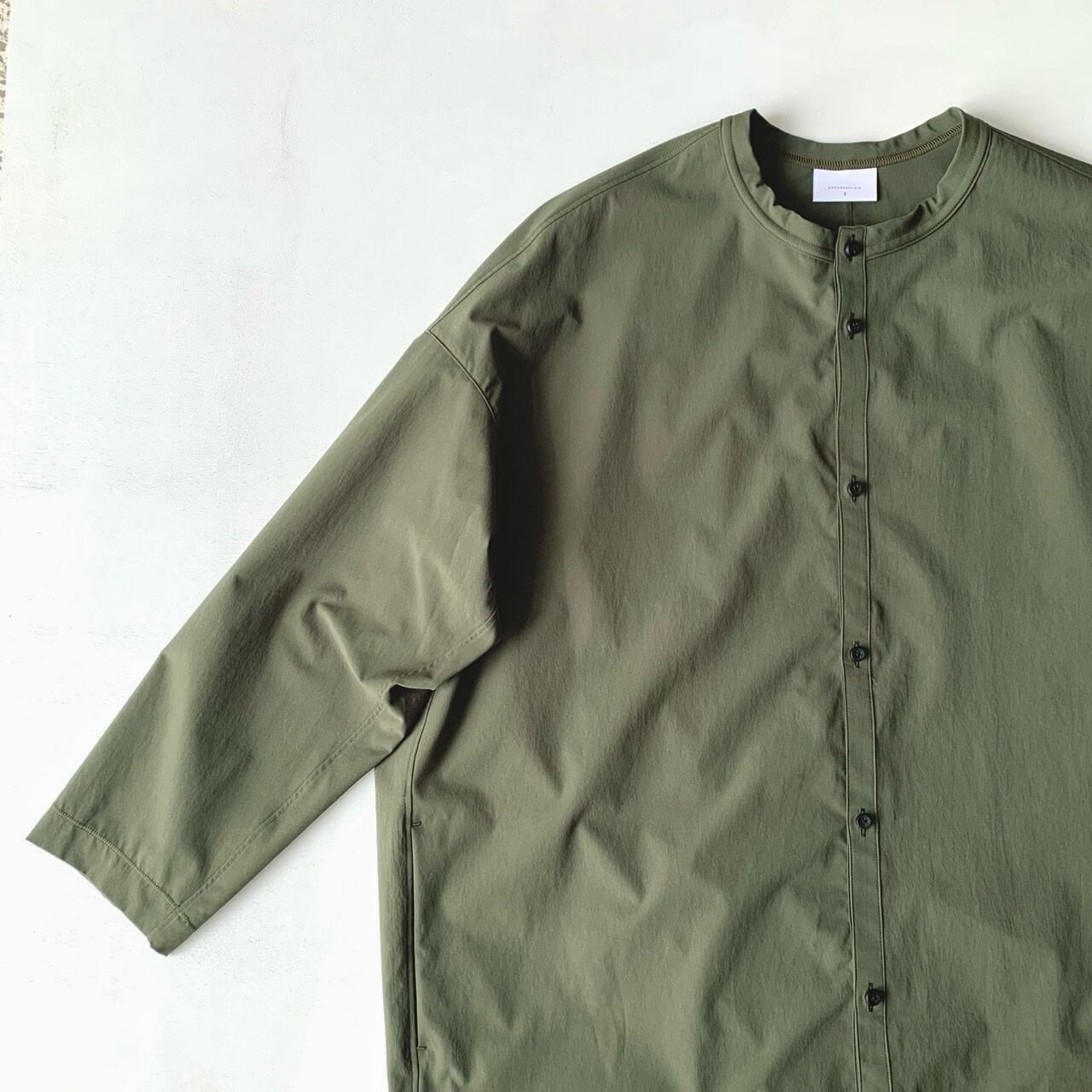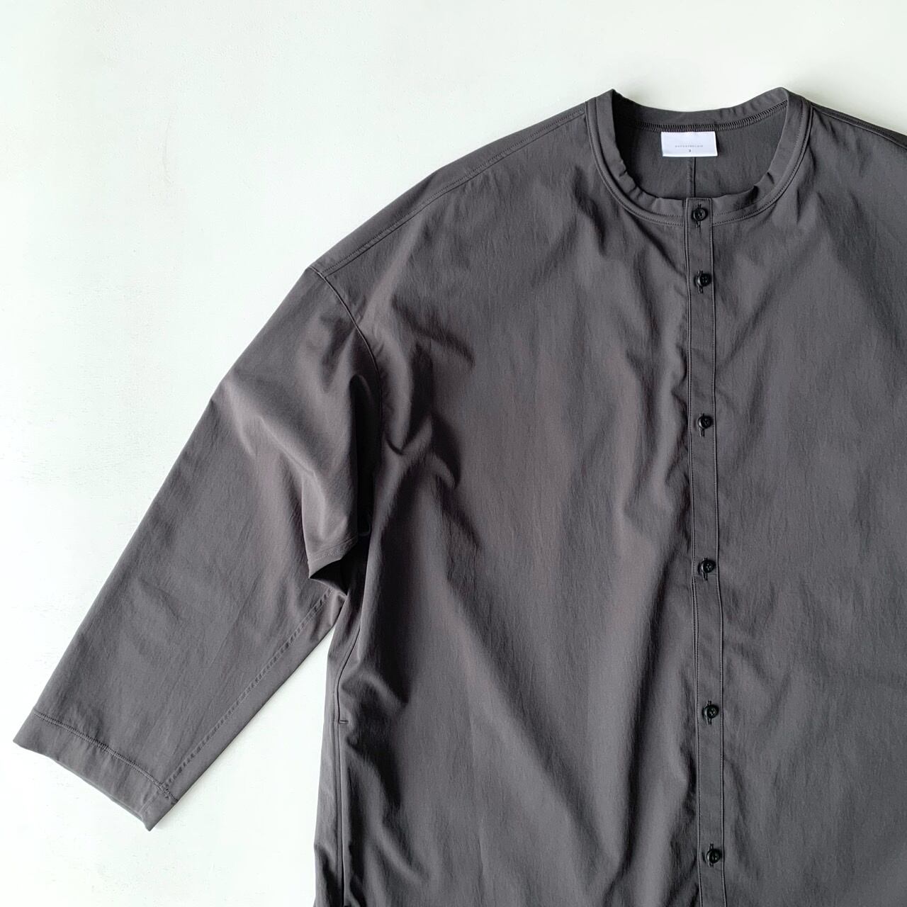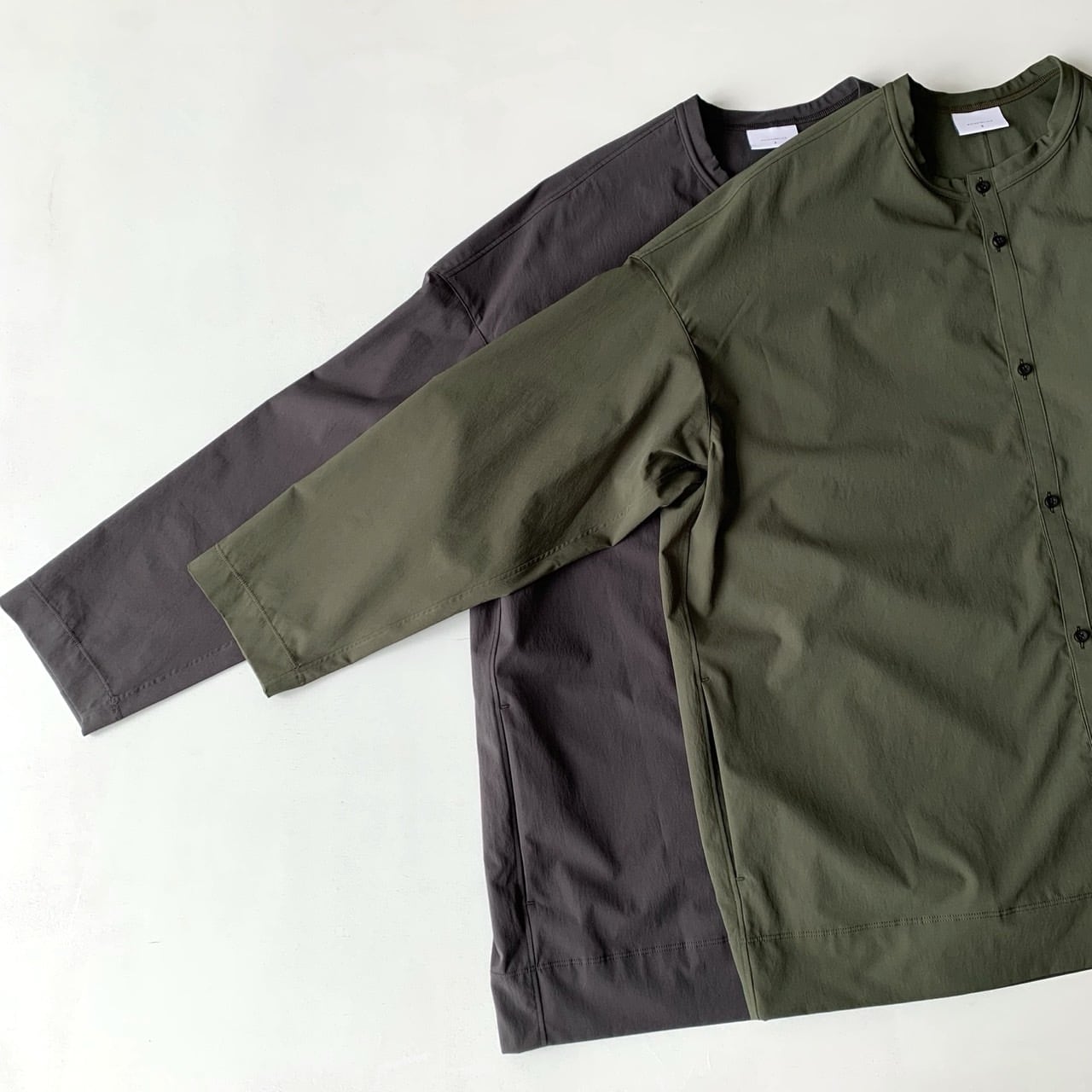光沢のないストレッチ性のあるポリエステル糸の平織りタイプライター生地を使用したシャツ。