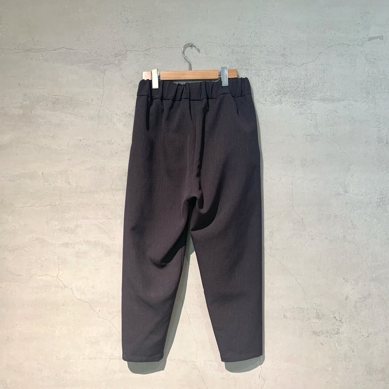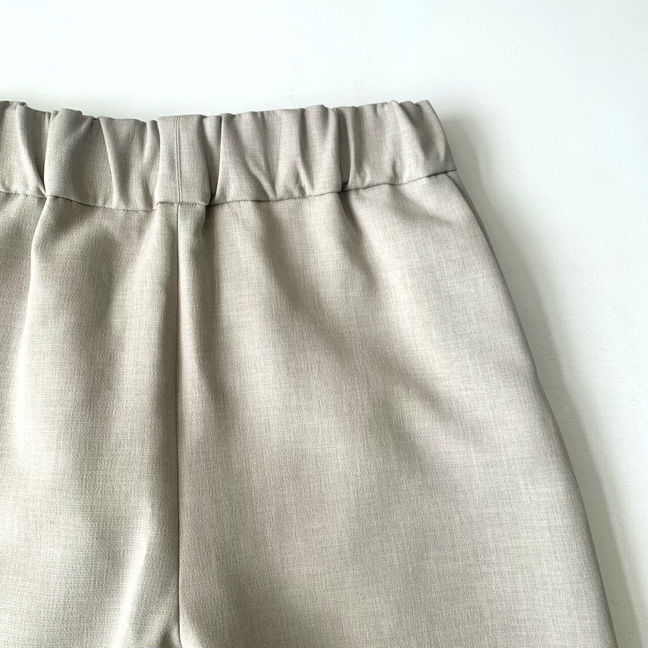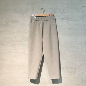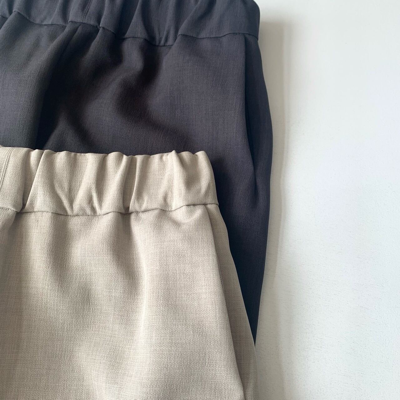 ムラ感のあるドライタッチのポリエステル糸の二重織生地を使用したパンツ。