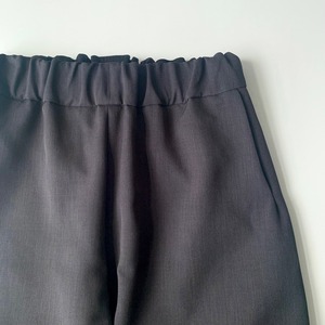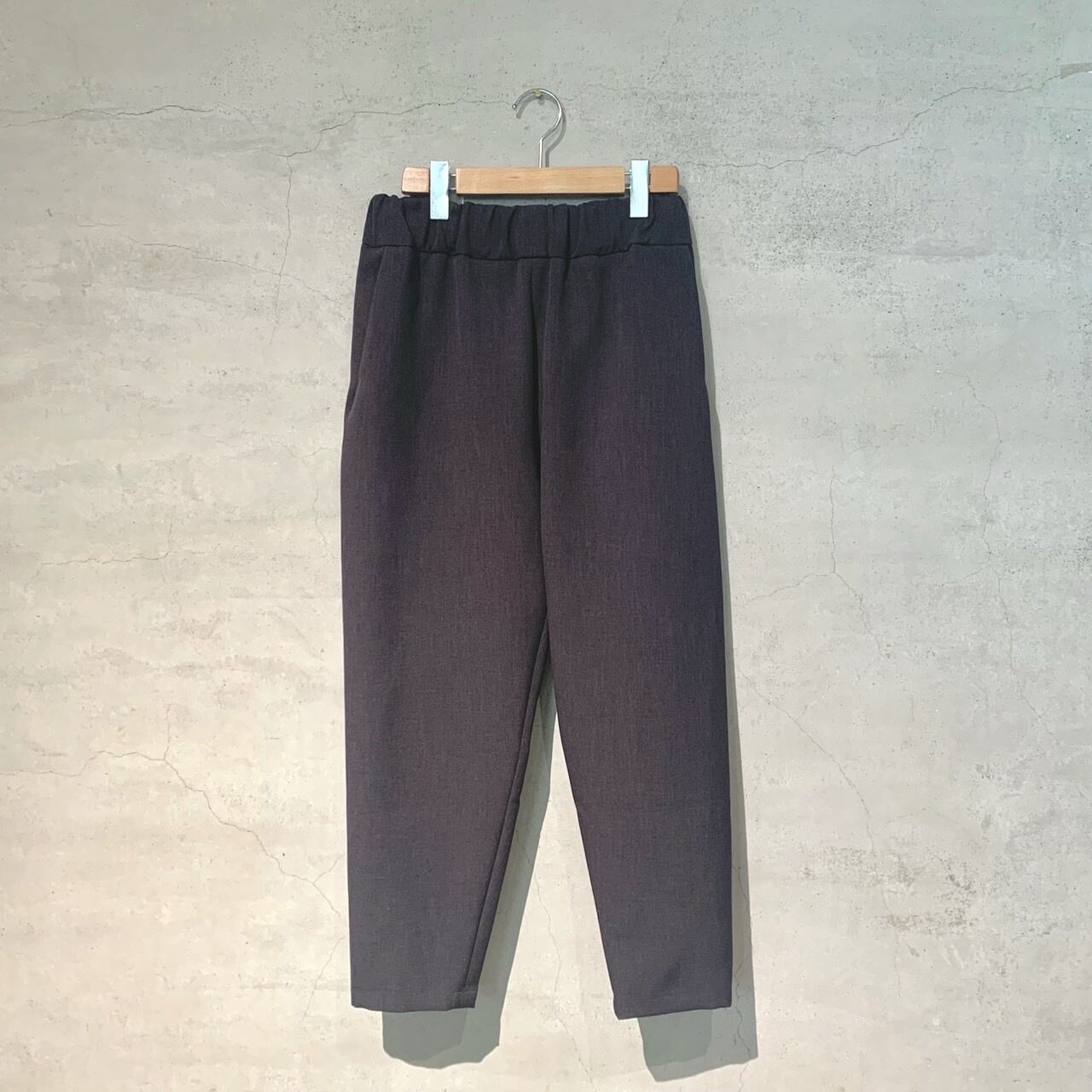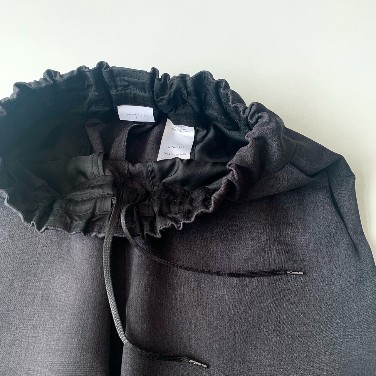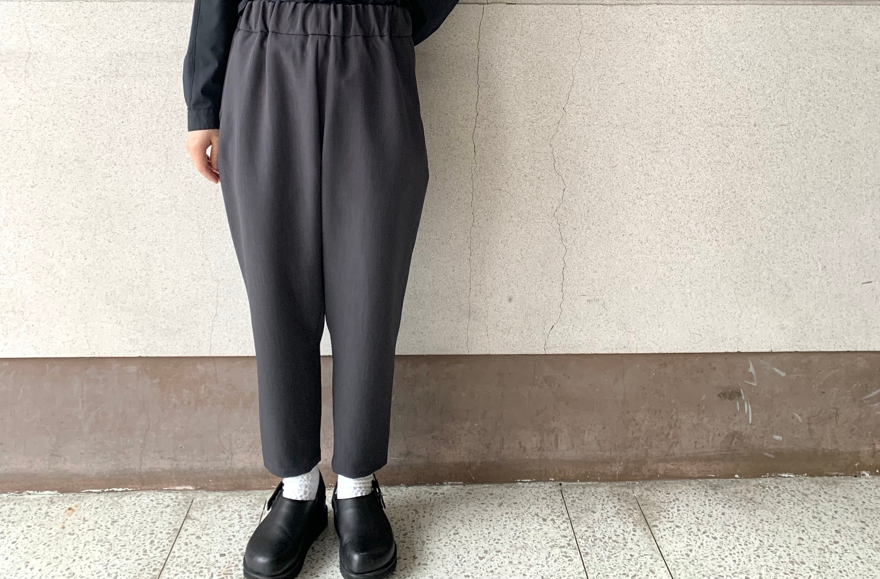 ムラ感のあるドライタッチのポリエステル糸の二重織生地を使用したパンツ。