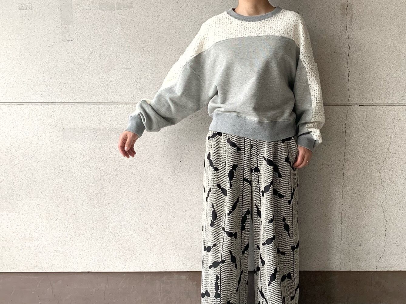 羽のように柔らかいヘアリーなレース素材を組み合わせたデザインスウェット。