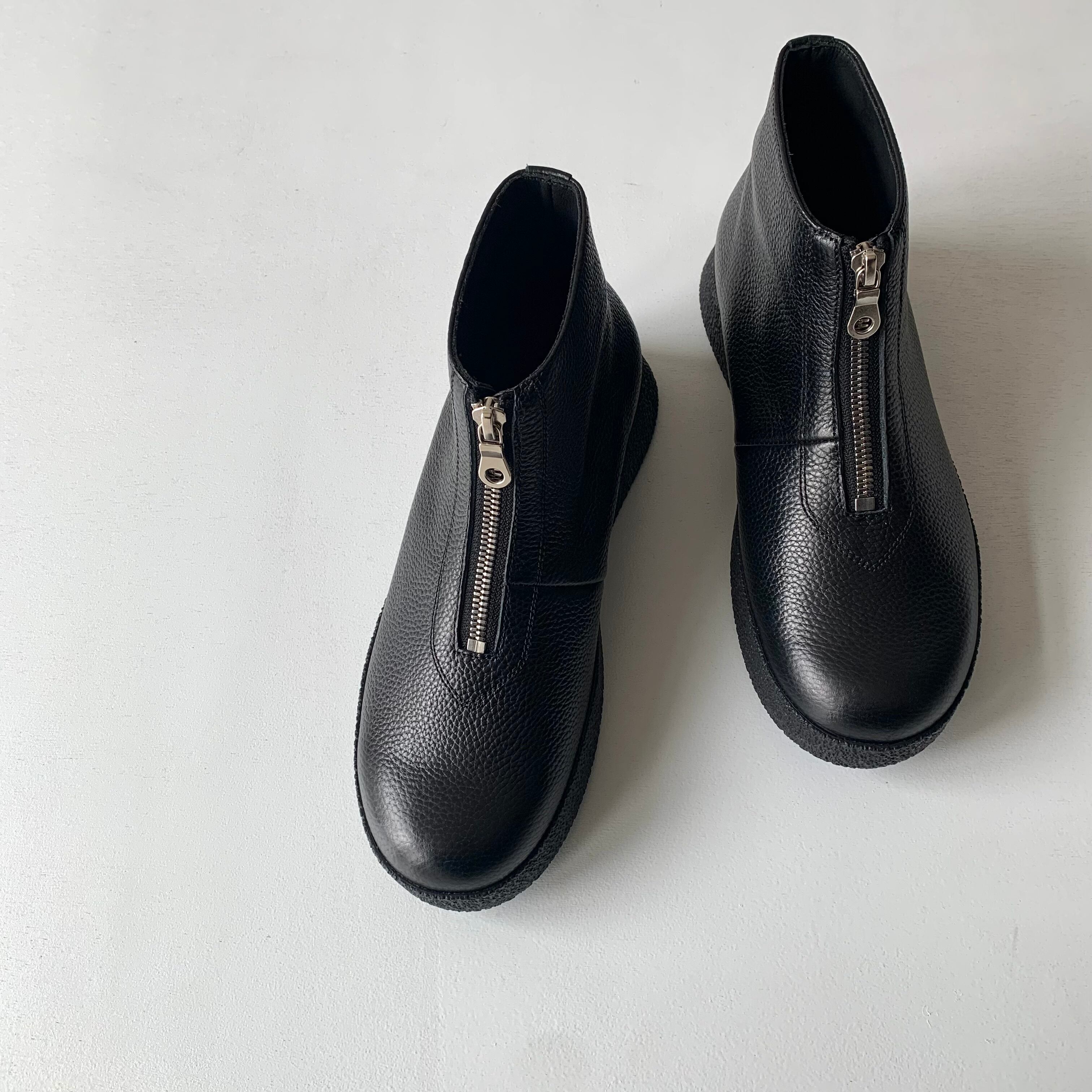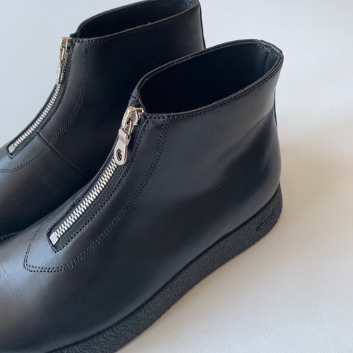 不要な切り替えをなくしたミニマルなフォルムが特徴のフロントジップブーツ。