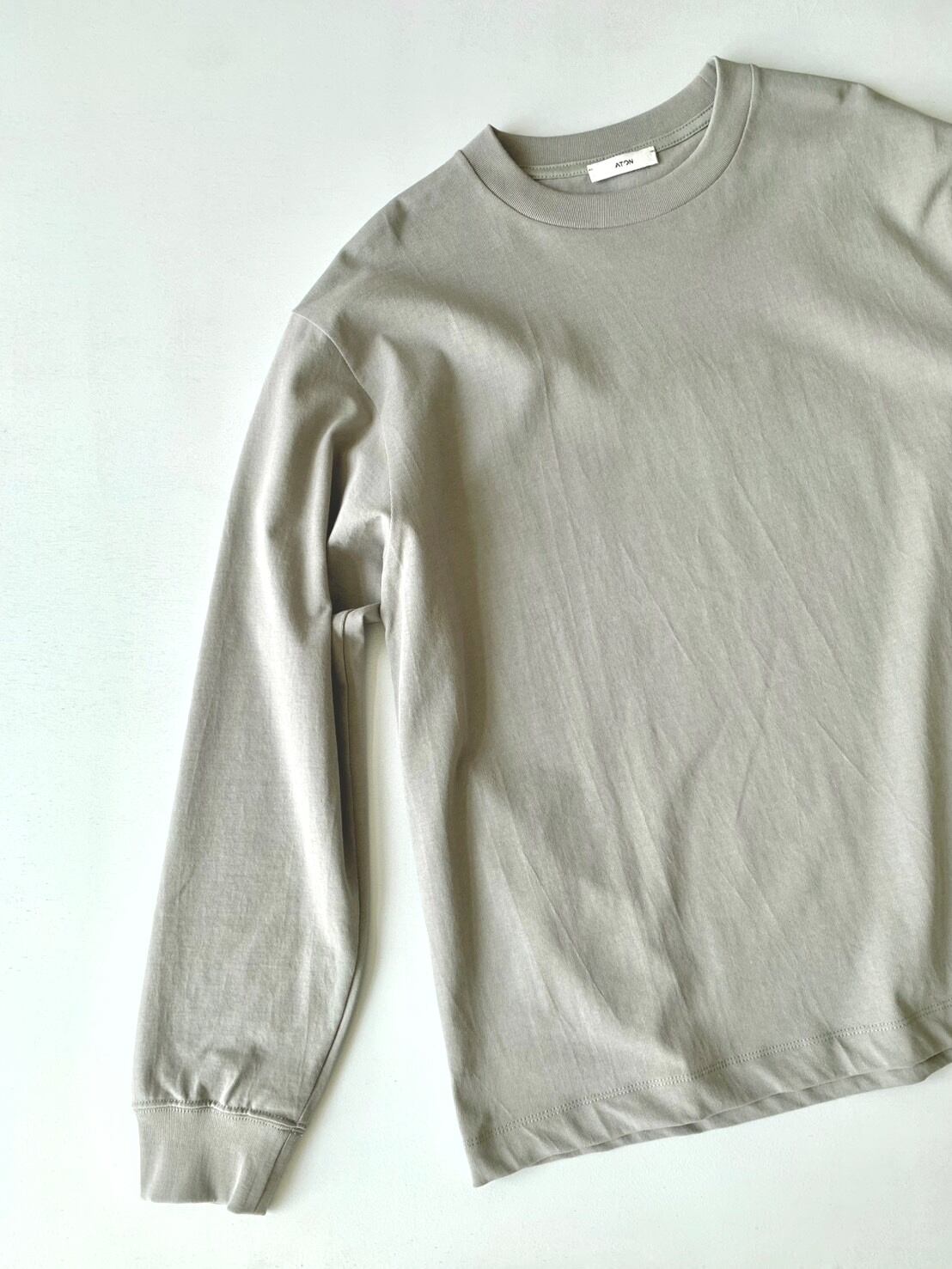 コットン100%とは思えないシャリ感と、肉厚なのに洗濯後も乾きやすく、糸が縮んだ時による細かな凹凸が肌との接地面を少なくし、サラッとした着心地が特長のATONオリジナルジャージー素材。