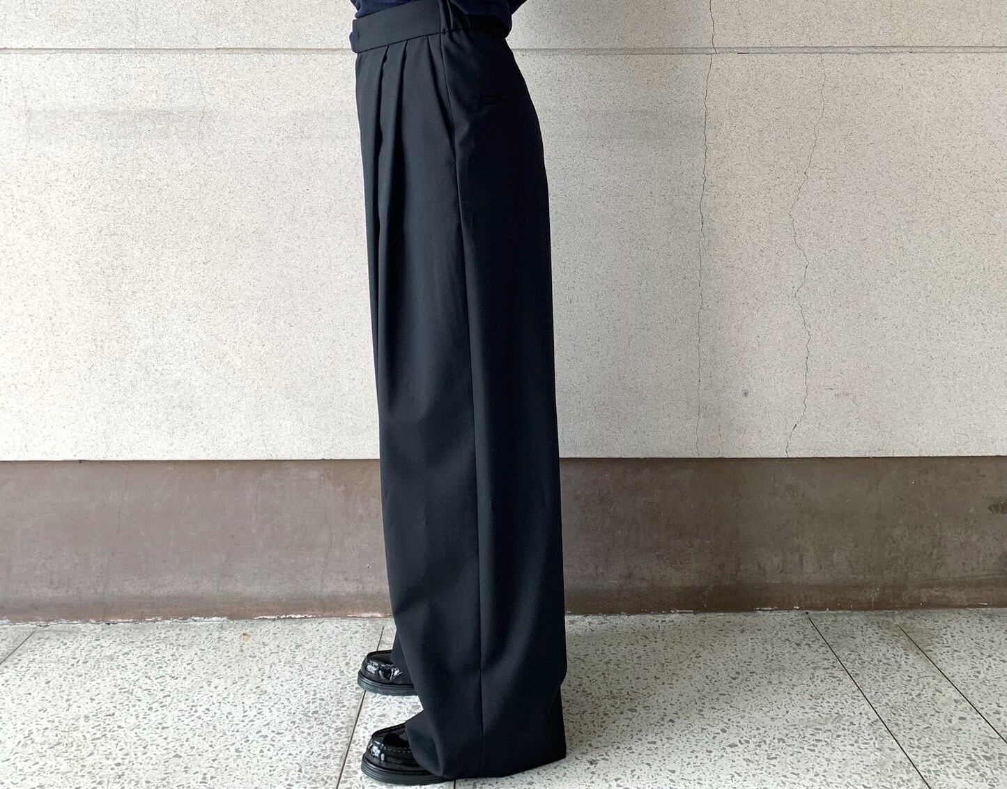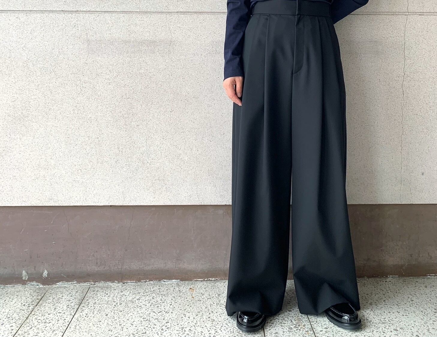1920年代のオックスフォードバッグスをベースにしたツータックワイドパンツ。