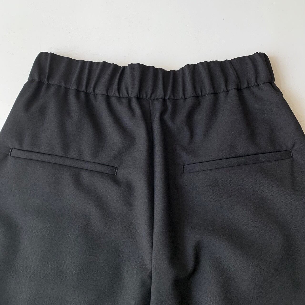 メンズのスーツのような見えですが、紐とゴムの仕様により、ジャージーパンツのようにリラックスして身に着けることができるパンツ。