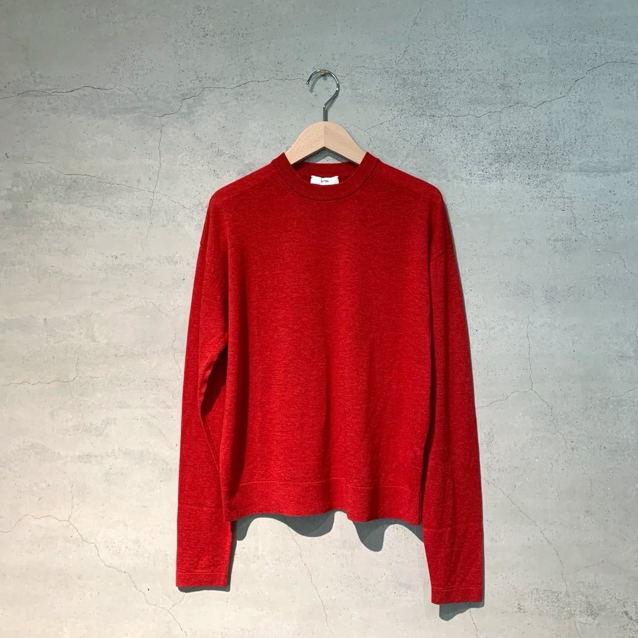 ゆったりとしたシルエットのシンプルなクルーネックのプルオーバー。