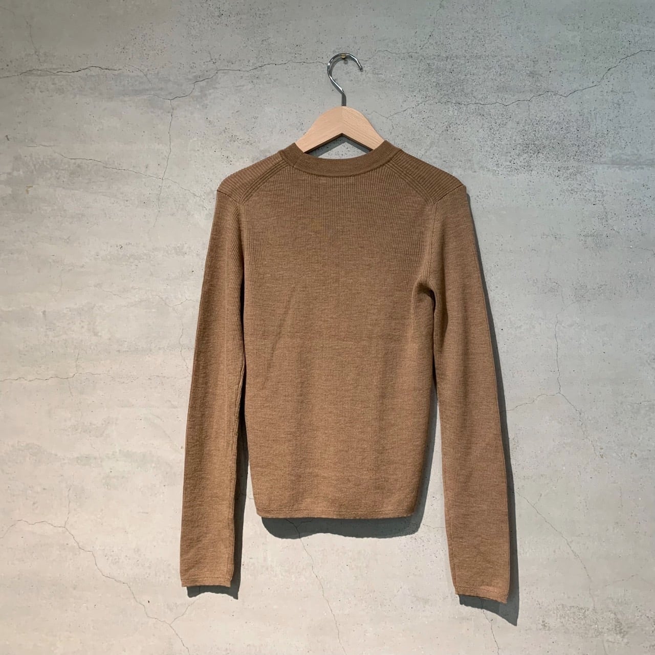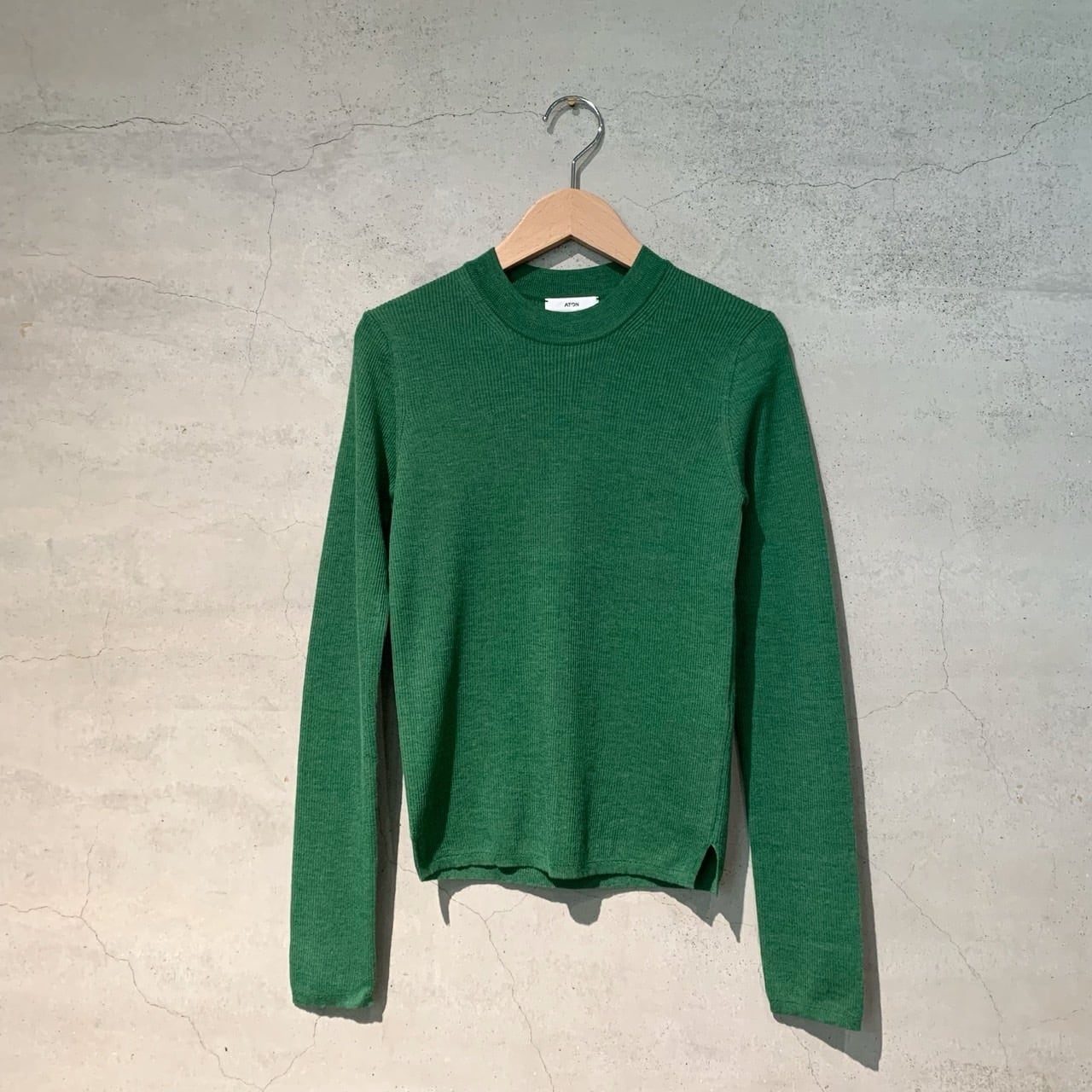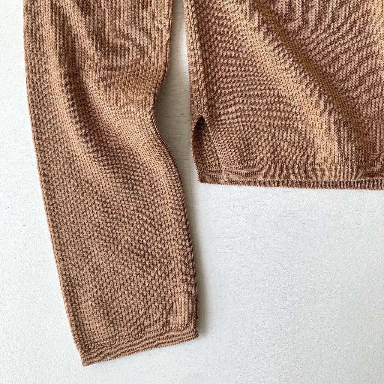 通常より短繊維やネップを除去した特別なラミー原料と、SUPER120の繊維長の長いウール原料を混紡したニット素材。