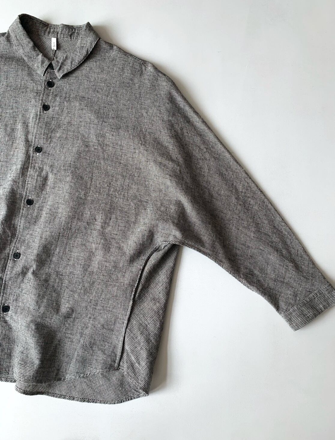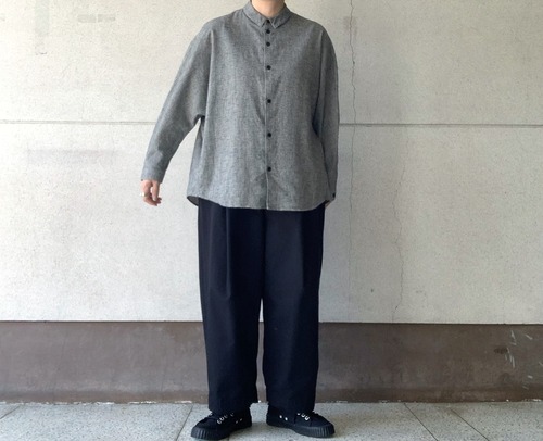 台襟付きシャツカラーのドルマン2ピースシャツ。