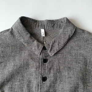 c/#07・c/#99のチェック生地は、タテ⽷に綿のカード⽷、ヨコ⽷に綿⿇混紡⽷を使⽤して織った平織シーチング⽣地です。c/#07はモノトーンのブロックチェック柄、c/#99はモノトーンの千⿃格⼦柄。