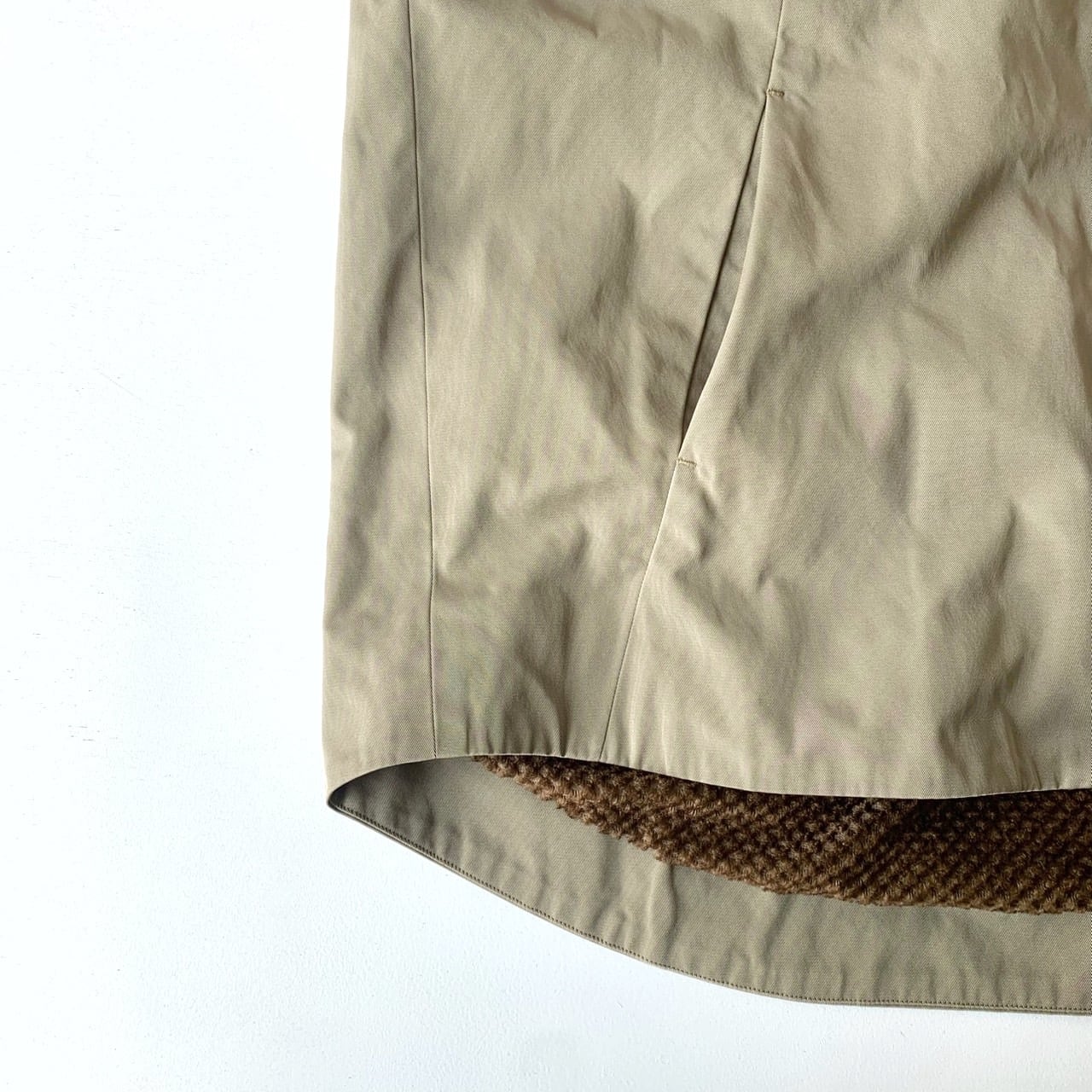 前身頃切り替え位置にシームポケット付き。
