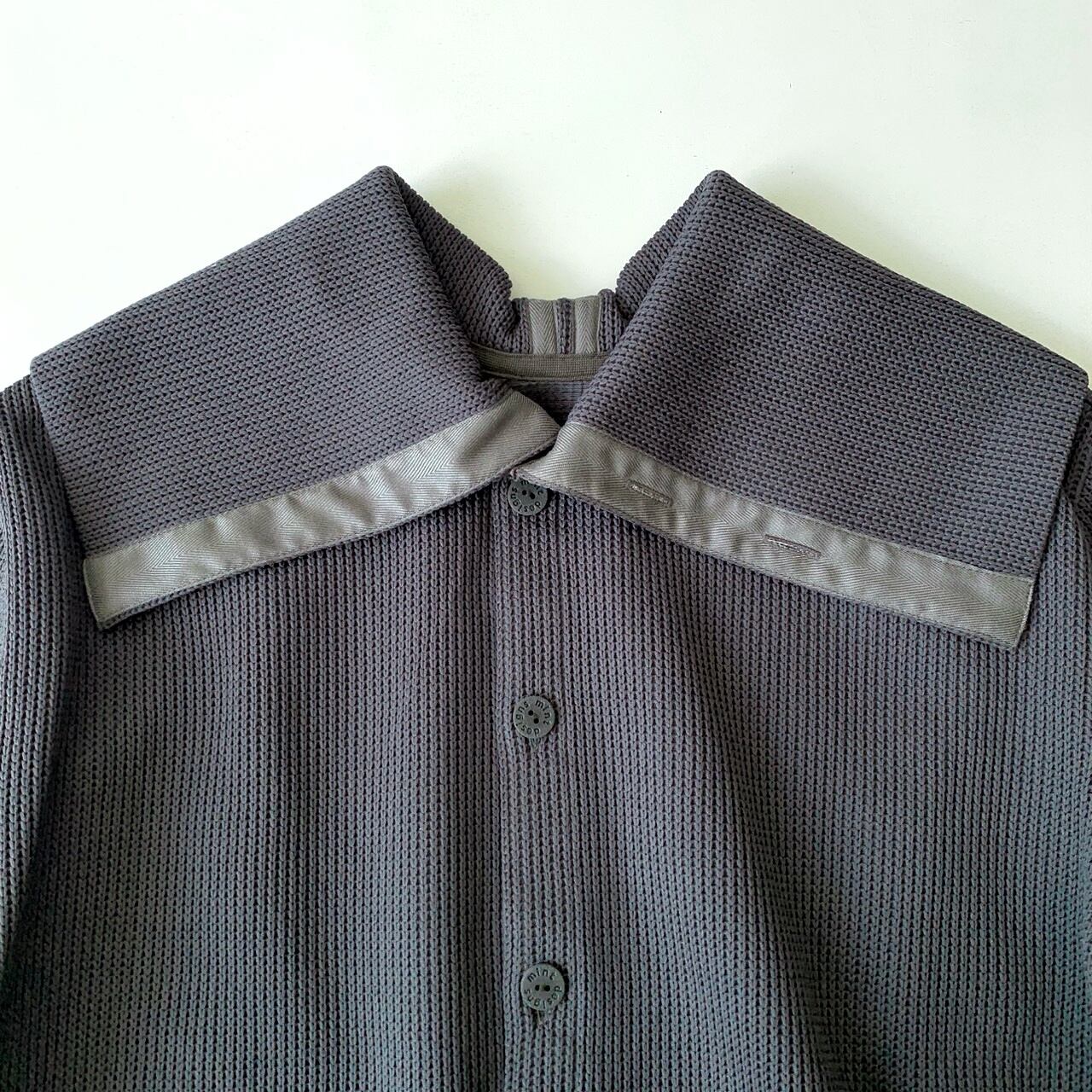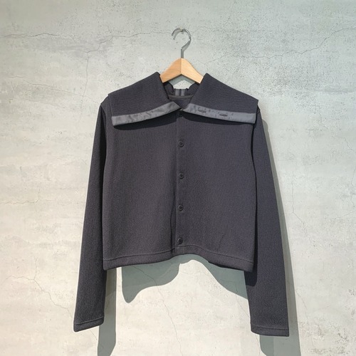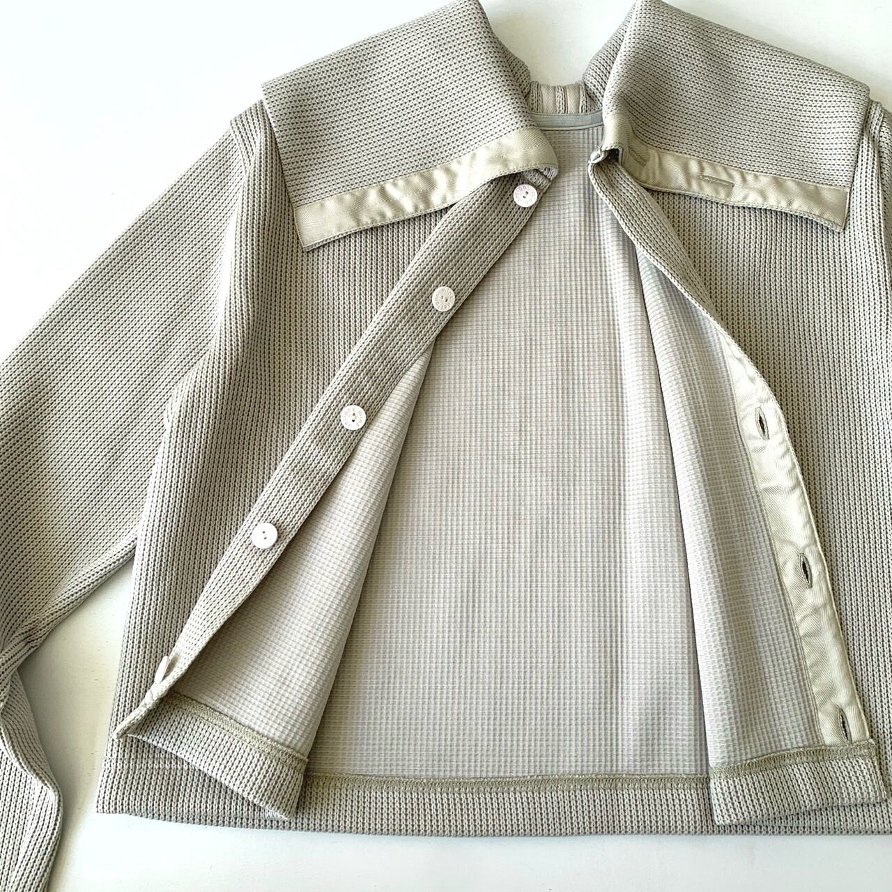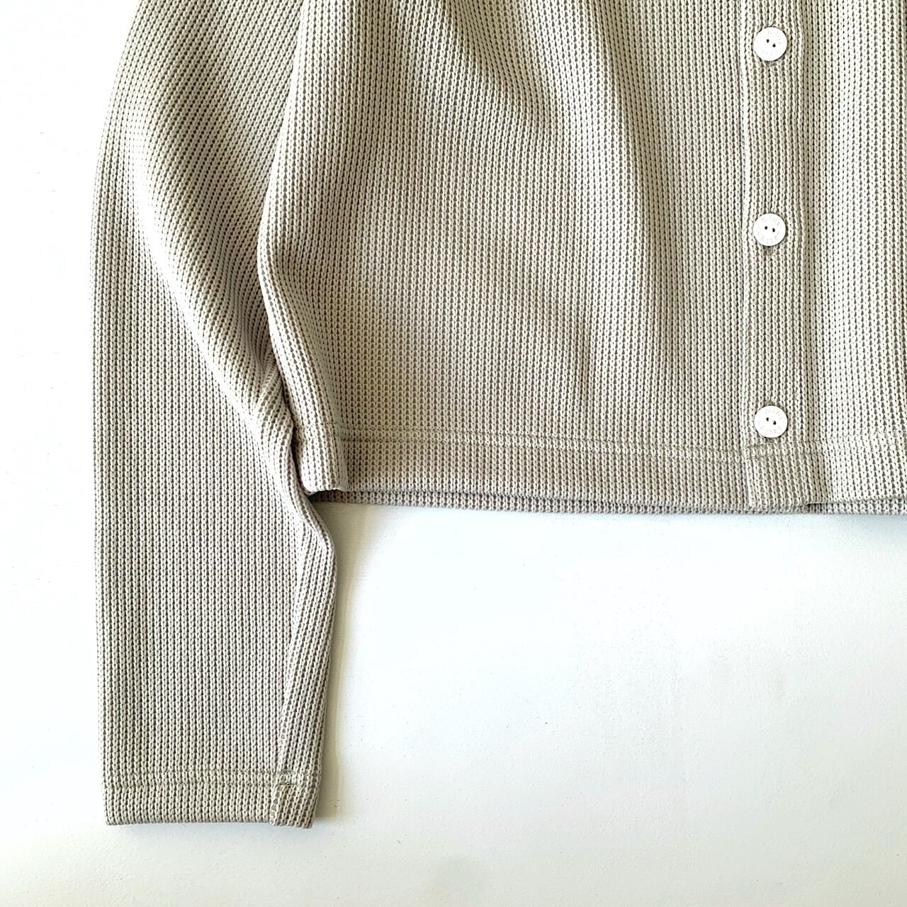 ローゲージとハイゲージを裏表で合わせたジャージー素材を使用したカーディガン。