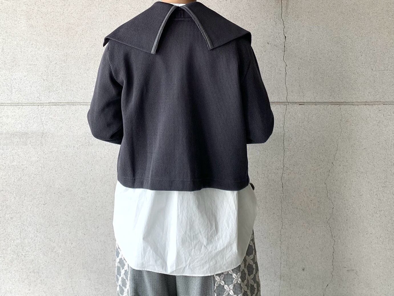 前開きを前にしてカーディガンとして、開きを後ろにしてトップスとして、と前後ろ両方で着用できる2WAY仕様。
