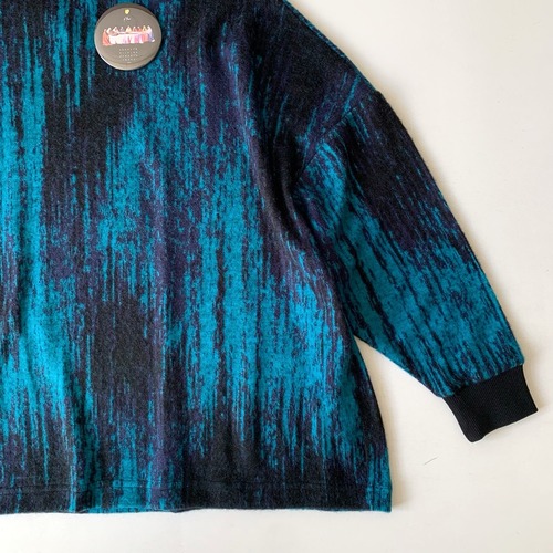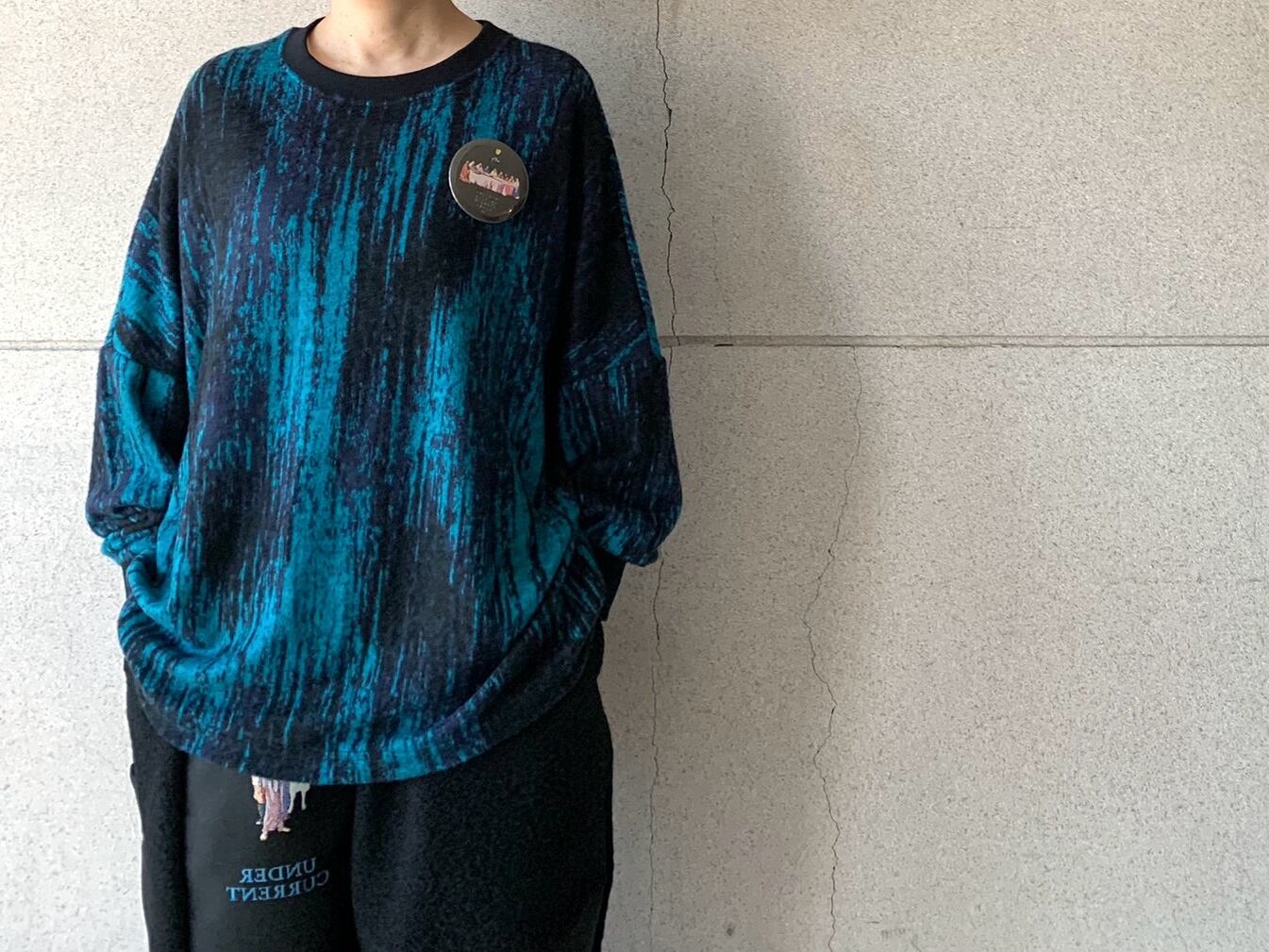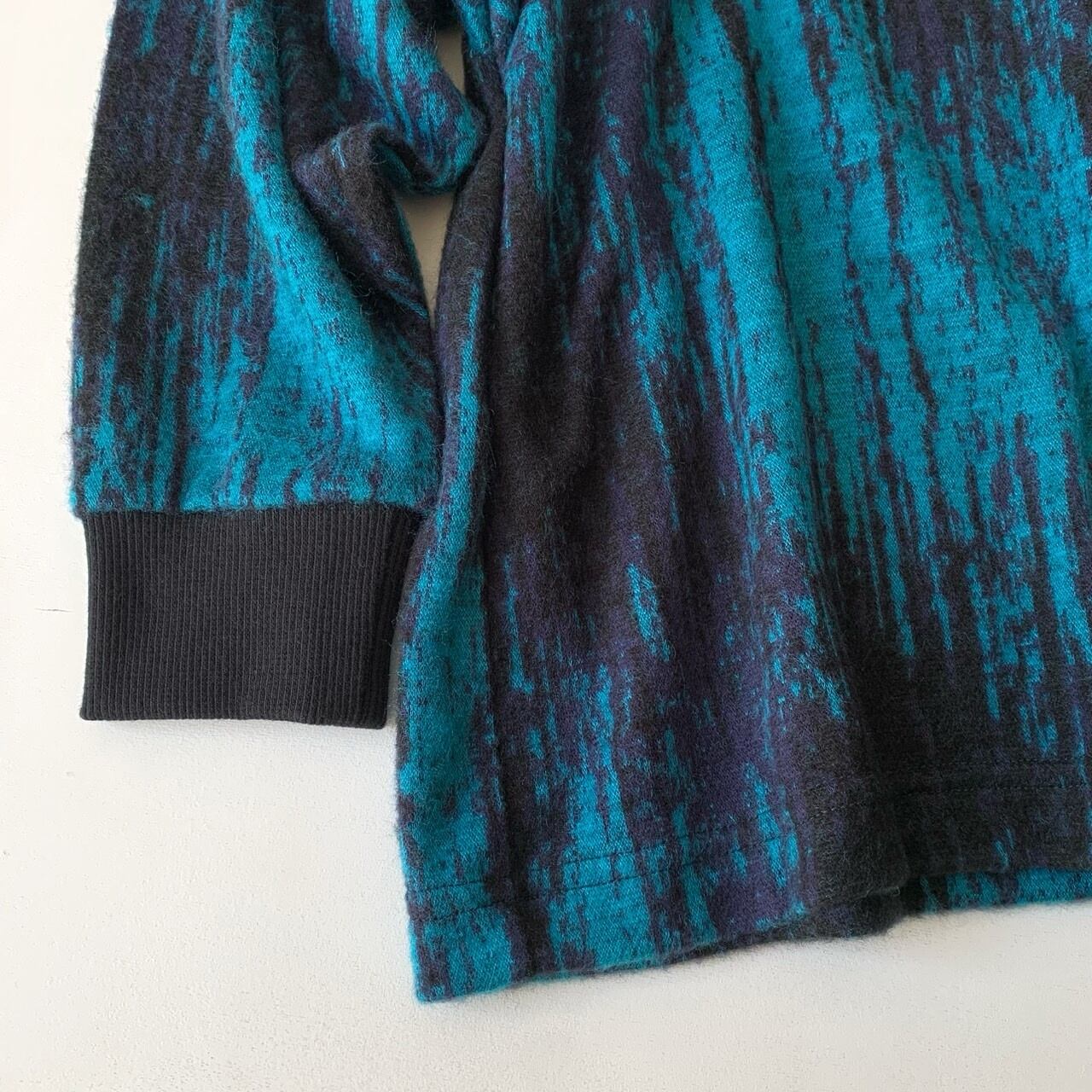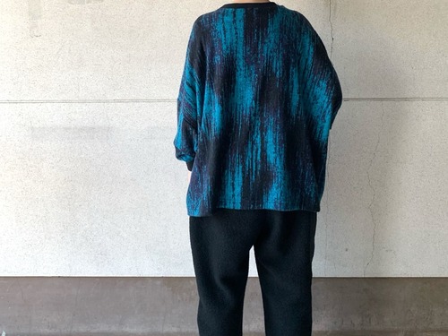 迷彩のような緩やかにうつりかわるような柄に起毛をかけて、さらにぼんやりさせたオリジナルのウールジャカードニット素材で仕立てたシンプルなプルオーバーです。