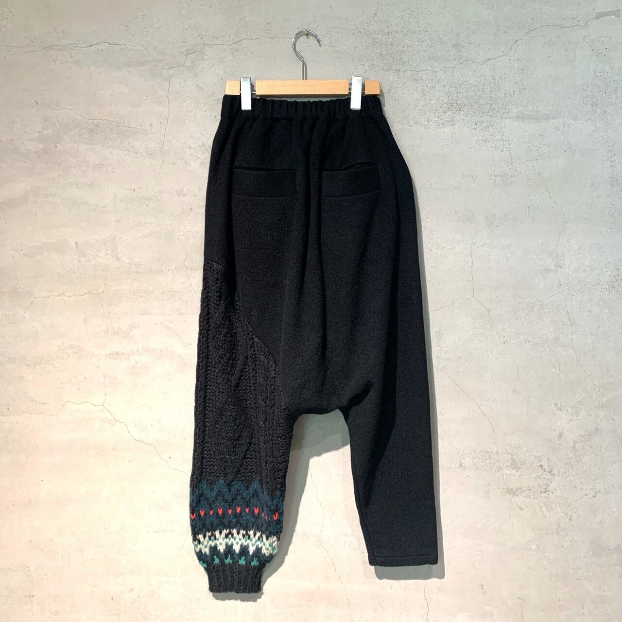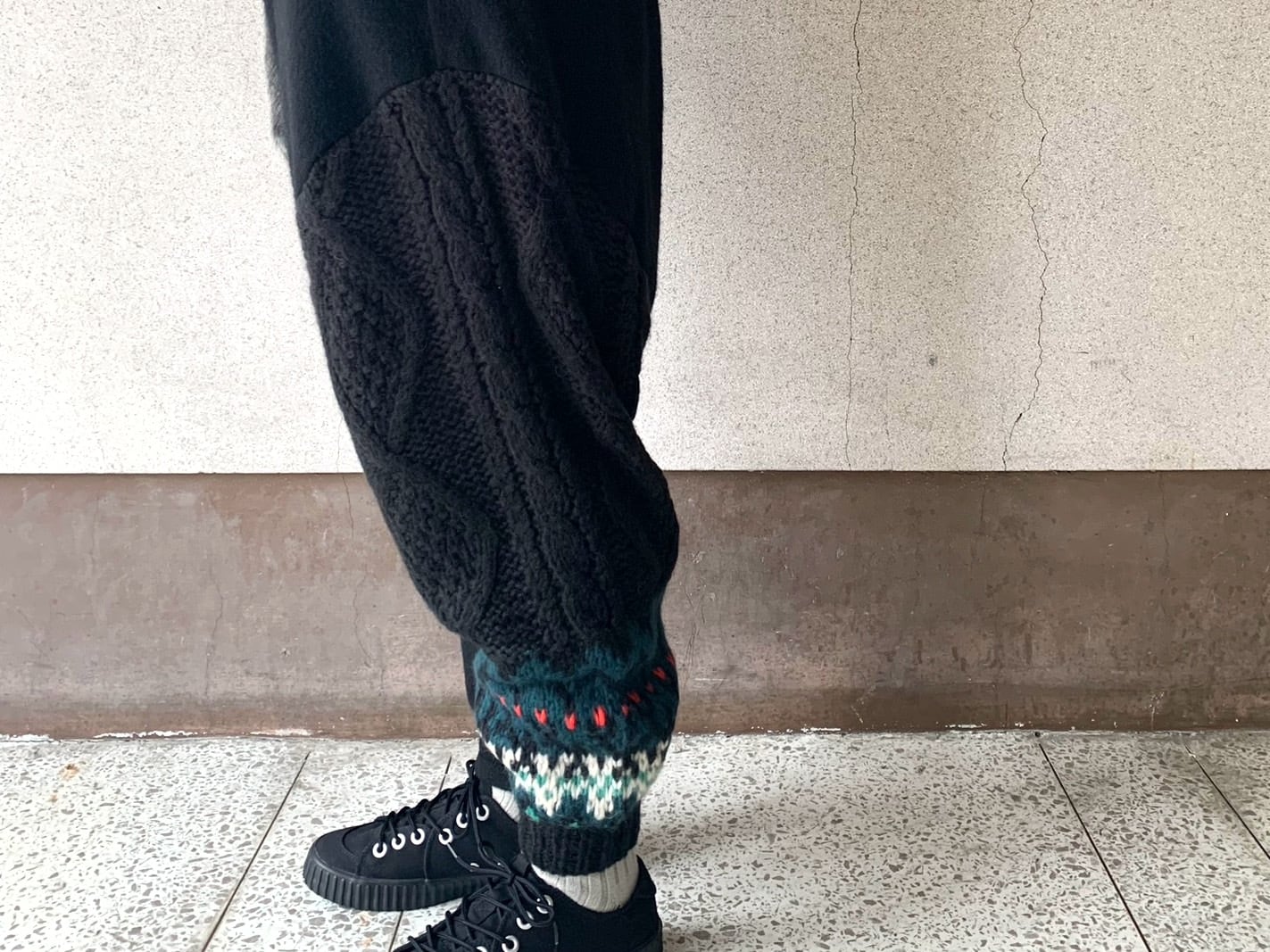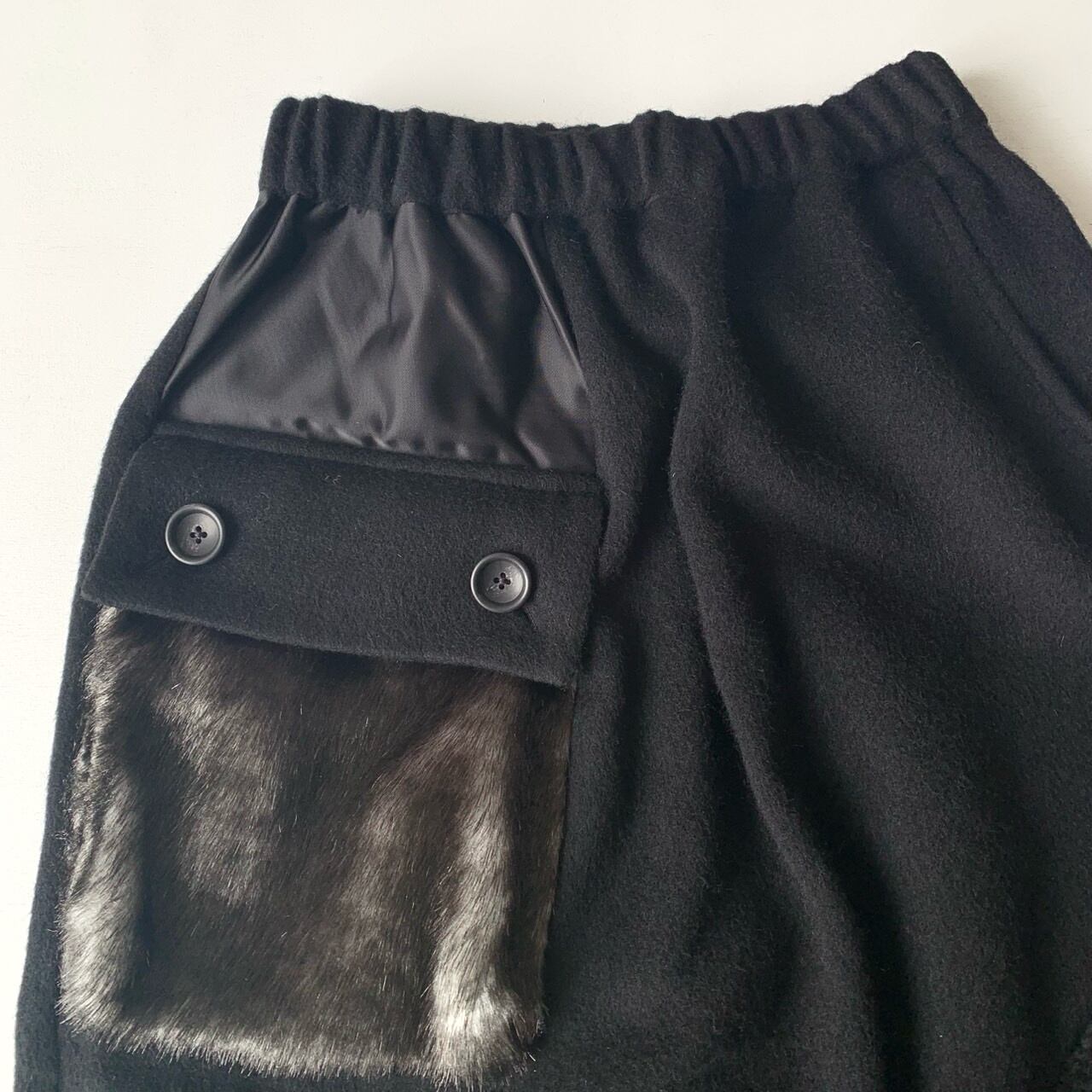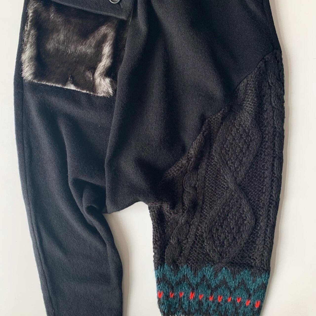 上質なウールに、手編みのニット、リアルなエコファー等様々な素材、ディティールを詰め込んだプリミティブな魅力に溢れたボトムス。