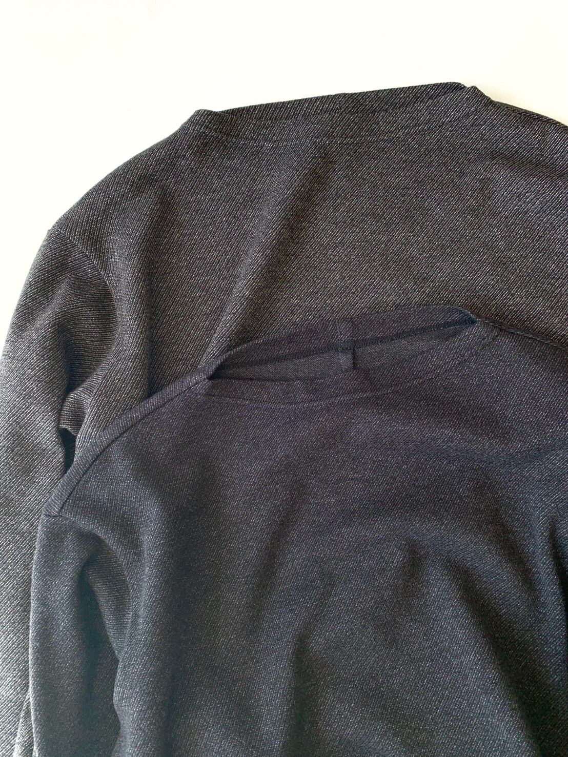 ※吊りで保管したり⼲したりすると⾝頃が伸びる可能性があります。できるだけ畳みでの保管をお勧めいたします。伸びてしまった場合は、⽔洗い後乾燥機を使⽤することで元に戻ります。