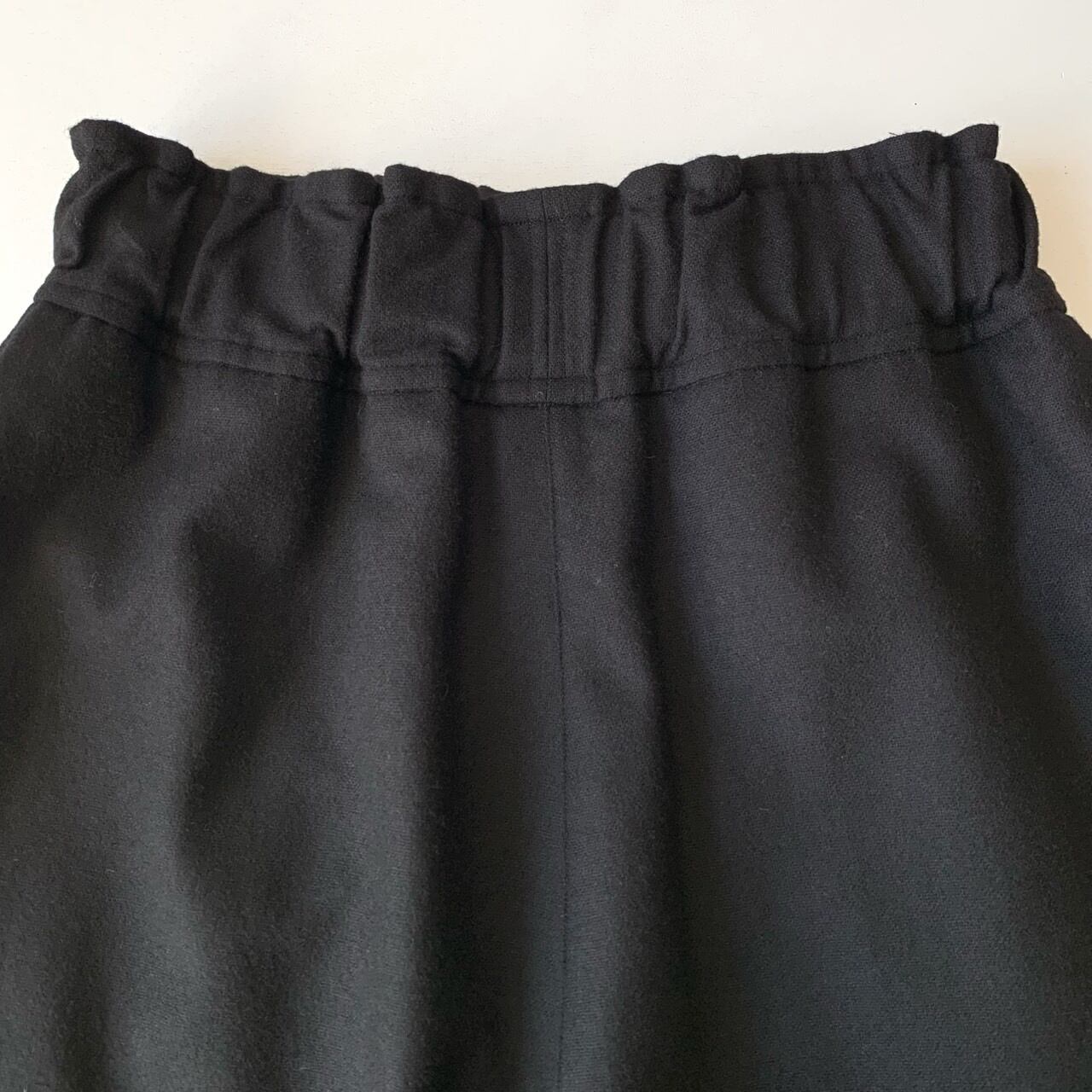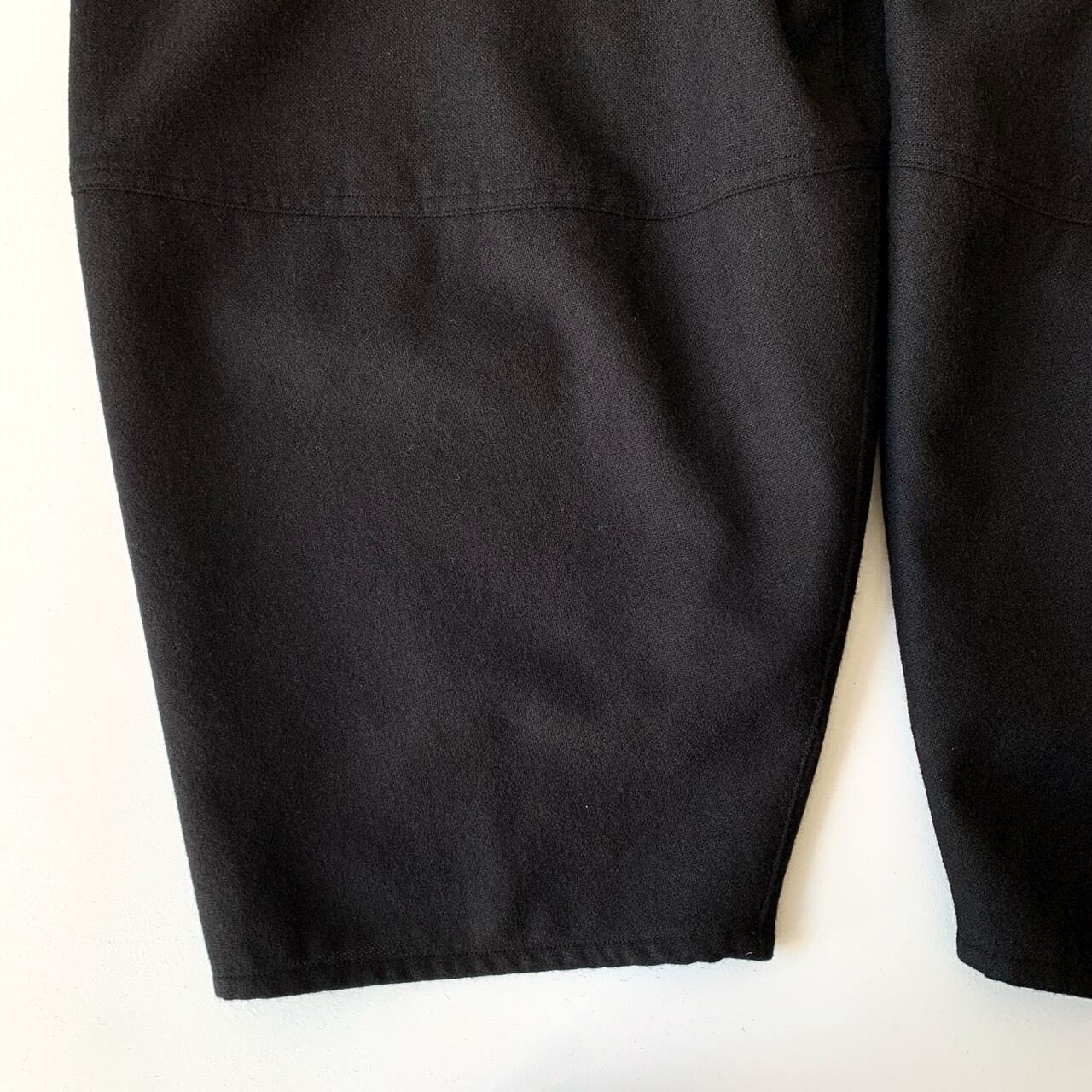膝位置で切り替えがあり膝下テーパードシルエット。