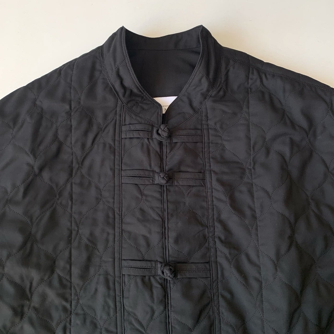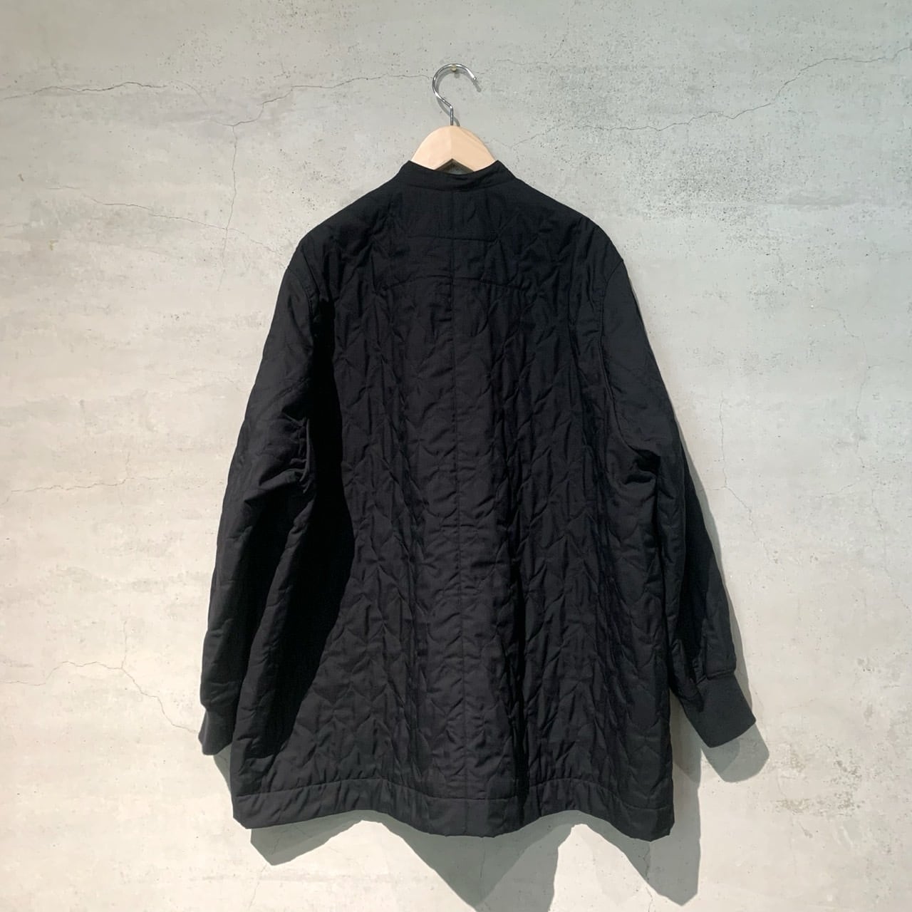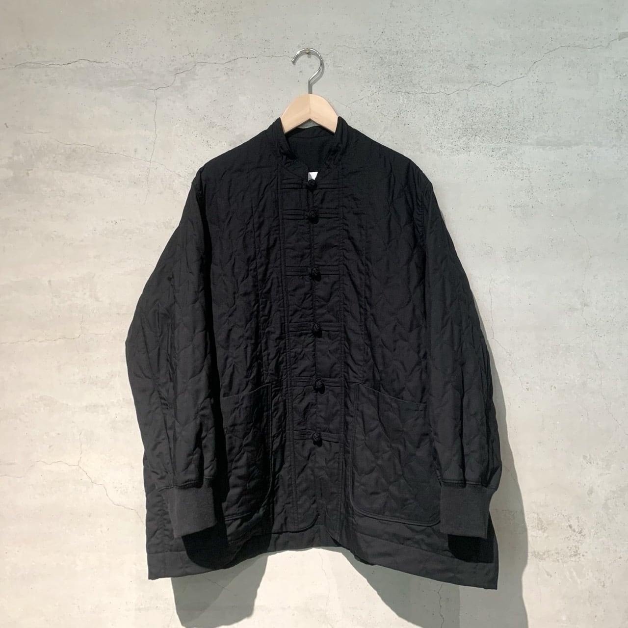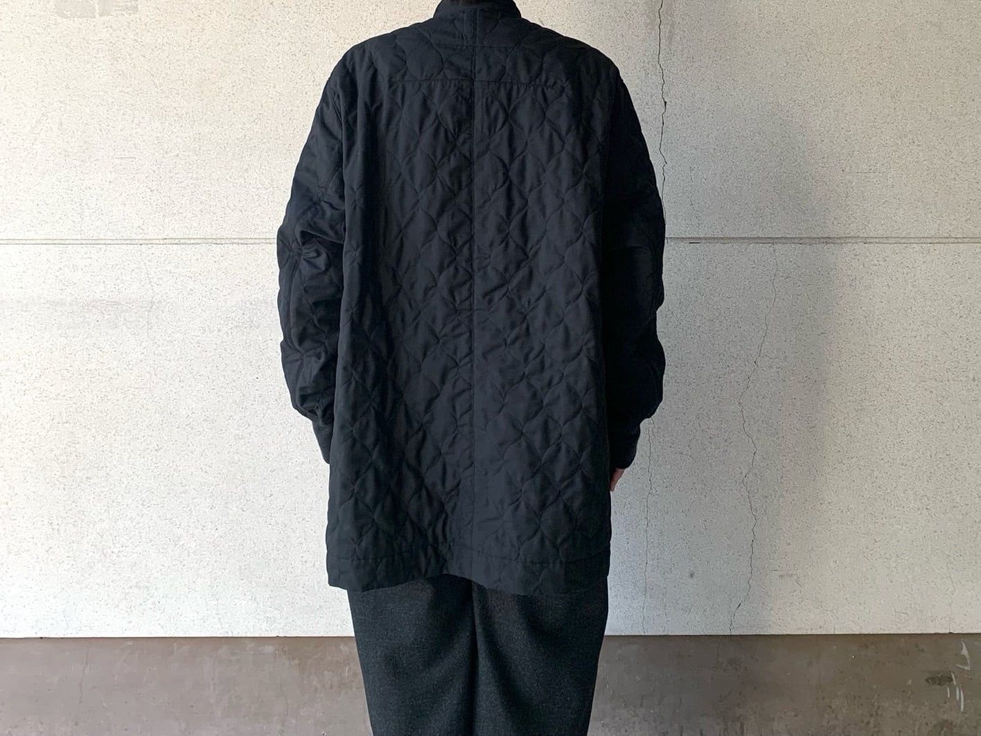 ポリエステルとレーヨンの精紡交撚糸を経糸緯糸共に使用した綾織生地にコマサーモを重ねてキルティングにしたジャケット。