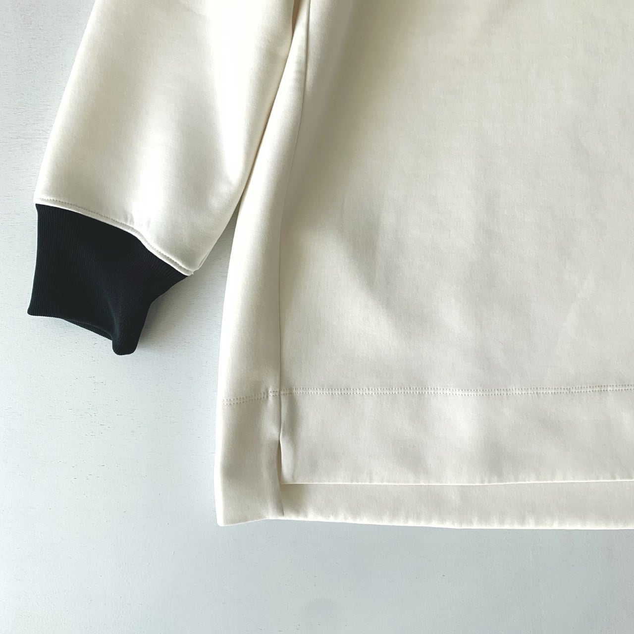 ポリエステル糸でしっかりと編んだダンボールニットを使用したプルオーバー。