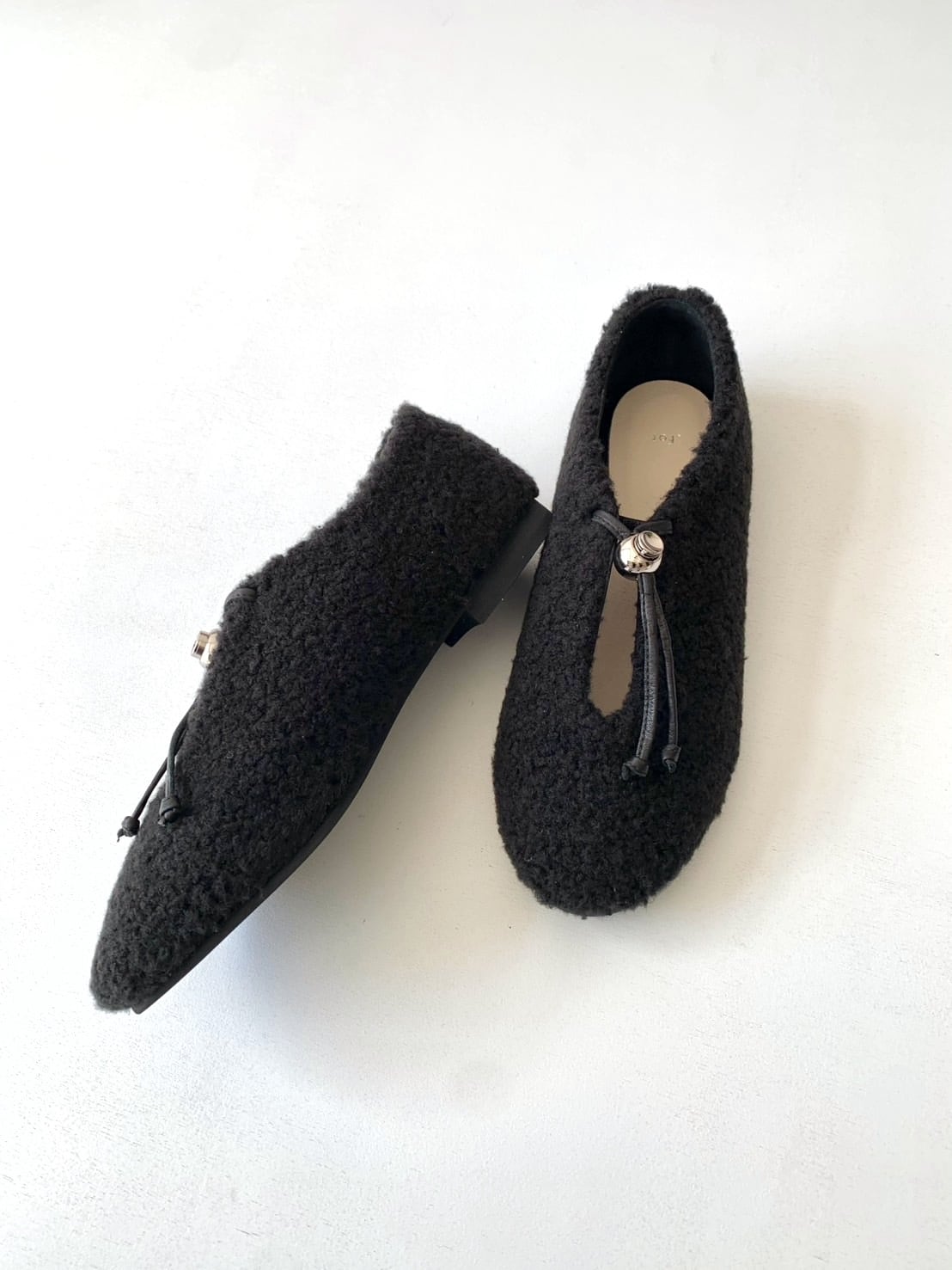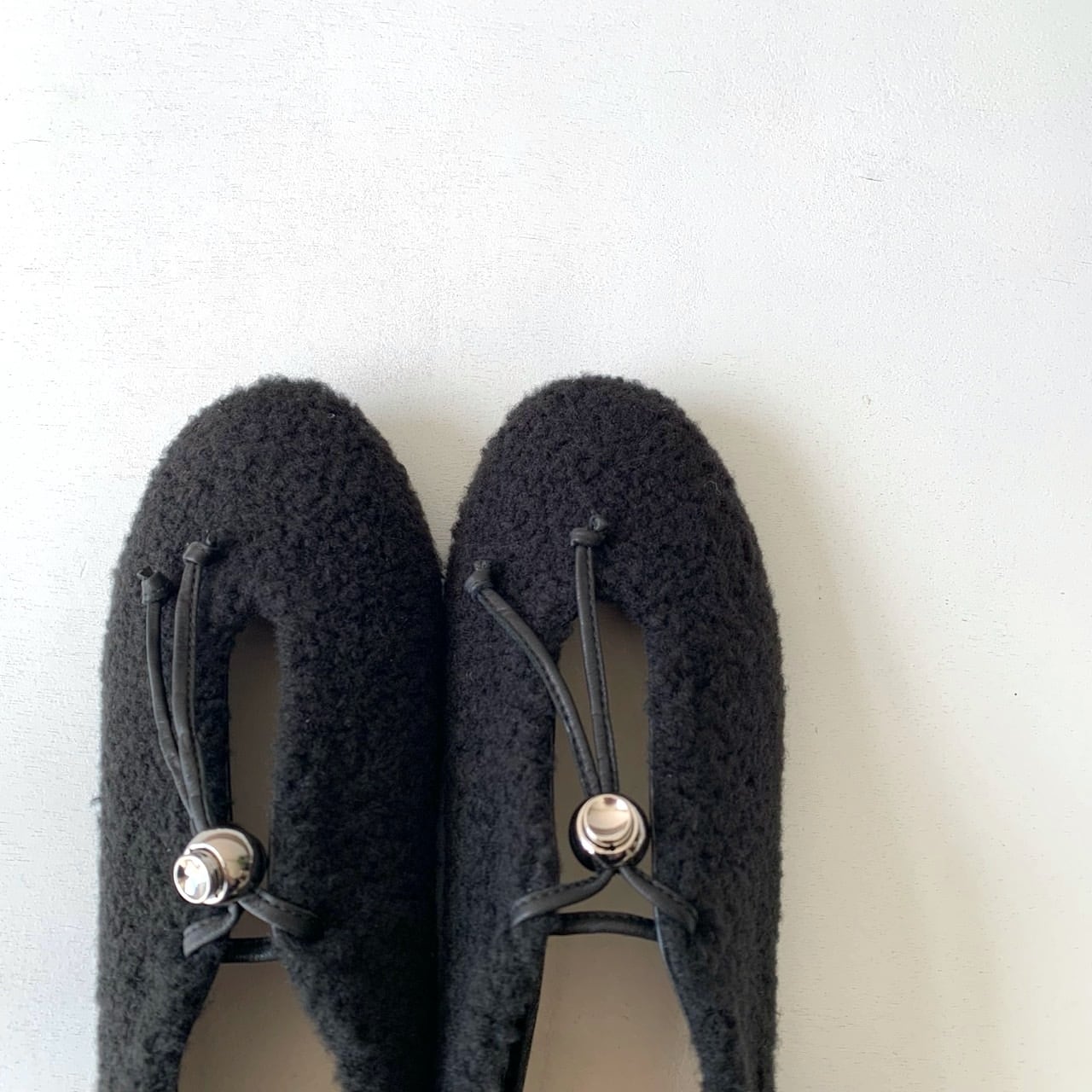 metal ballのコードロックがついたフラットシューズ。
