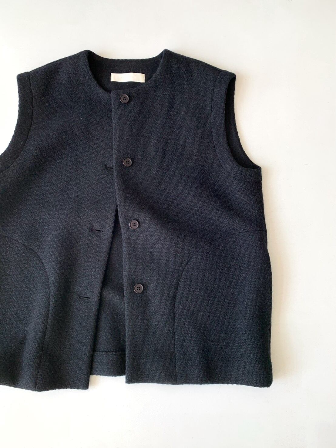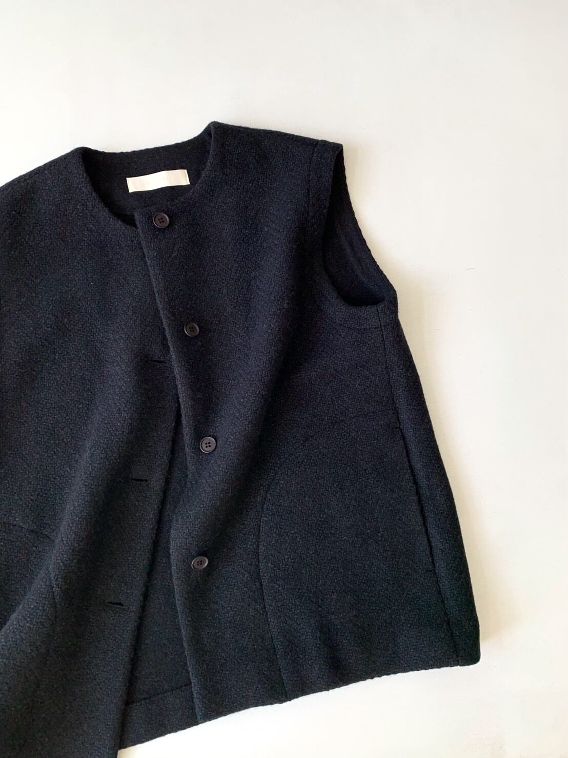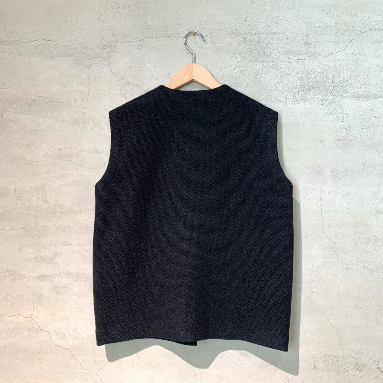renew-woolの糸の存在を感じる太番手の織り糸と、同色に染めたシルクの糸が見え隠れするざっくりとした織り目が暖かな雰囲気のアウター生地です。