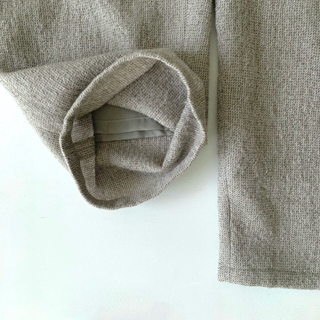 ゆったりとした履き心地のワイドパンツ。キュプラ地の裏地付。