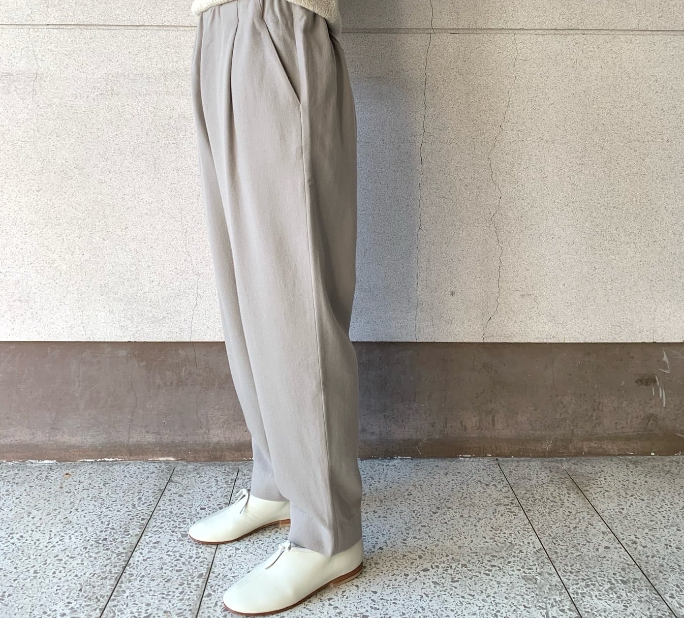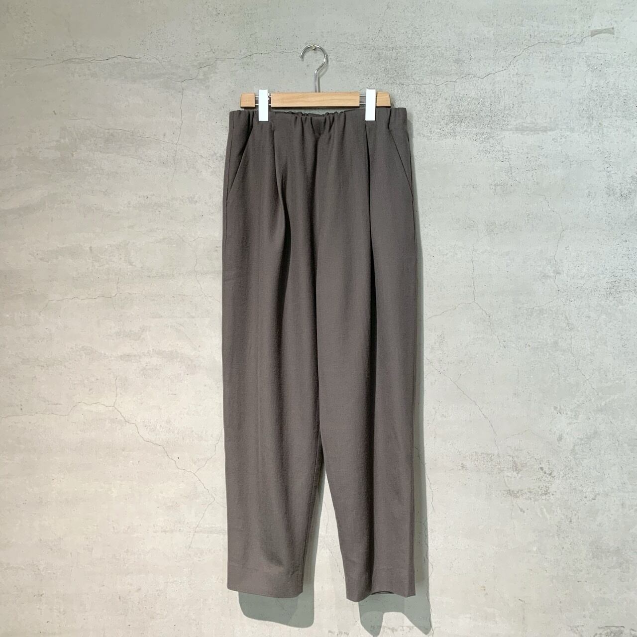 やわらかな履き心地のタックパンツ。ゆとりがありながら足元にかけてすっきりと軽やかさのあるデザイン。