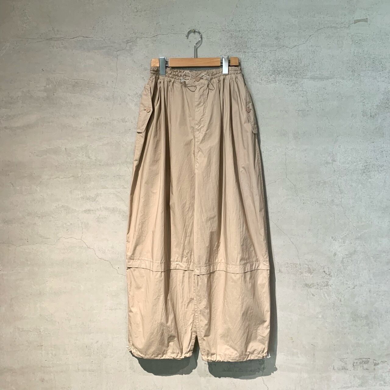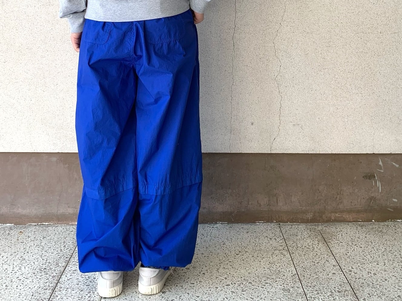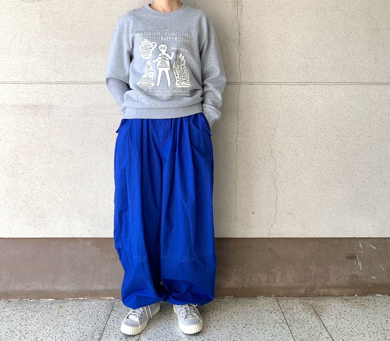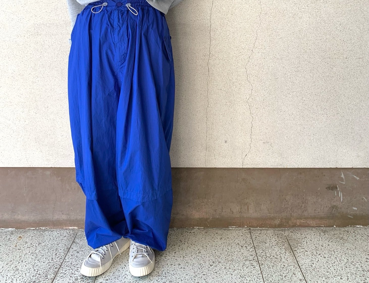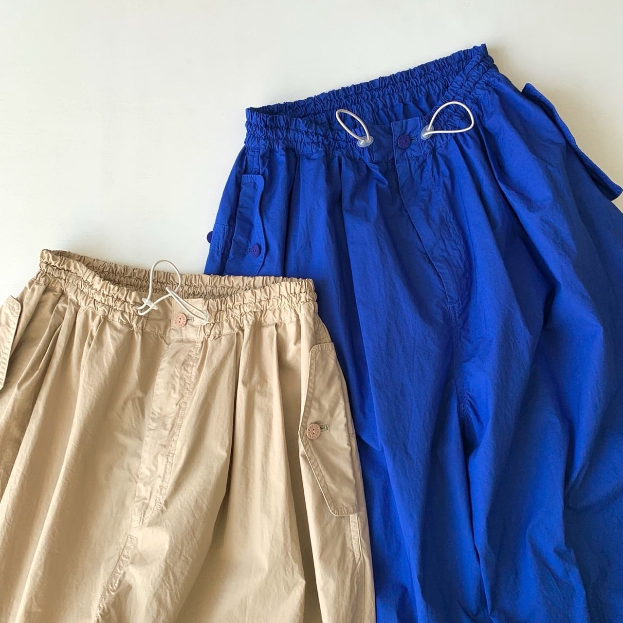 軽くしなやかなコットンタイプライターを製品染にしたボリュームパンツ。