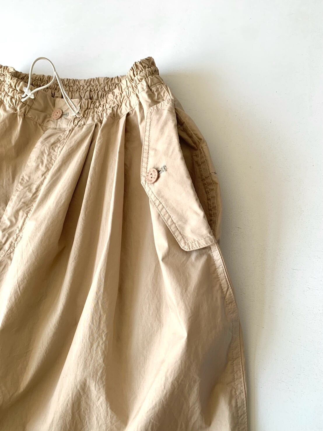 たっぷりのギャザーと裾にしたドローストリングでシルエットに変化をつけて楽しめます。