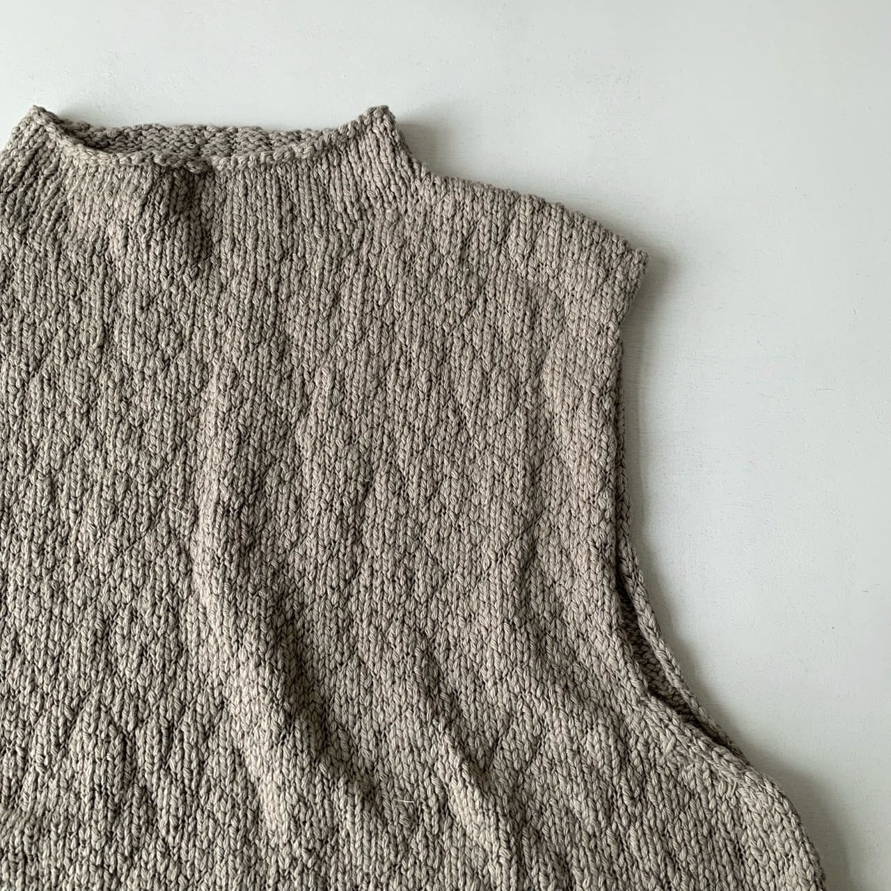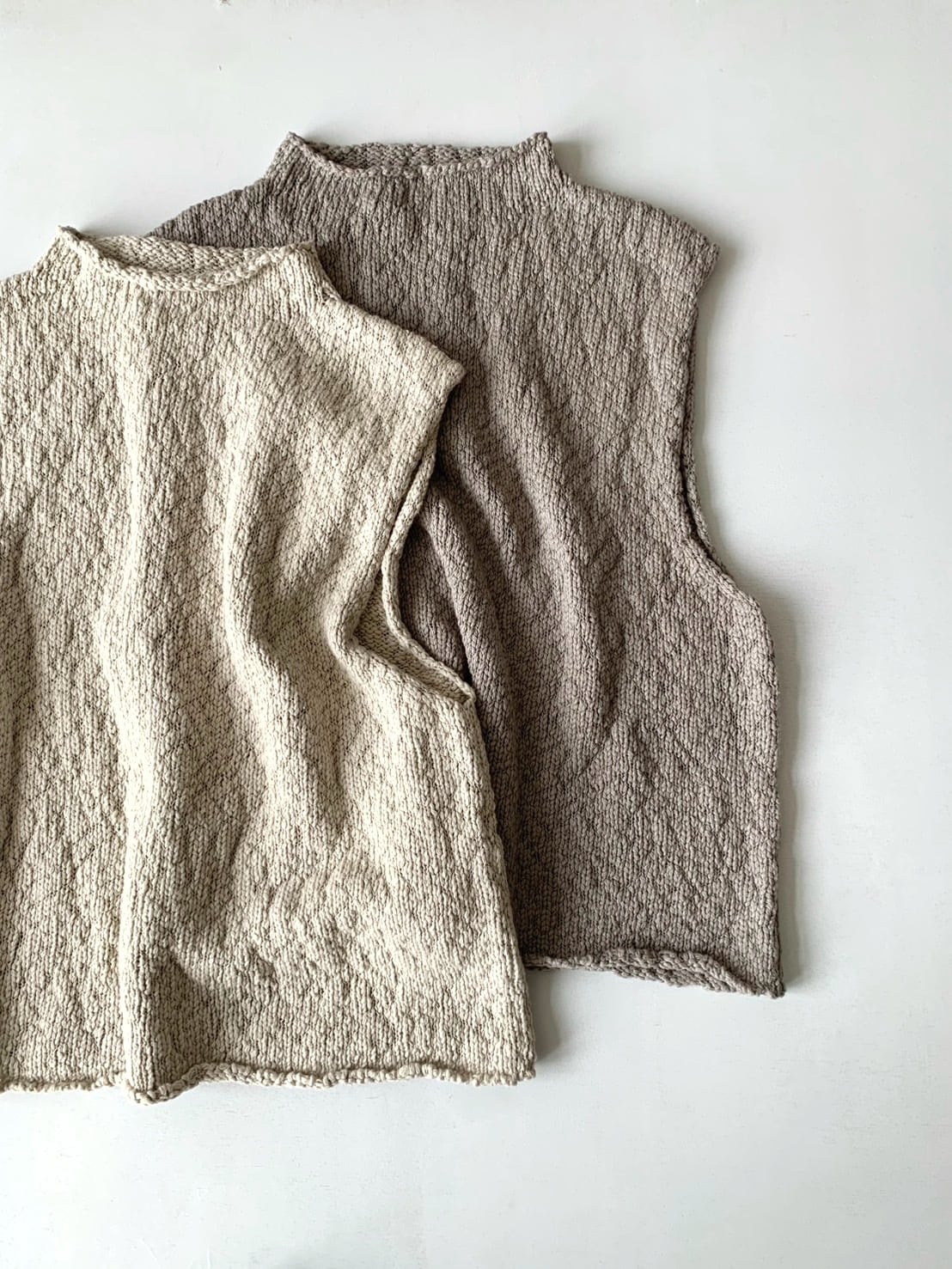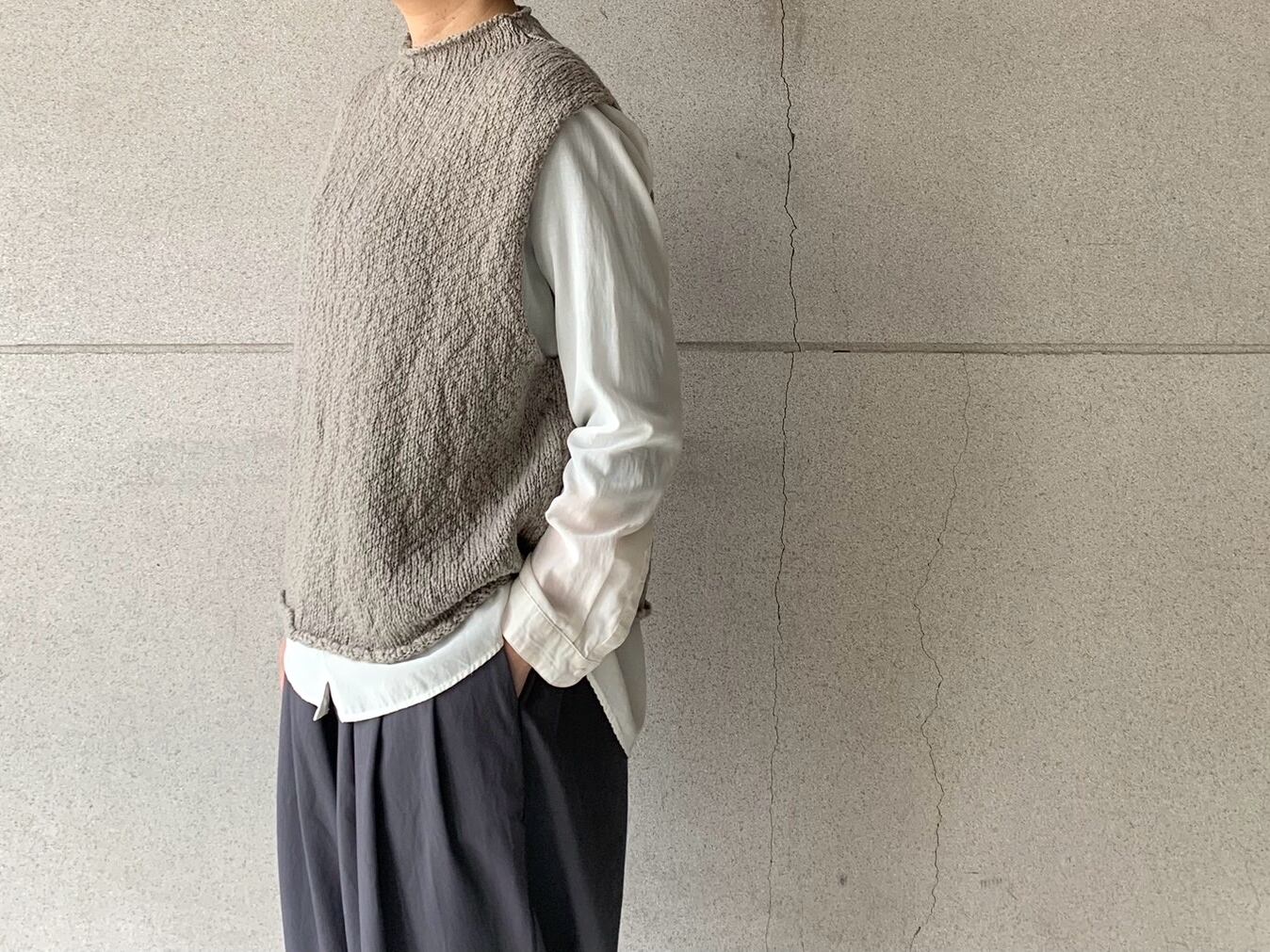 オーガニックコットンのふくらみのある糸を使用したショート丈のベスト。