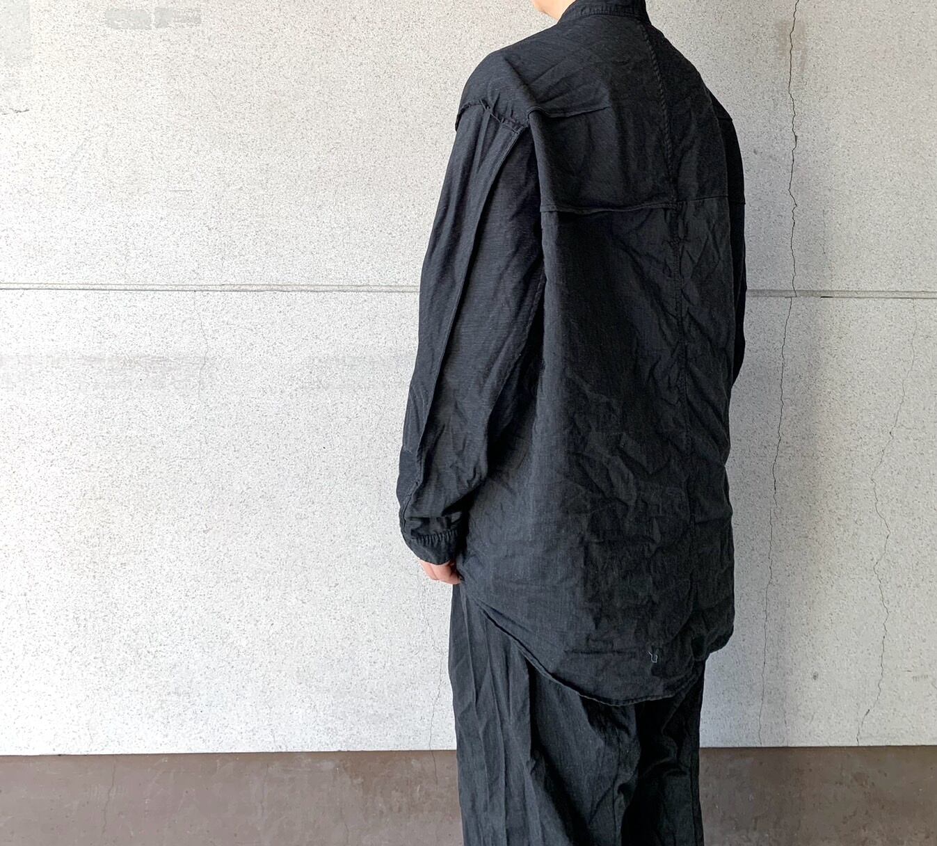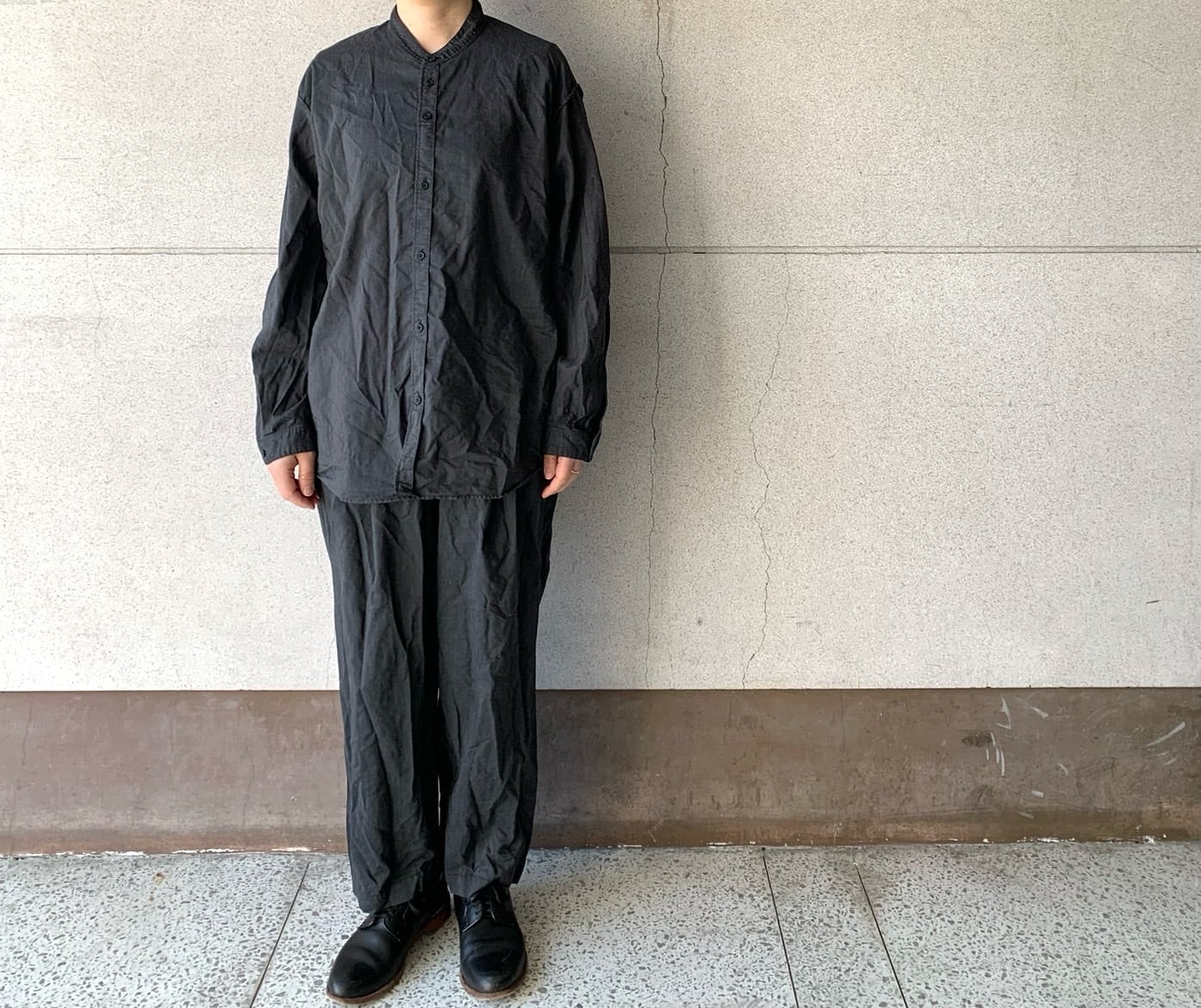 高密の生地に高圧高温で製品染めを施しているため、硬いシワ感が出ます。