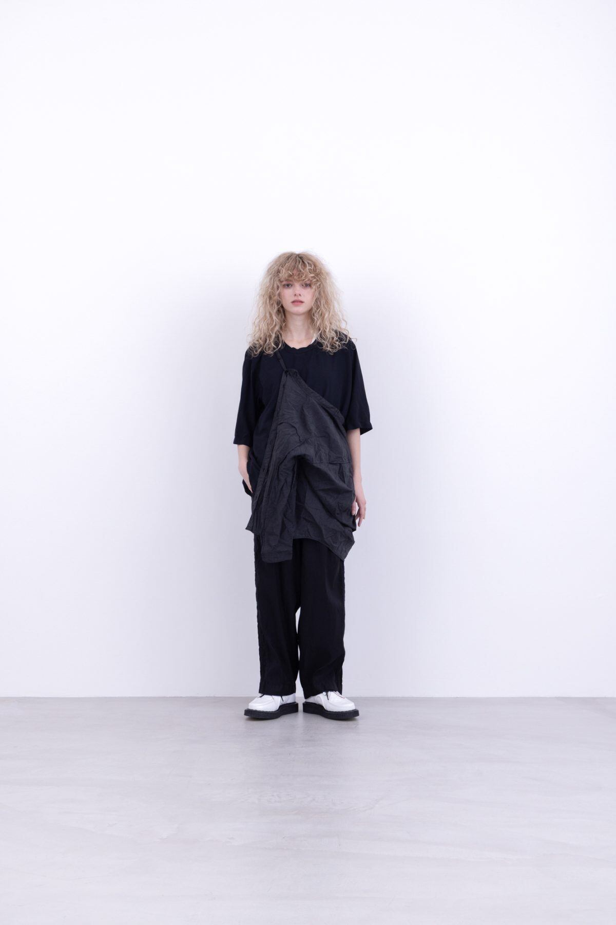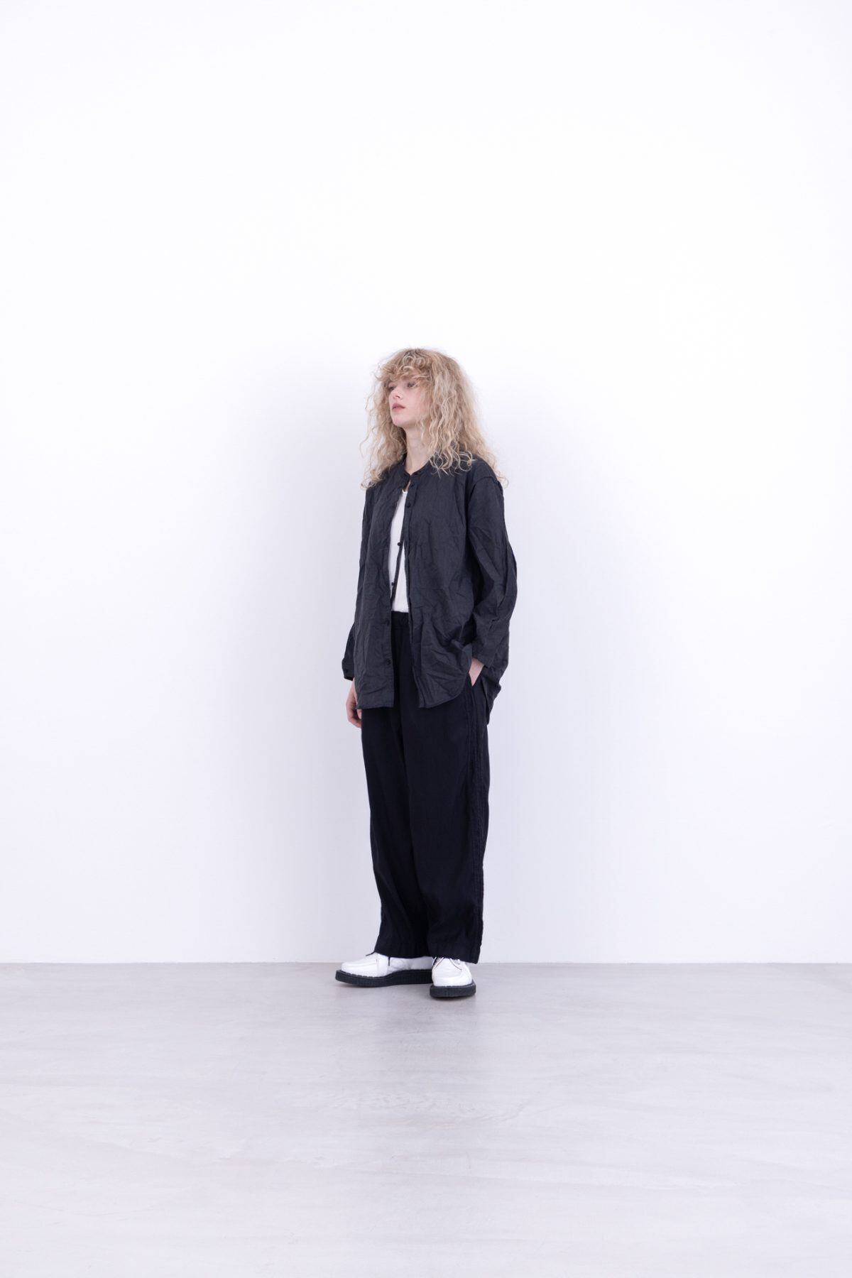 シワは染めの段階でついているため基本的にはアイロンをかけても取れにくく、逆に新しいシワもつきにくい生地です。