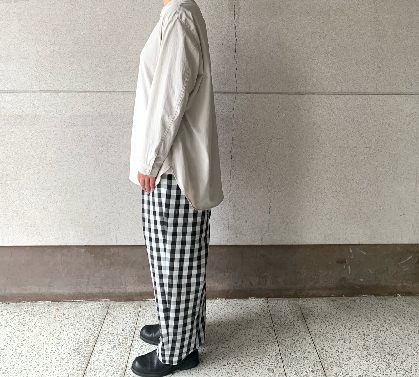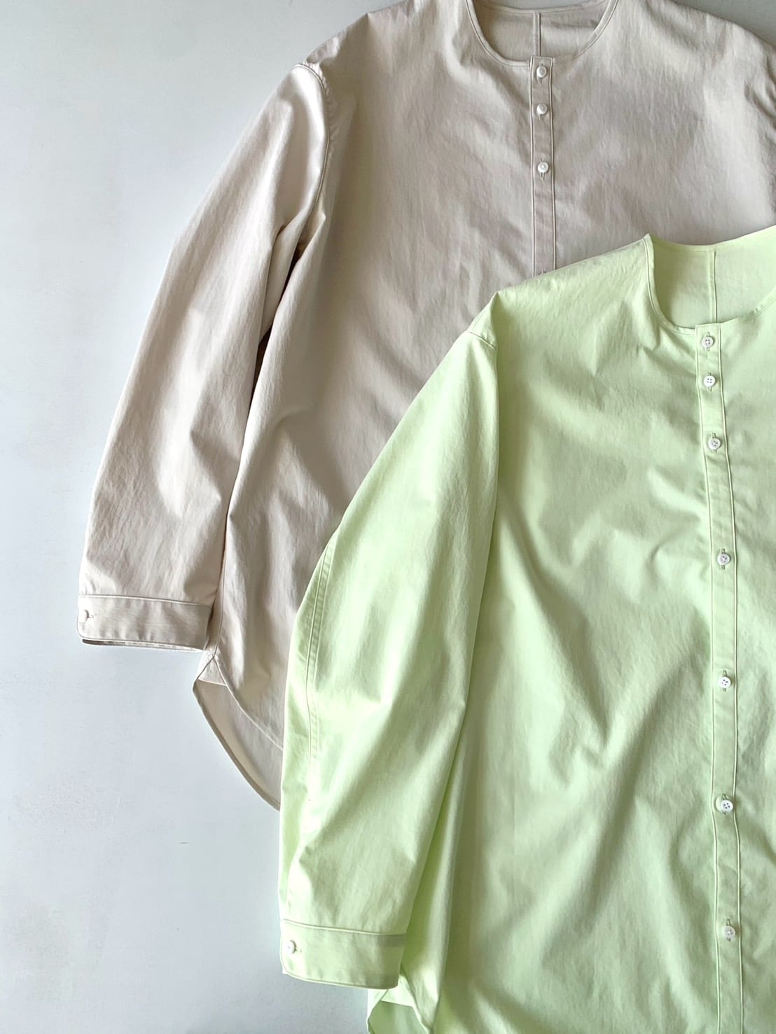 透けにくい糸を高密で織っているため、淡色でも透けにくく、またストレッチもよく効いているため、布帛仕立て・カットソー仕立てどちらでも対応できる生地。