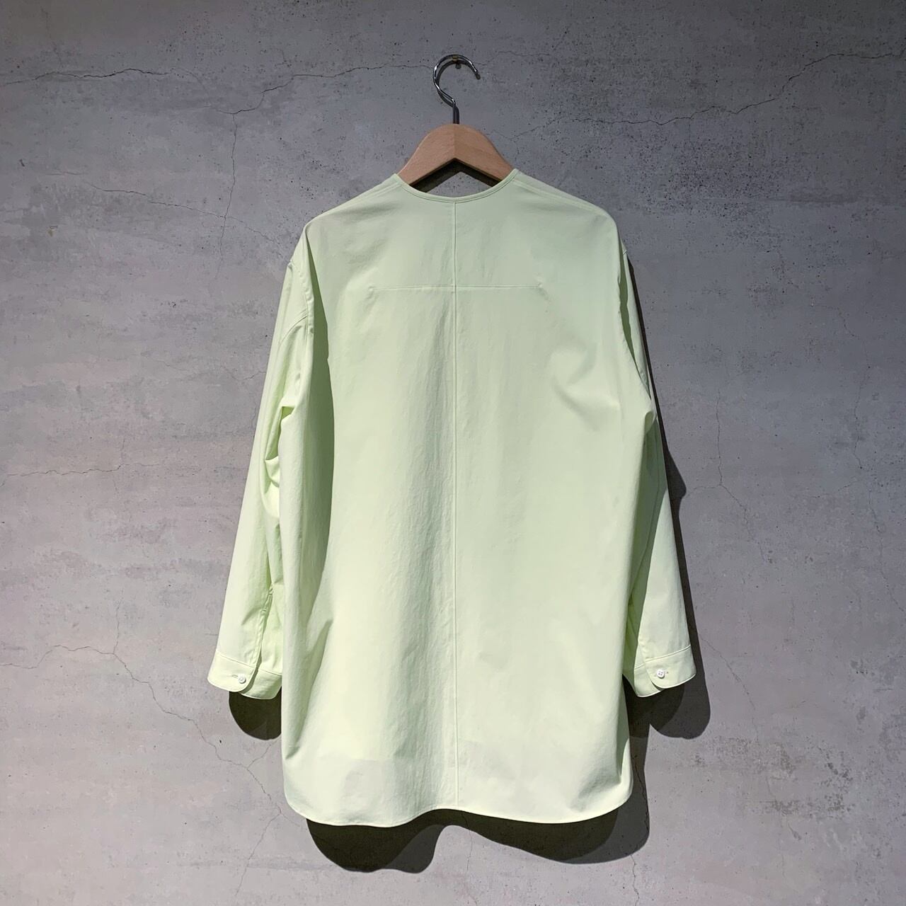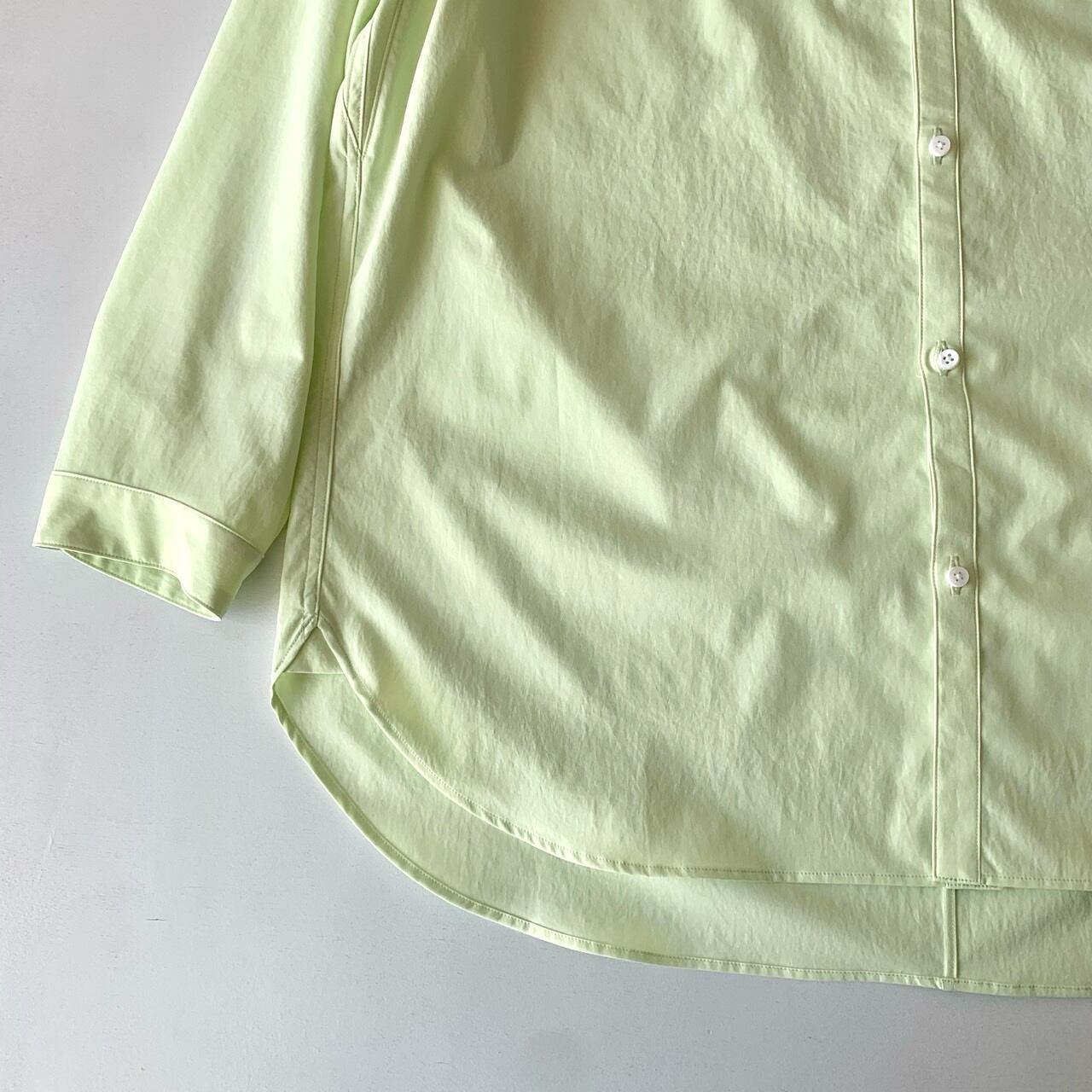 光沢のないストレッチ性のあるポリエステル糸の平織りタイプライター生地を使用したシャツ。