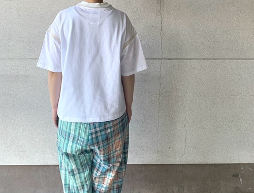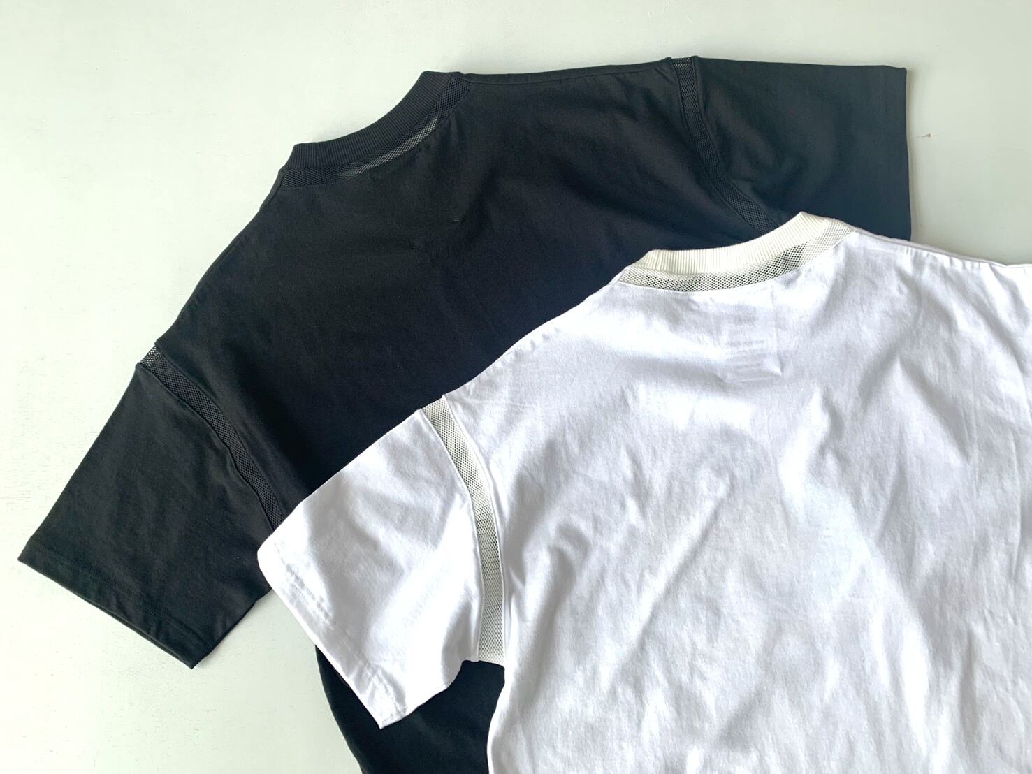 後ろ襟下と脇部分にメッシュ素材を挟むことで日本古来の夏の作業着、作務衣のような通気性を確保。昨今の猛暑に負けないような熱のこもらない最高の1枚に。