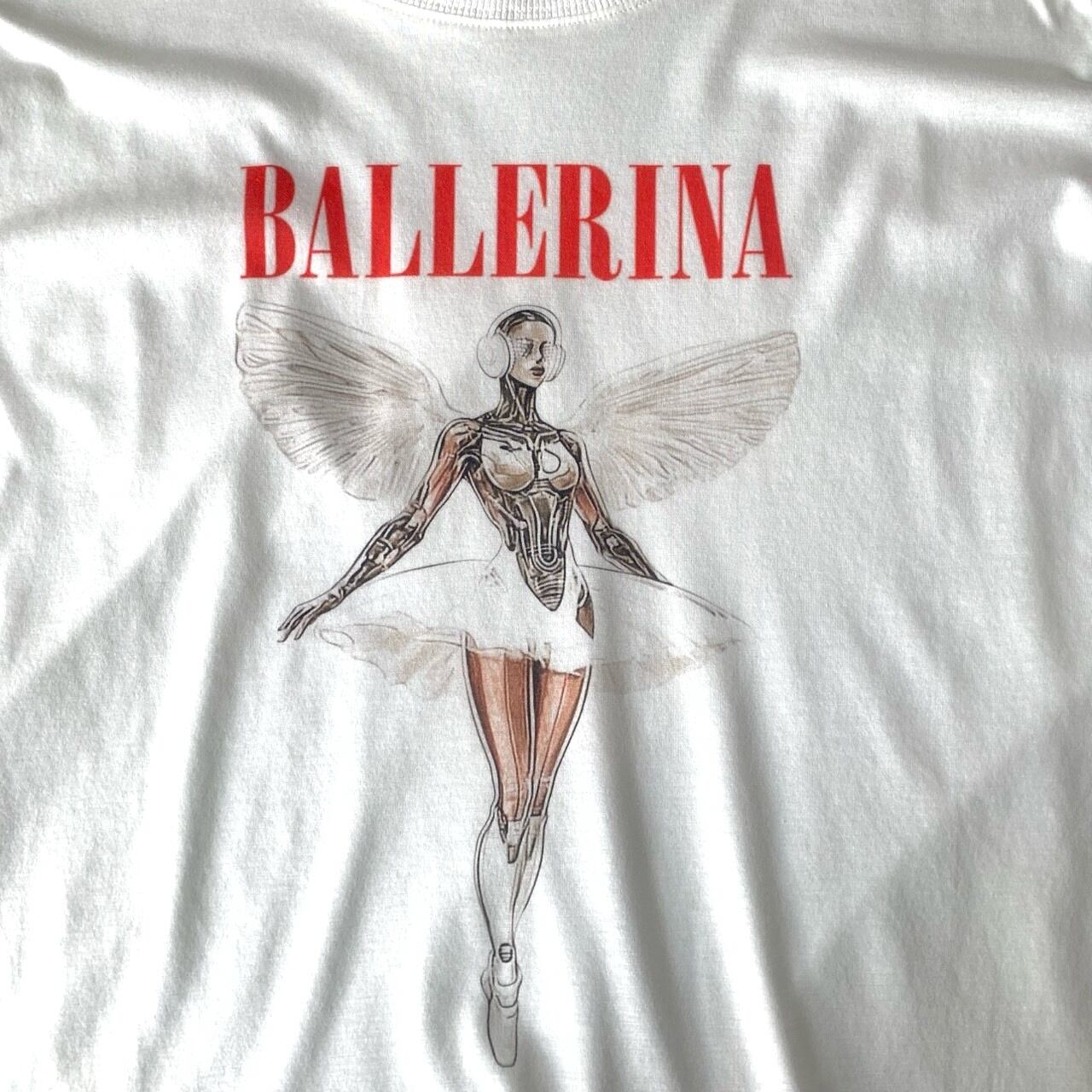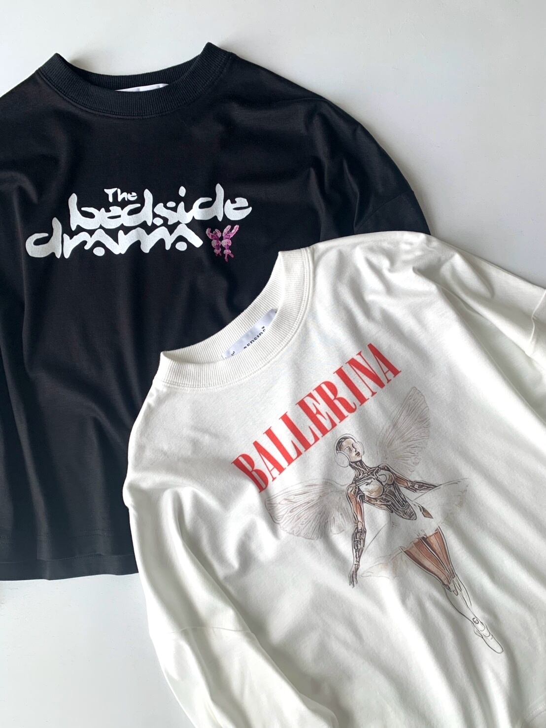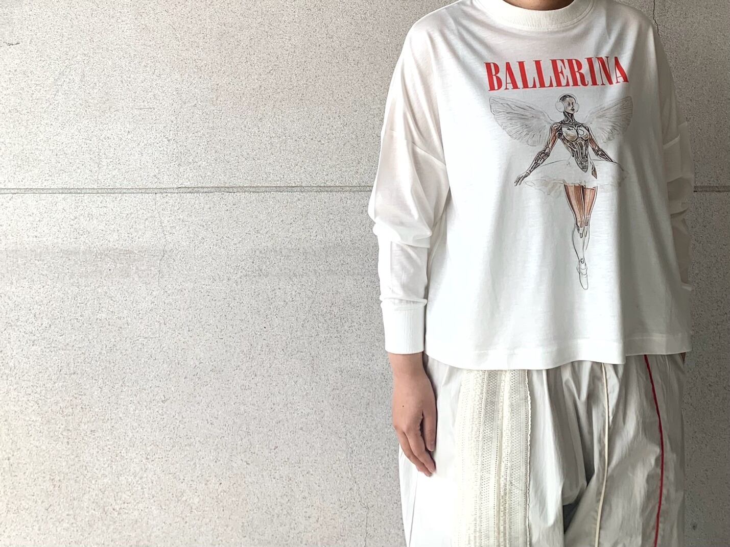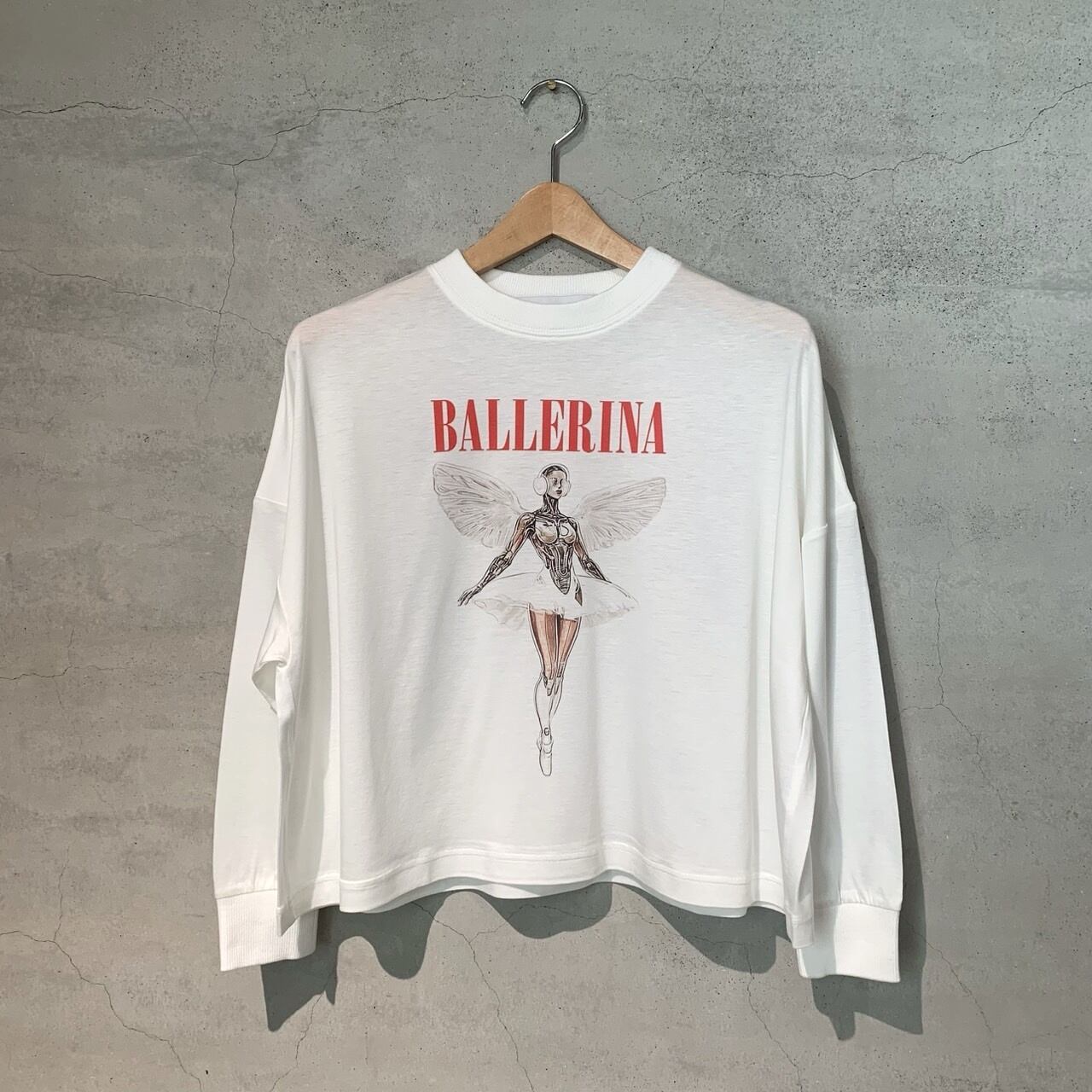 どこかで見覚えのあるような天使風近未来アンドロイドプリマドンナがスタイリッシュなL/S プリントTee。