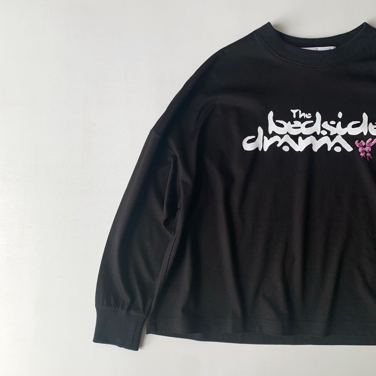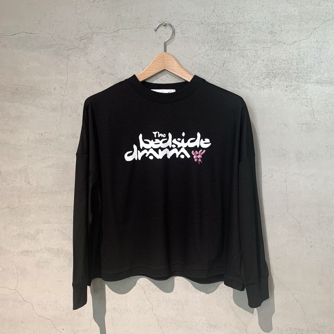 どこか既視感のあるような雰囲気のあるロゴマークと舞い踊るピンクのキャラクターたちが印象的なL/S Tee。