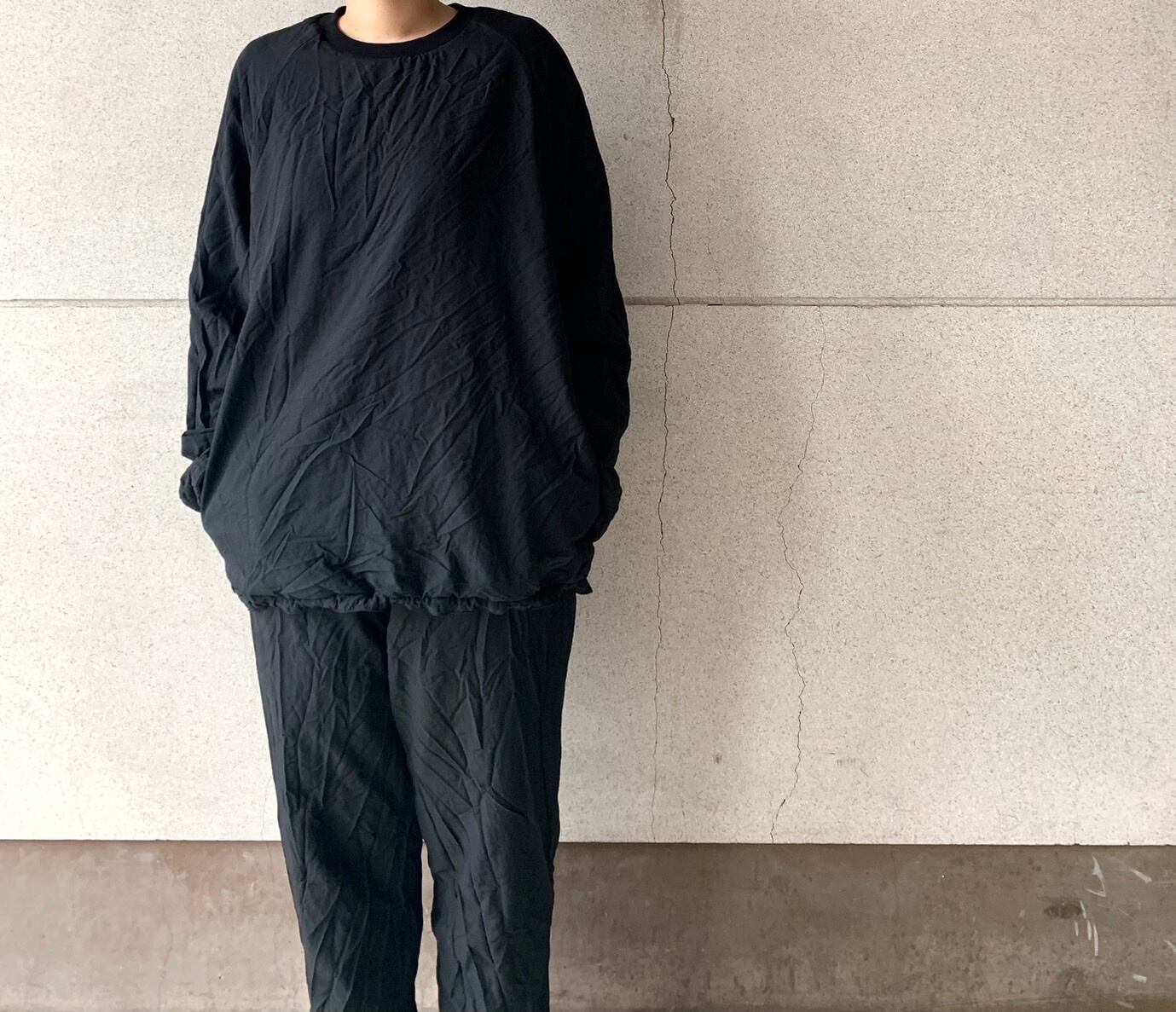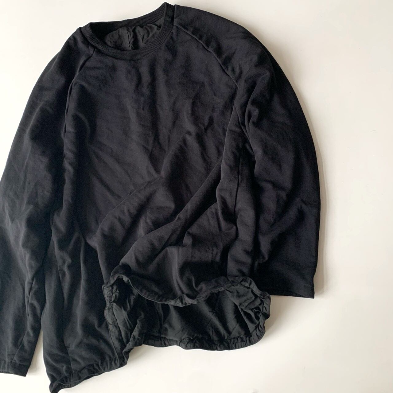リバーシブル仕立てのラグランスリーブプルオーバー。