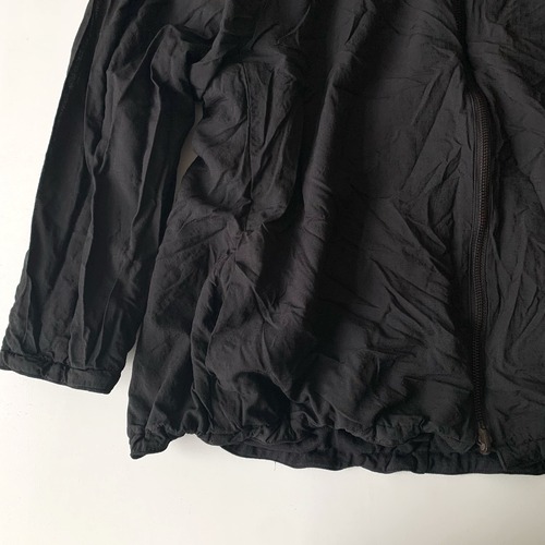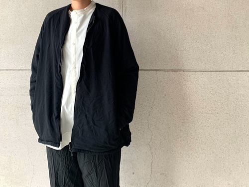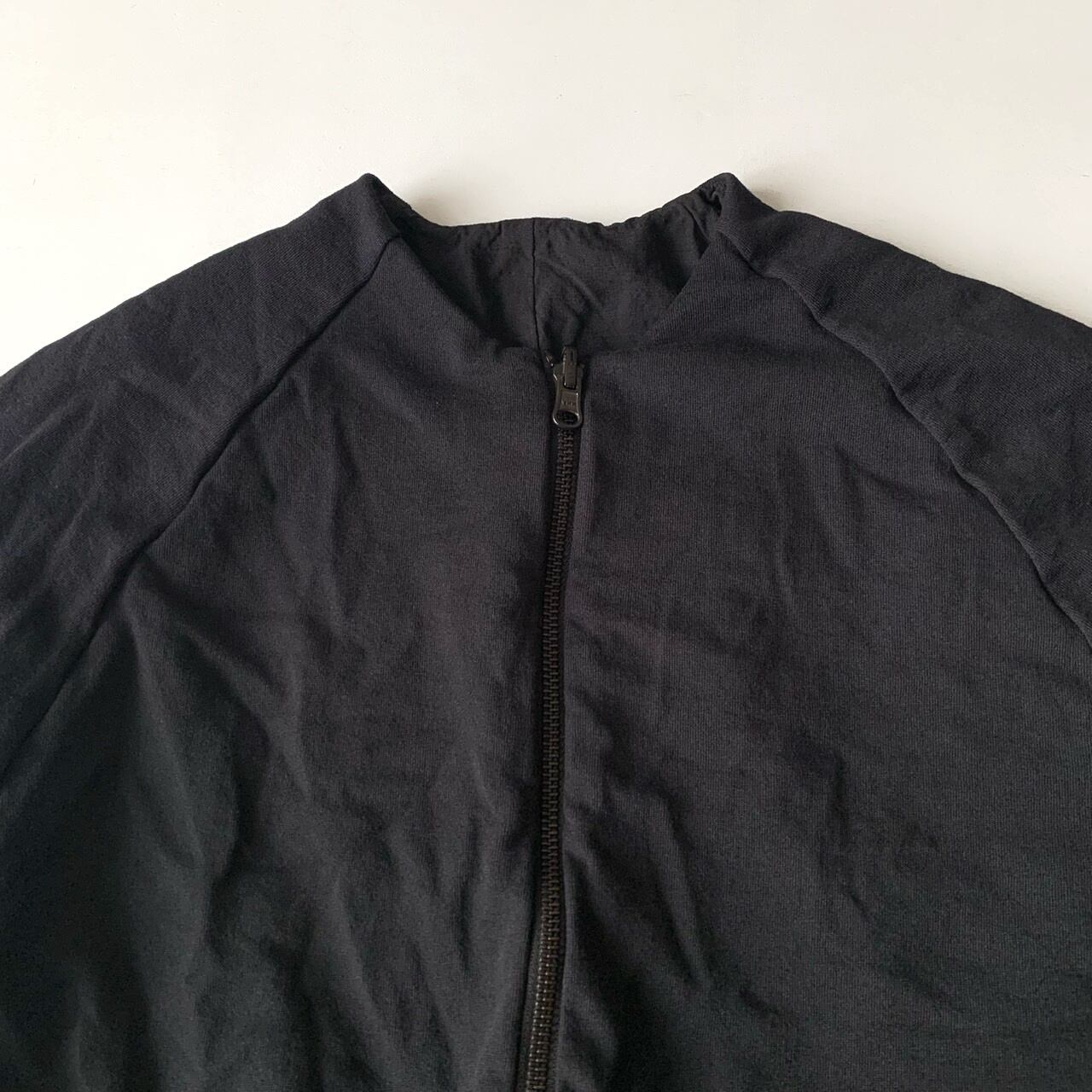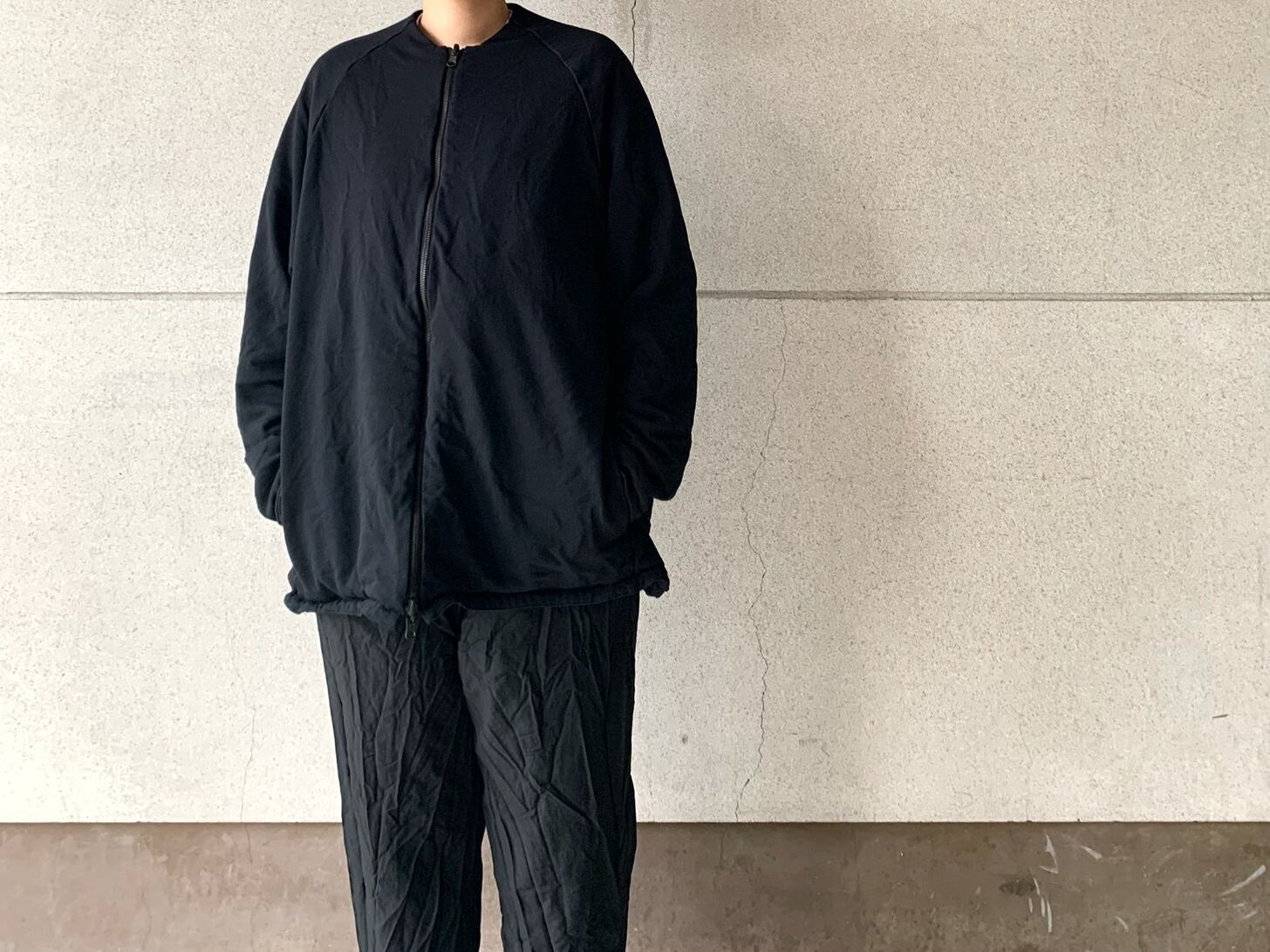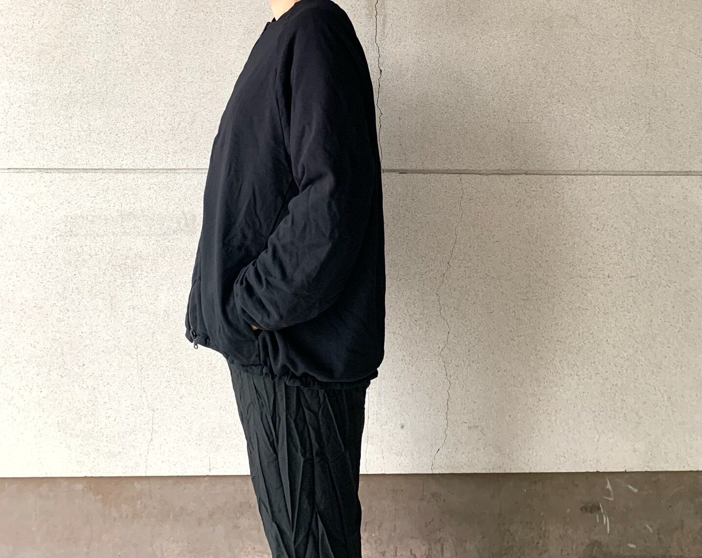 スパンポリエステル糸で編んだ裏毛組織のカットソー生地と裏側にはポリエステルライトタフタを配して、製品後にポリエステル染めを施しています。