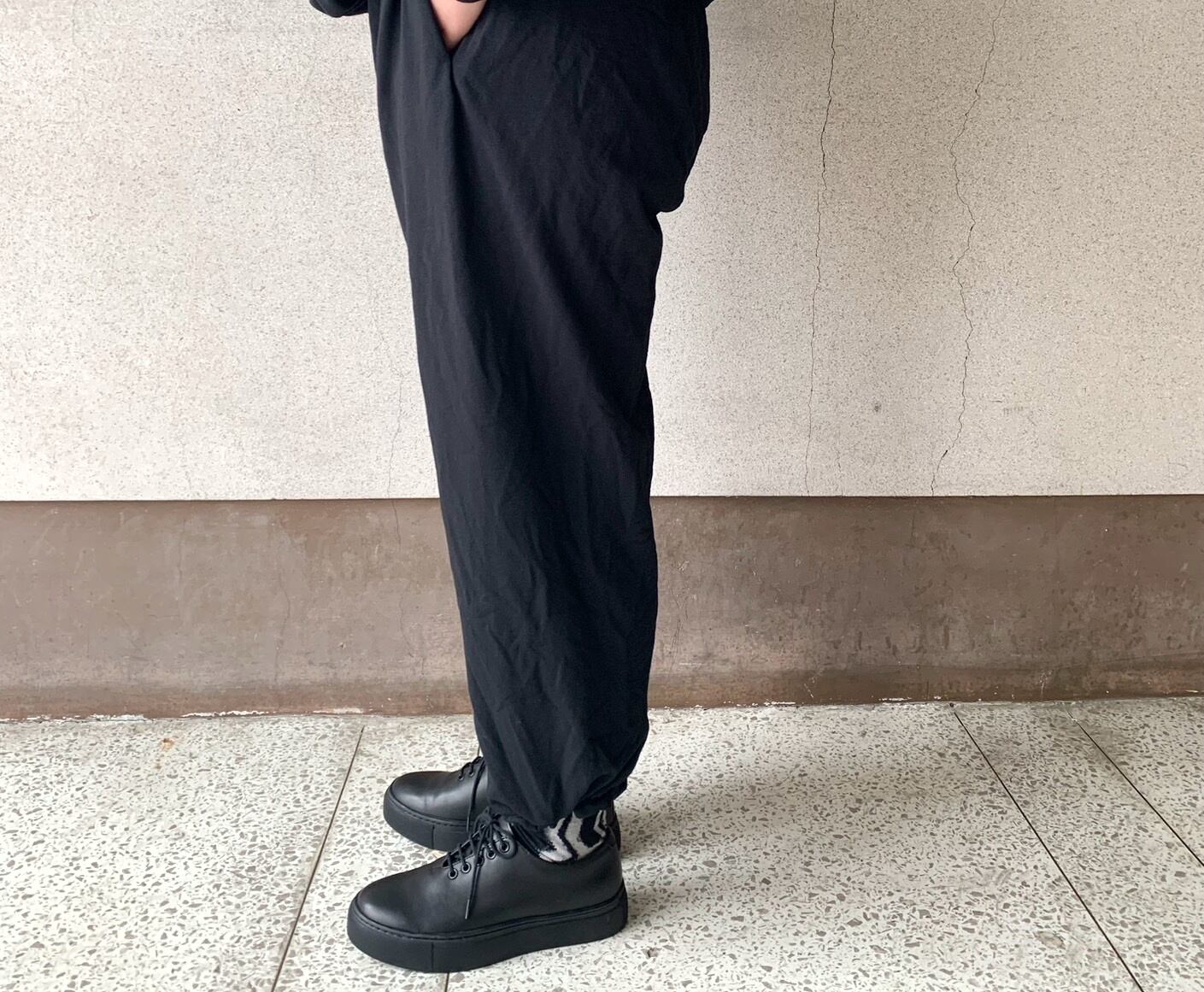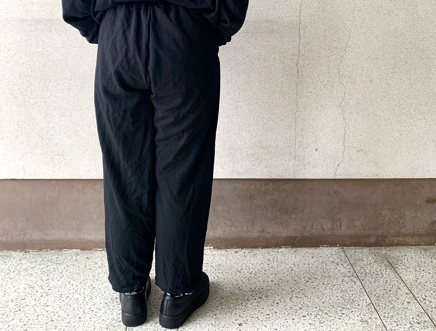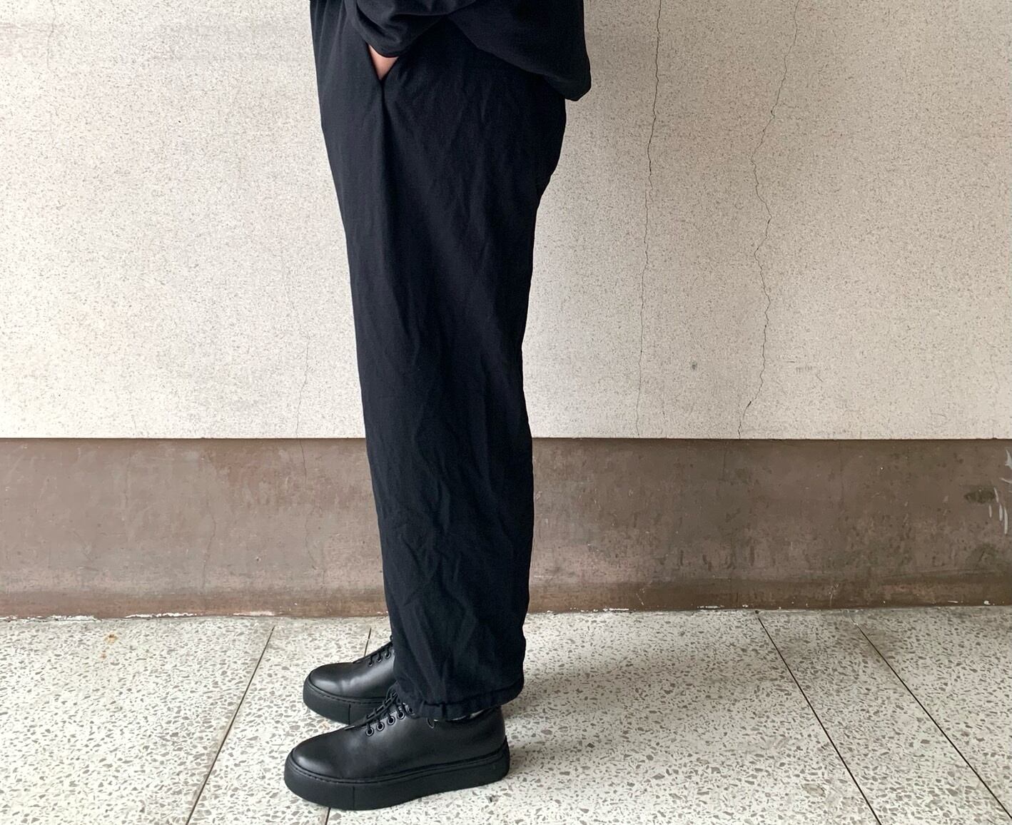 脇ハギが無いことでパンツの筒感が強調されスッキリとしたシルエットに。
