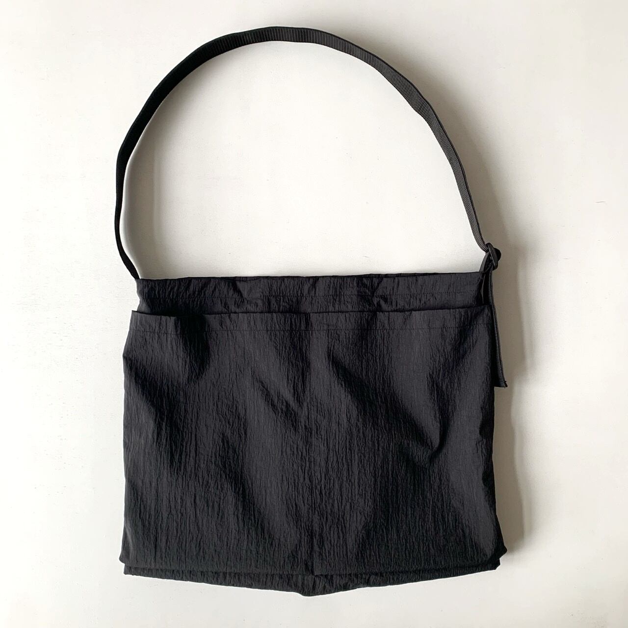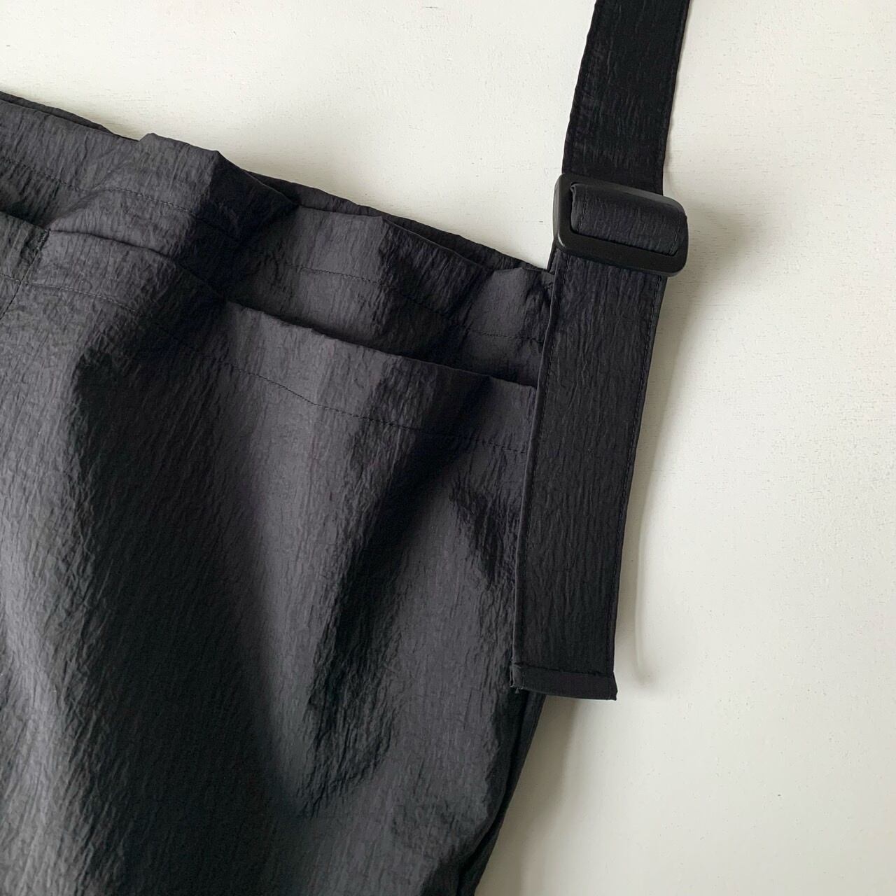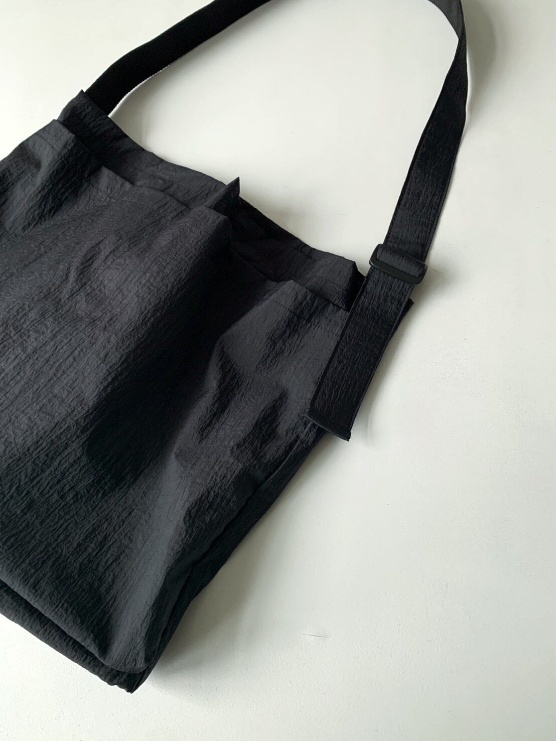 70Dナイロン糸を使った、ハリ感としなやかな風合い、弱撥水性を兼ね揃えたタフタ生地に塩縮加工を施し、シワ感=シュリンク感のあるマットで落ち着いた表情に仕上げています。