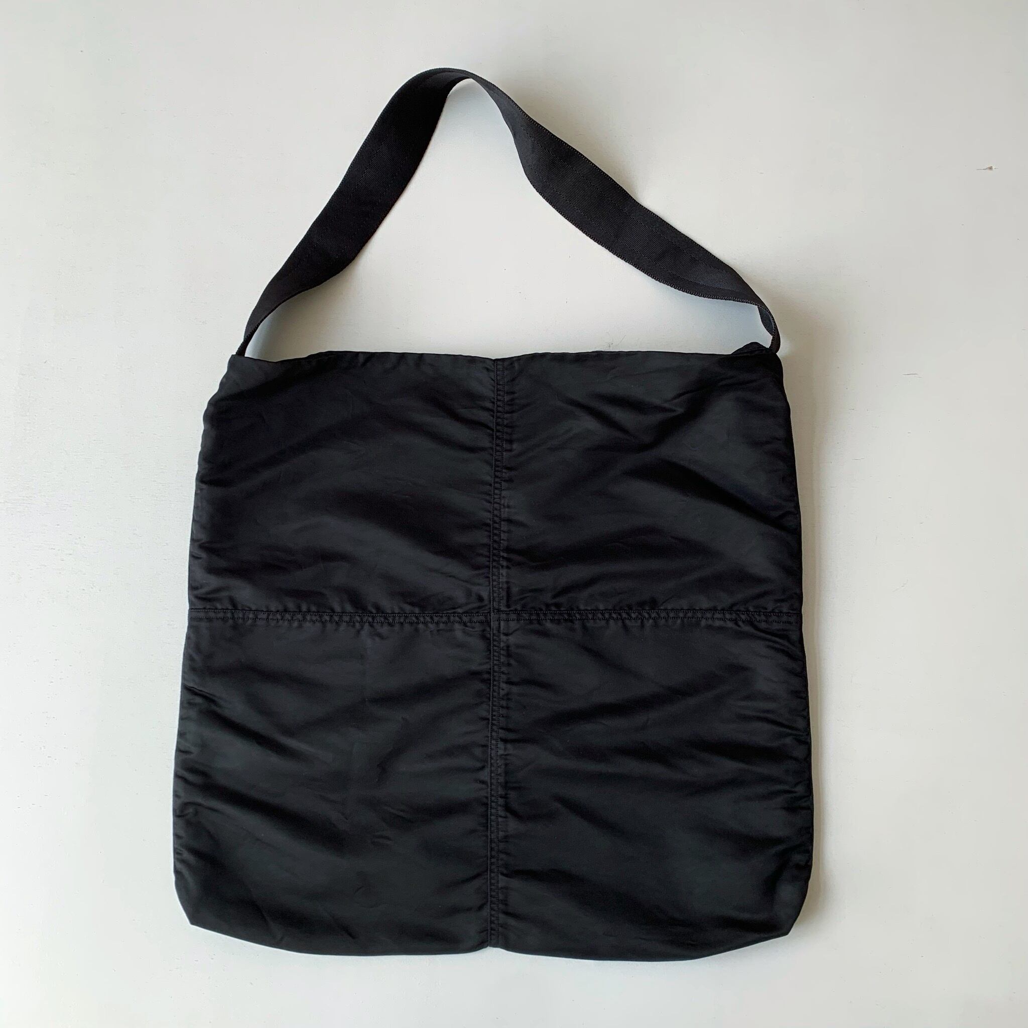 タテ糸方向に13%以上の縮率が出る高密度に織られたナイロンツイル生地を使用したトートバッグ。