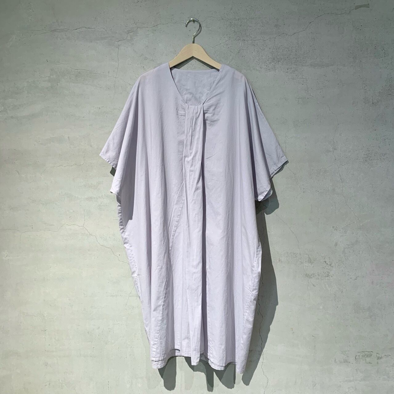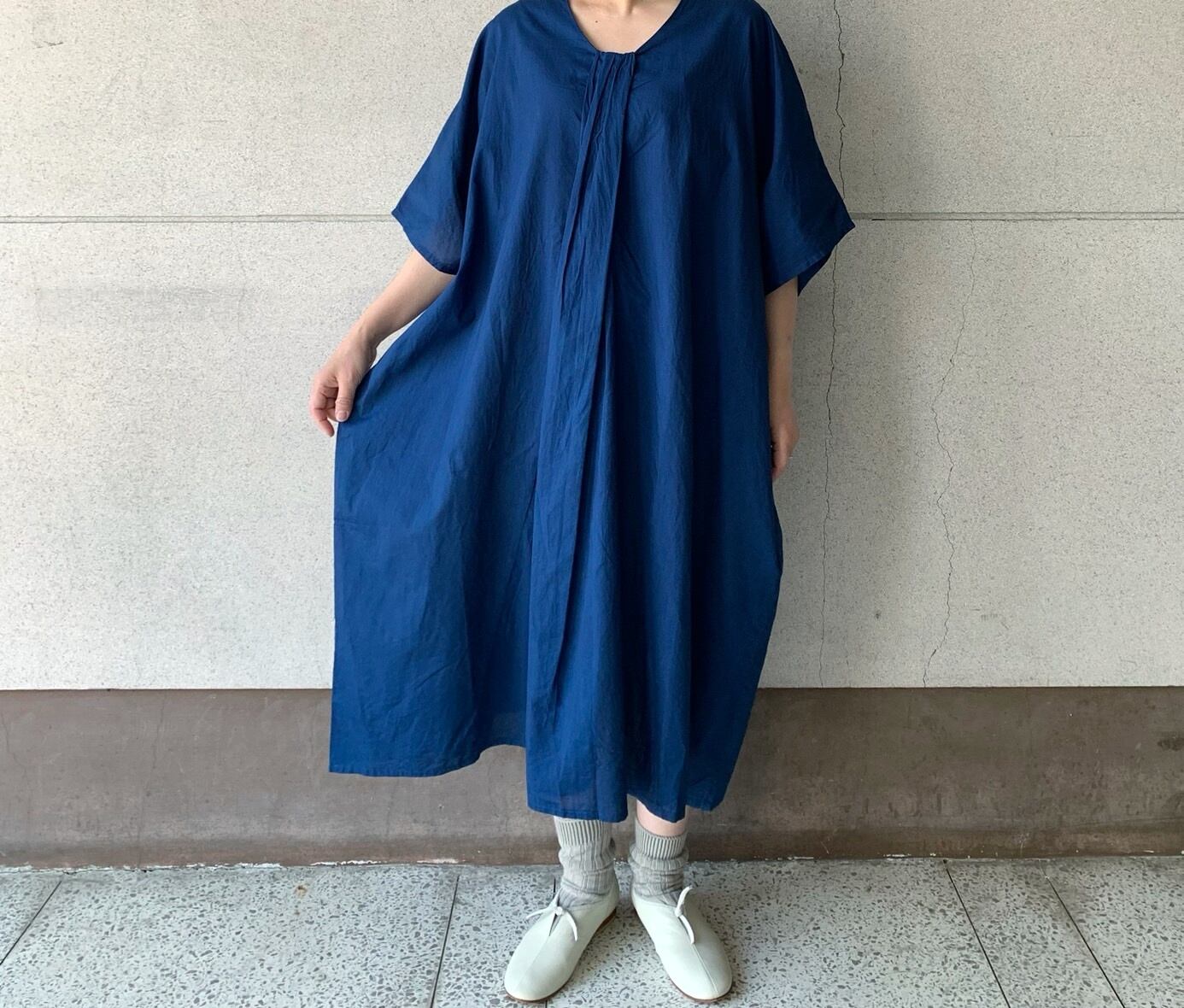 フロントのドレープが美しいドルマンスリーブのサマードレス。