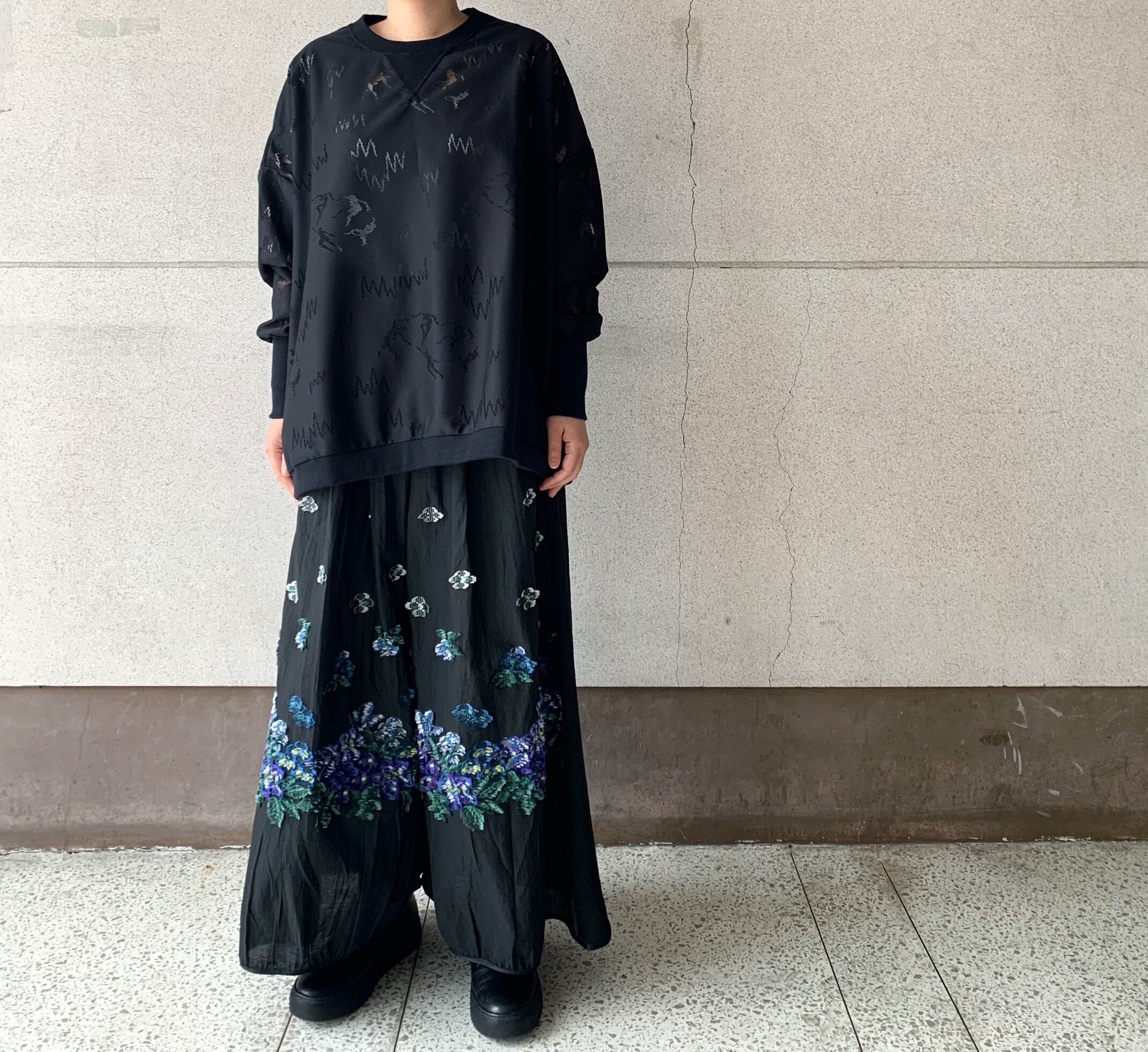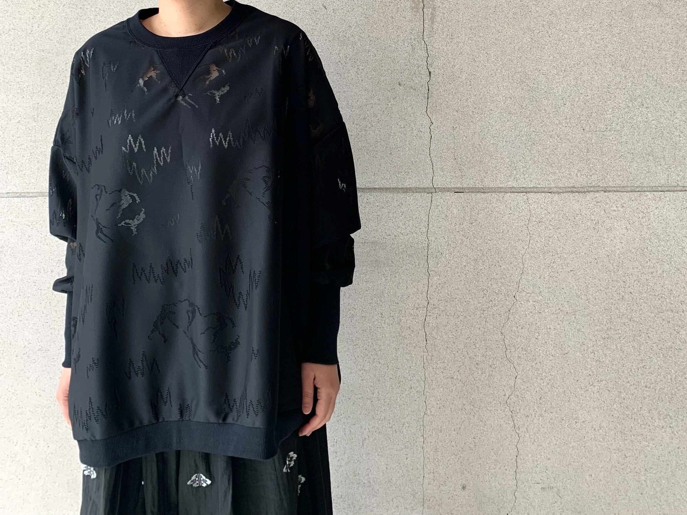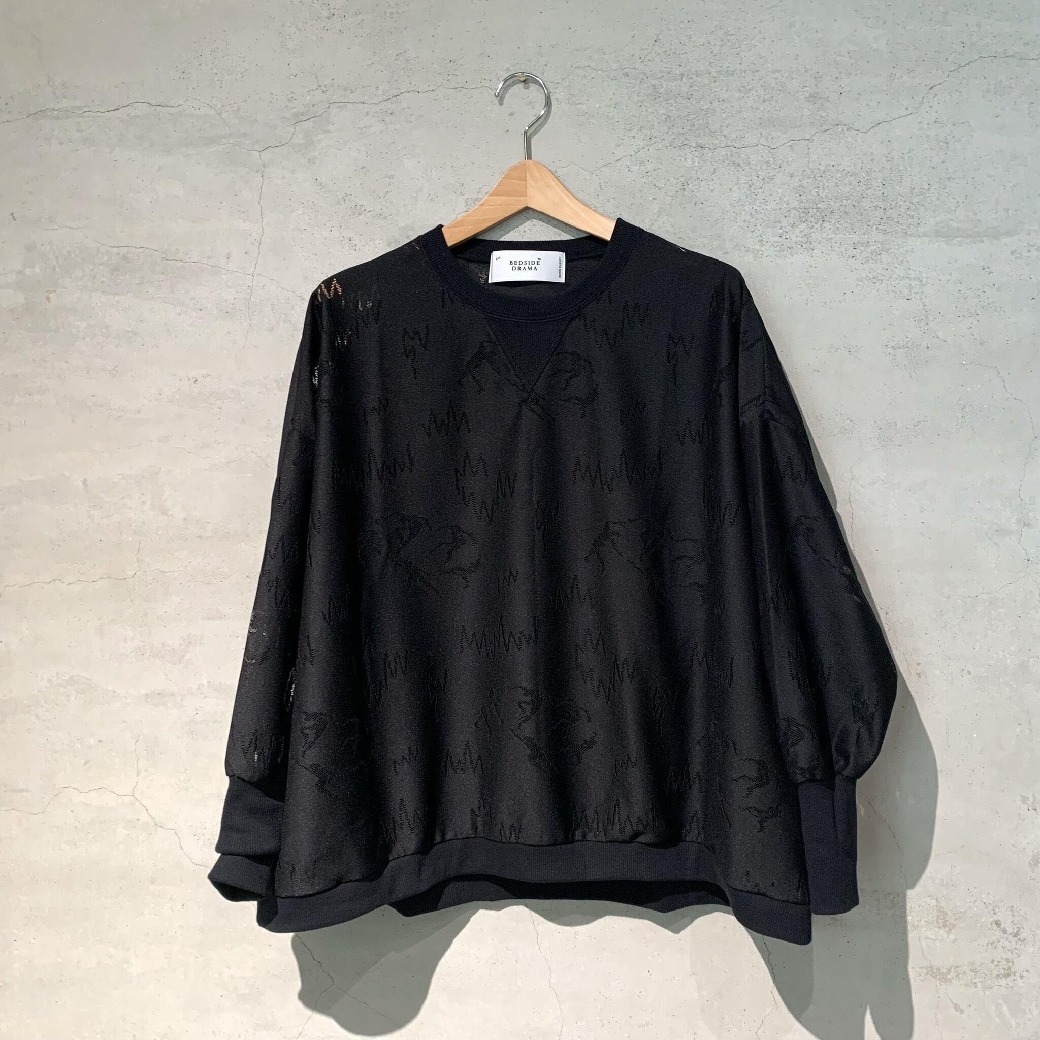 過去と現在がクロスオーバーしたようなデザインのオリジナルのレース素材を使用したワイドシルエットのプルオーバー。