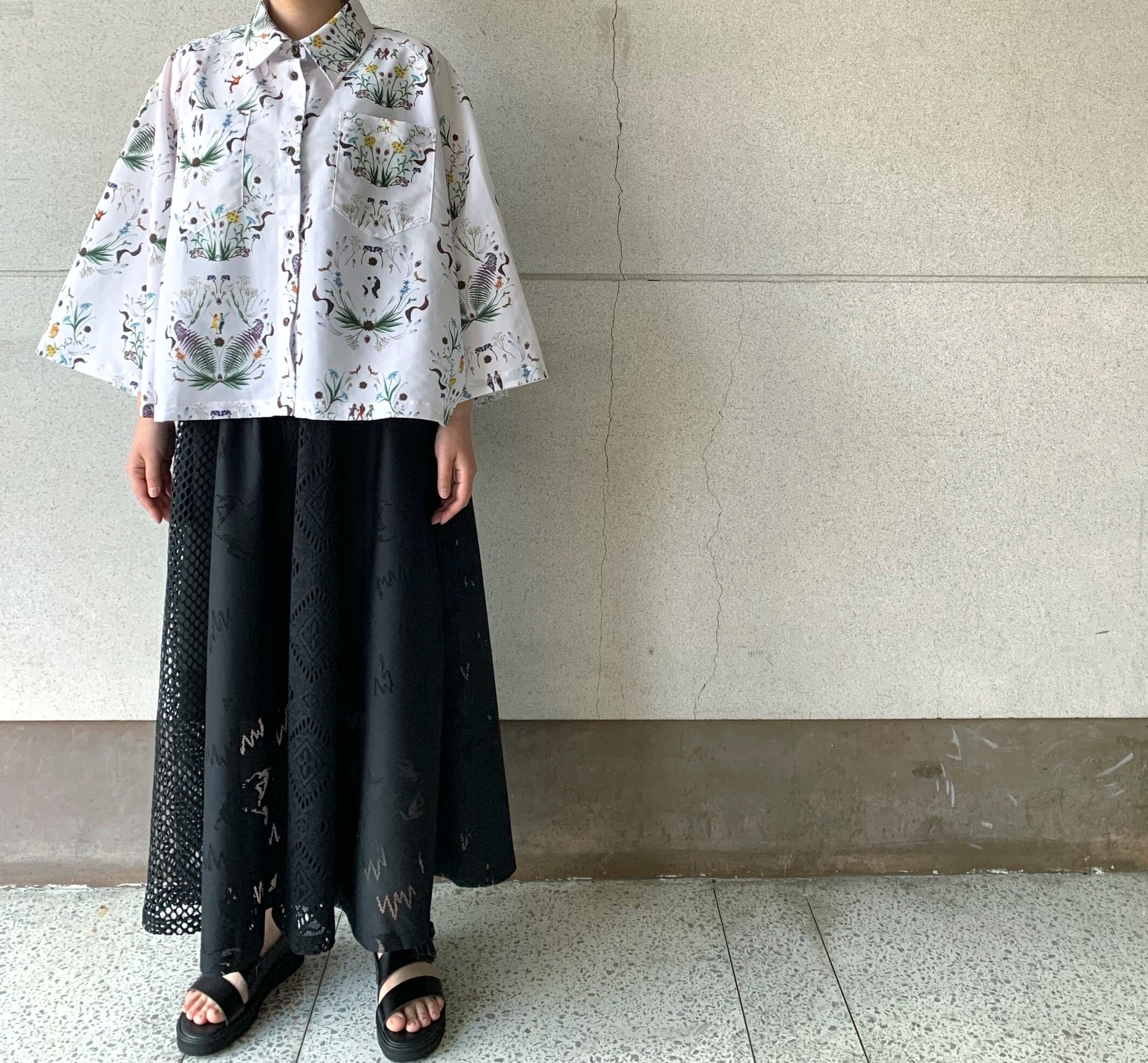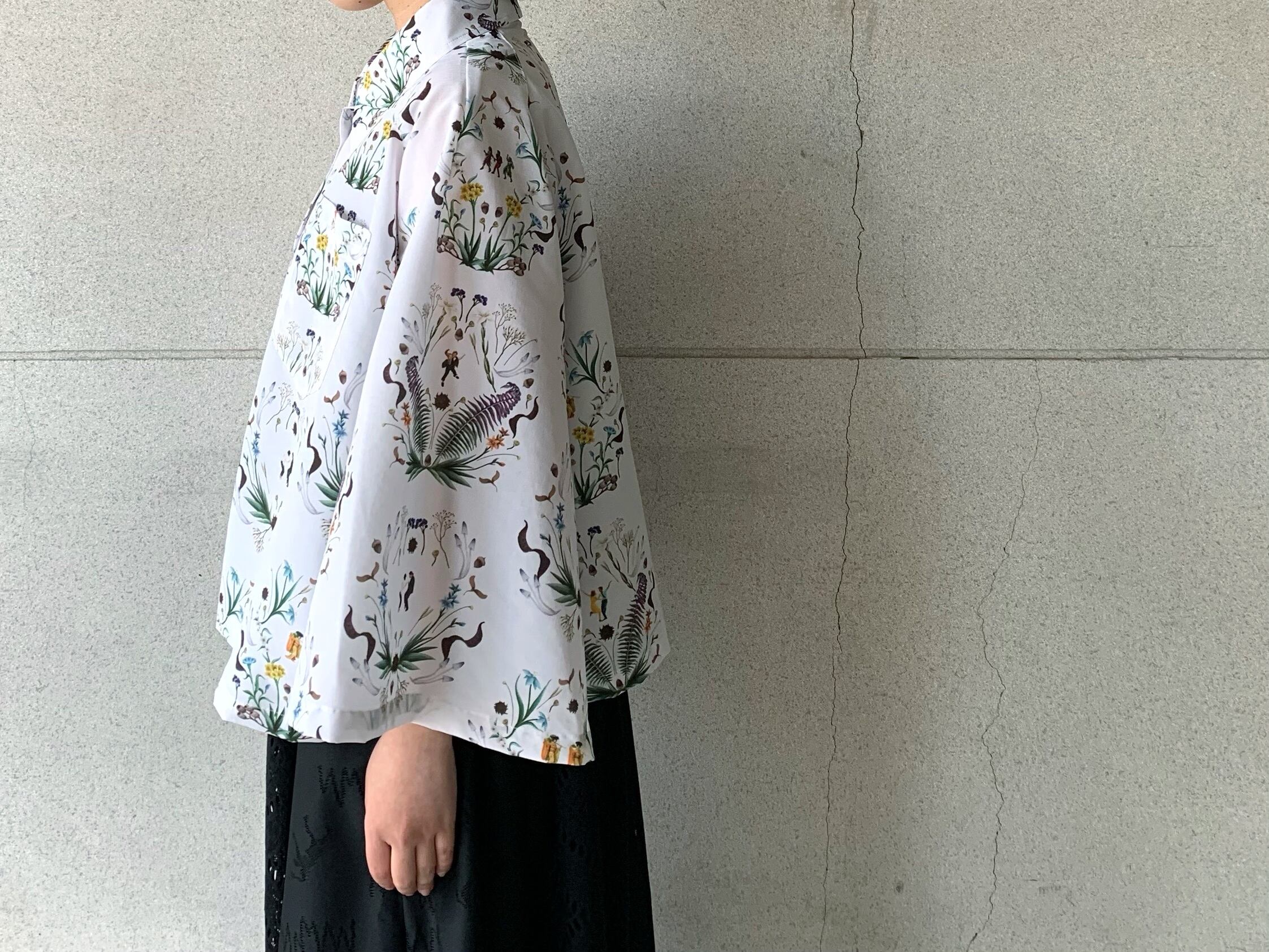 古今東西のダンスの名シーンを集結させたオリジナルのテキスタイルが魅力的なケープシャツ。