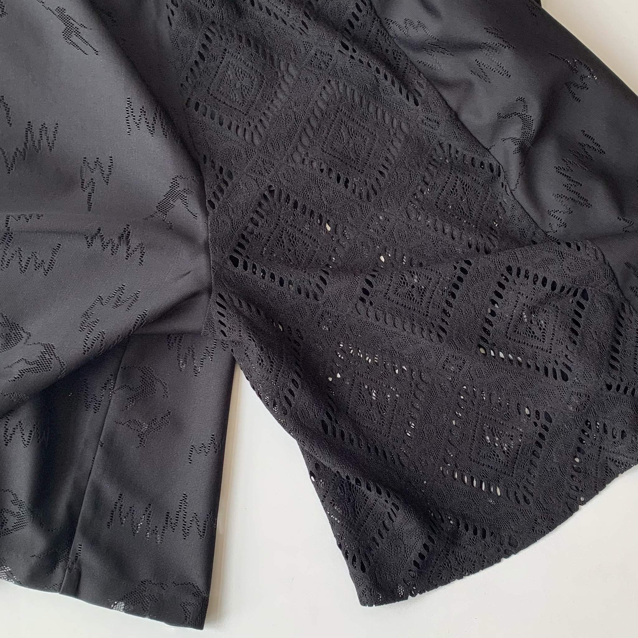 過去と現在がクロスオーバーしたようなデザインのオリジナルのレース素材と異素材レースを組み合わせました。