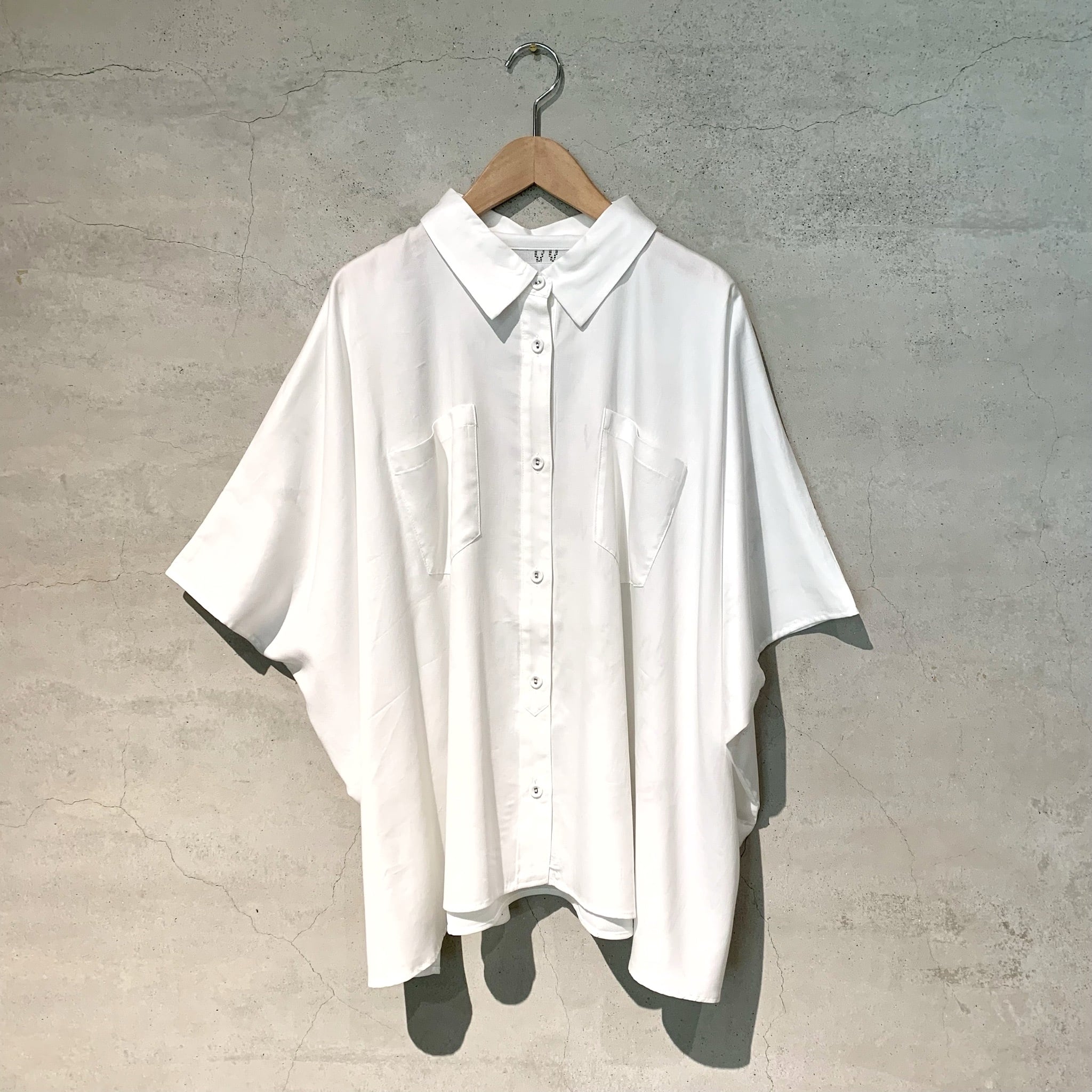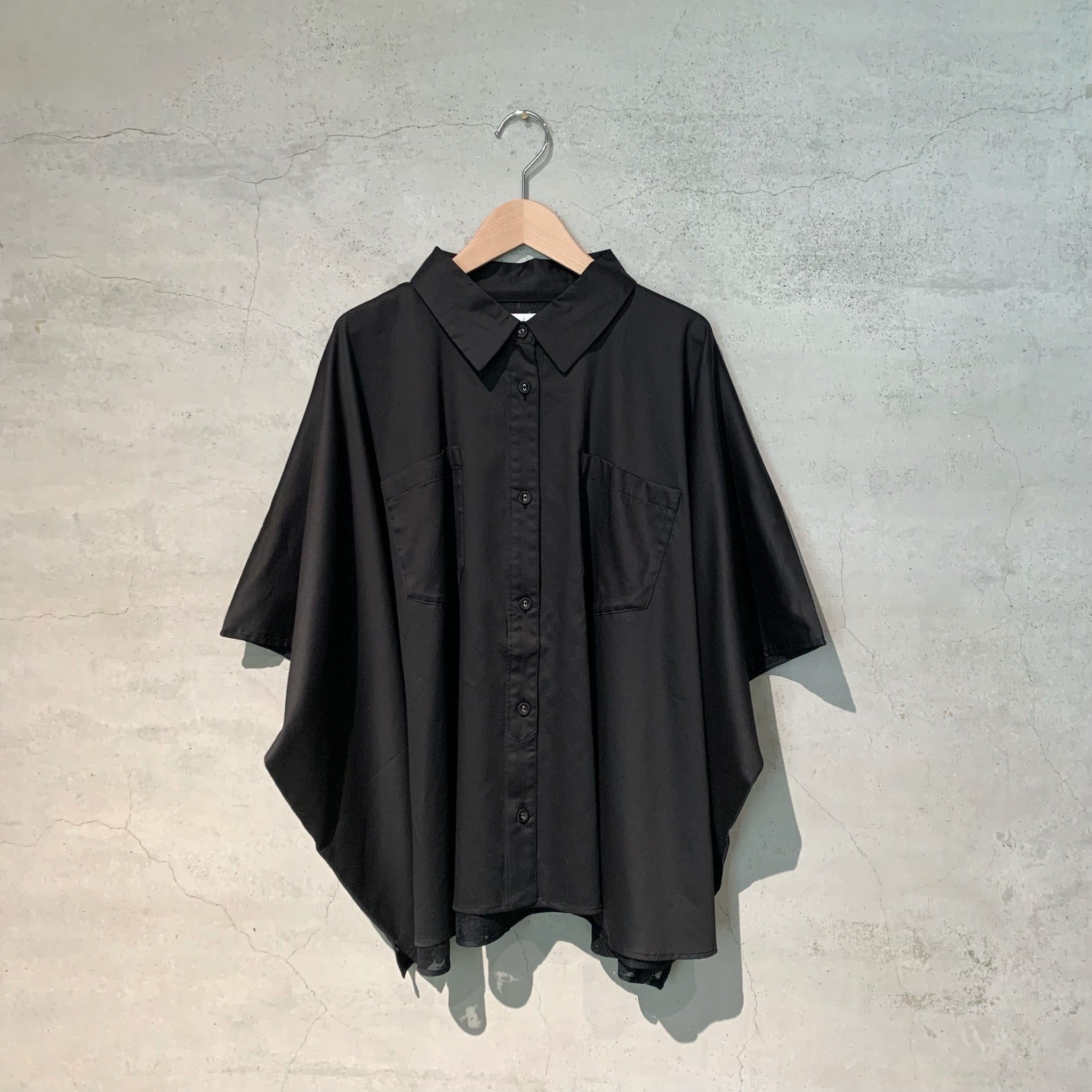 そちらを背中側に贅沢に使用した羽衣のようなポンチョシャツです。