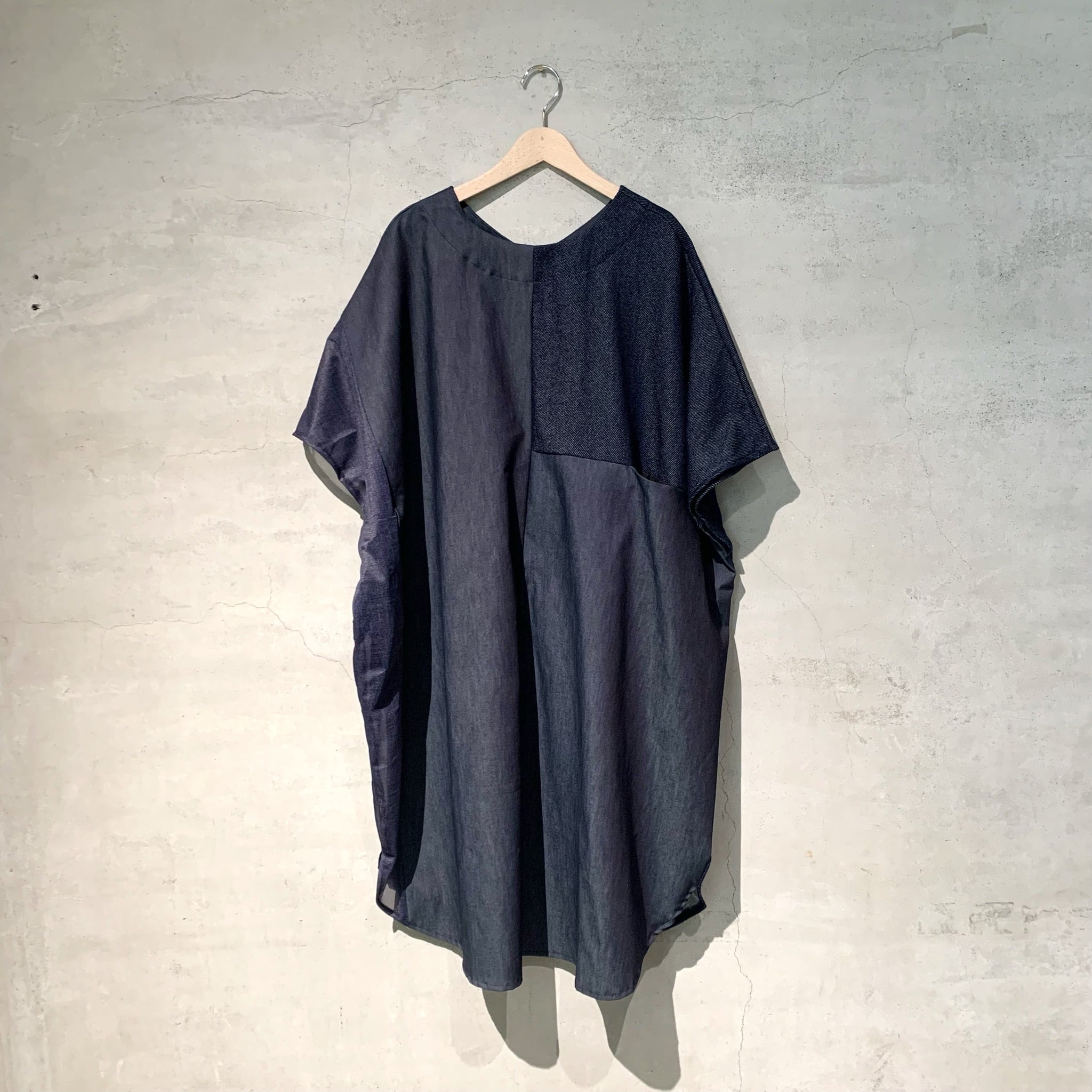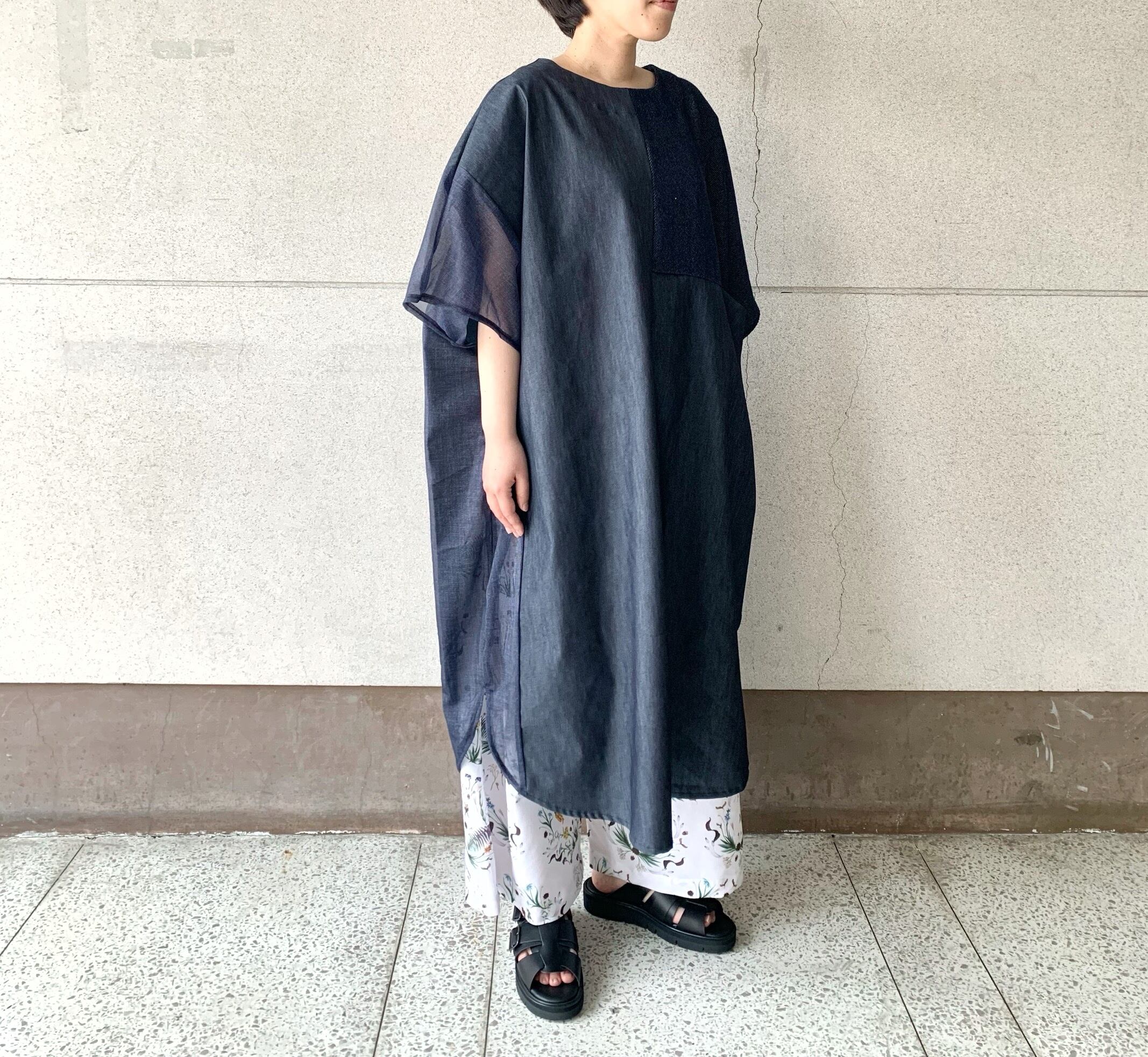 絶妙な切り替えが印象的なビッグシルエットのワンピース。