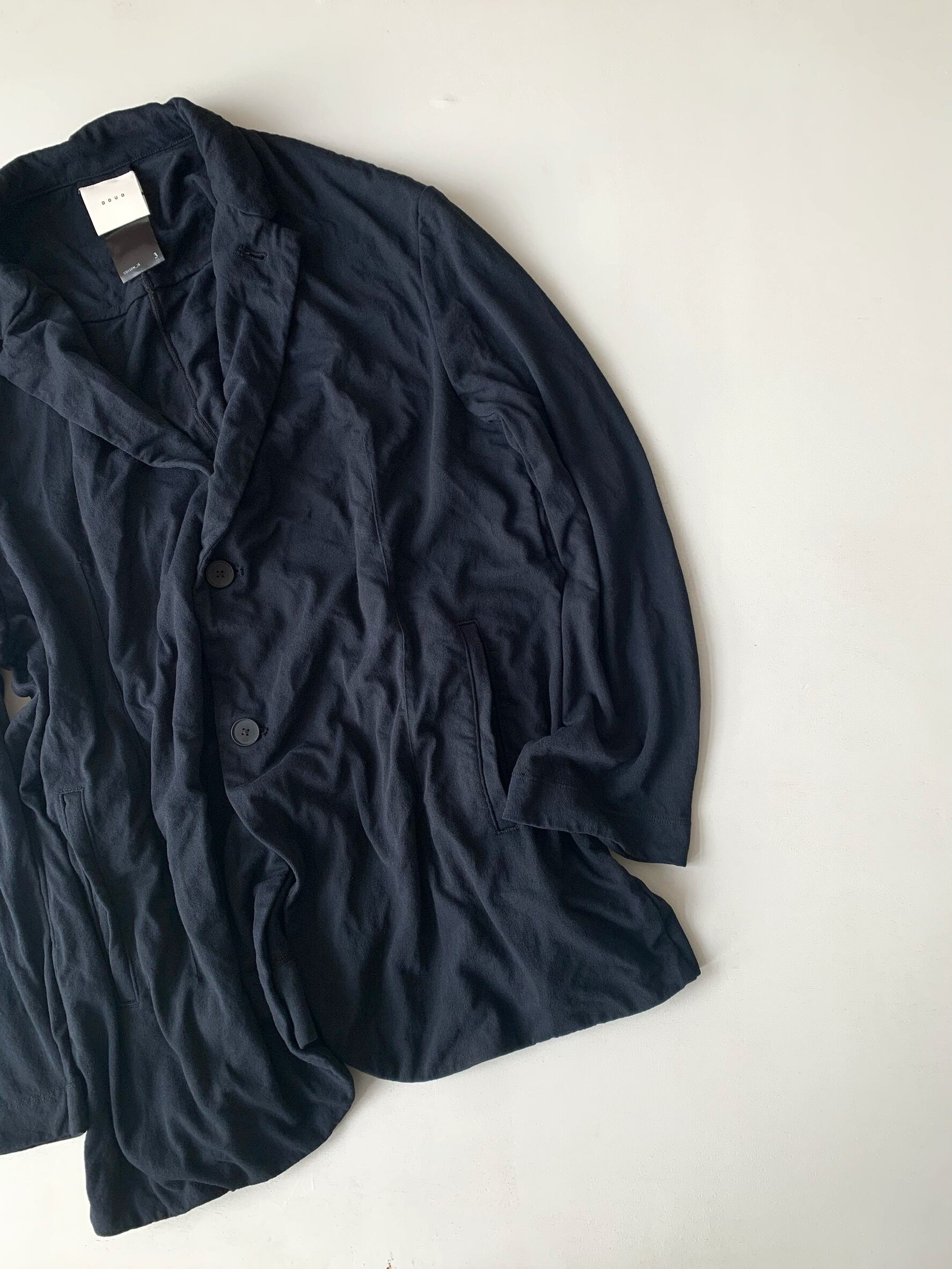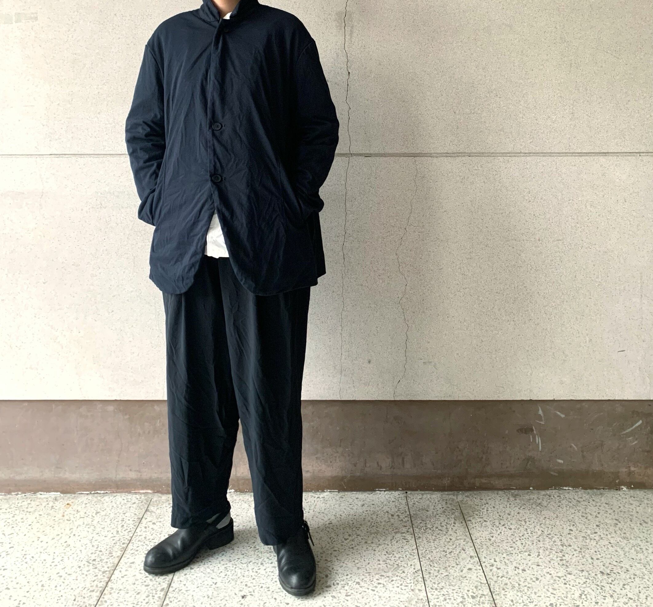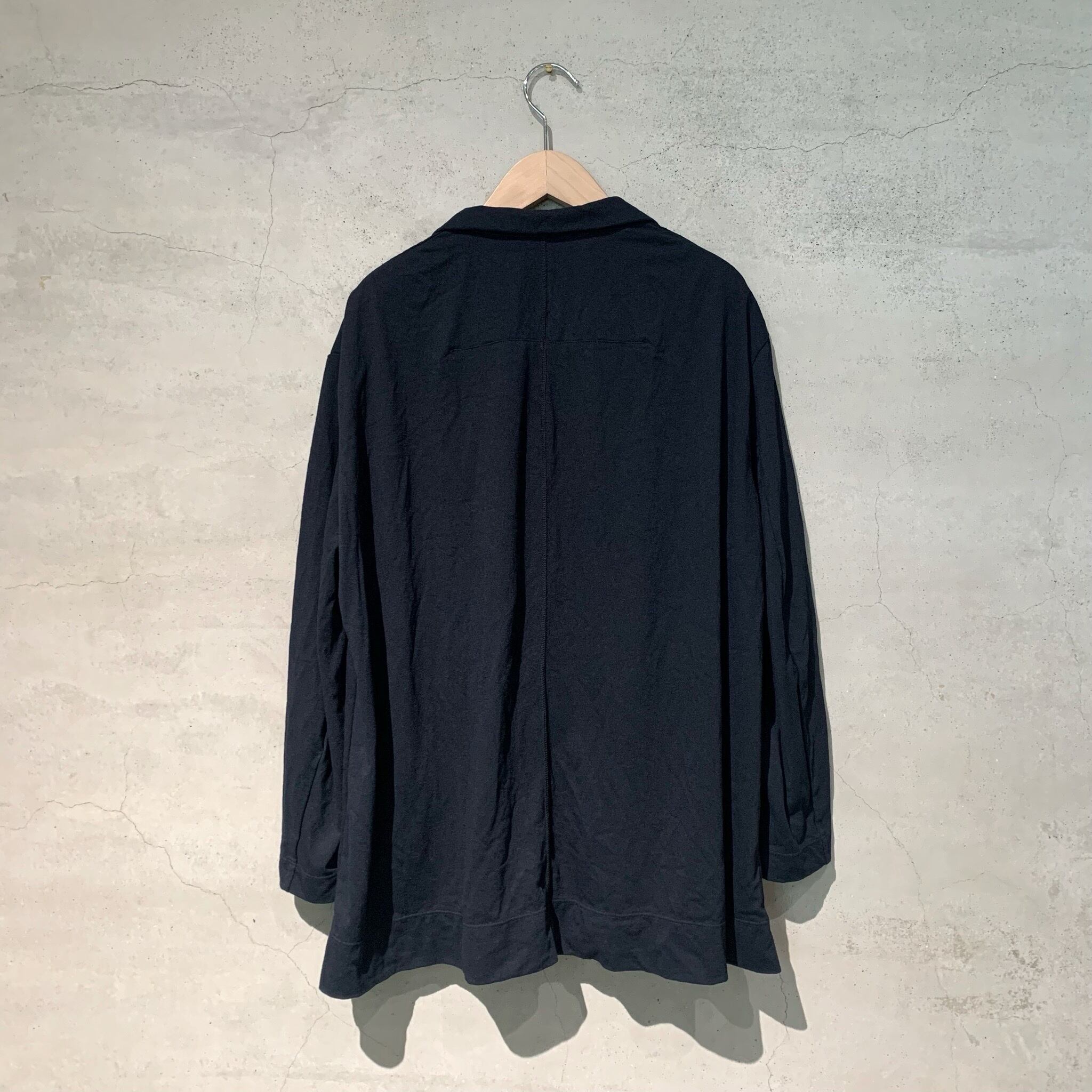綿番でいうと20番単糸クラスのMVS精紡のスパンポリエステル糸で編んだ天竺編み生地を使用したジャケット。